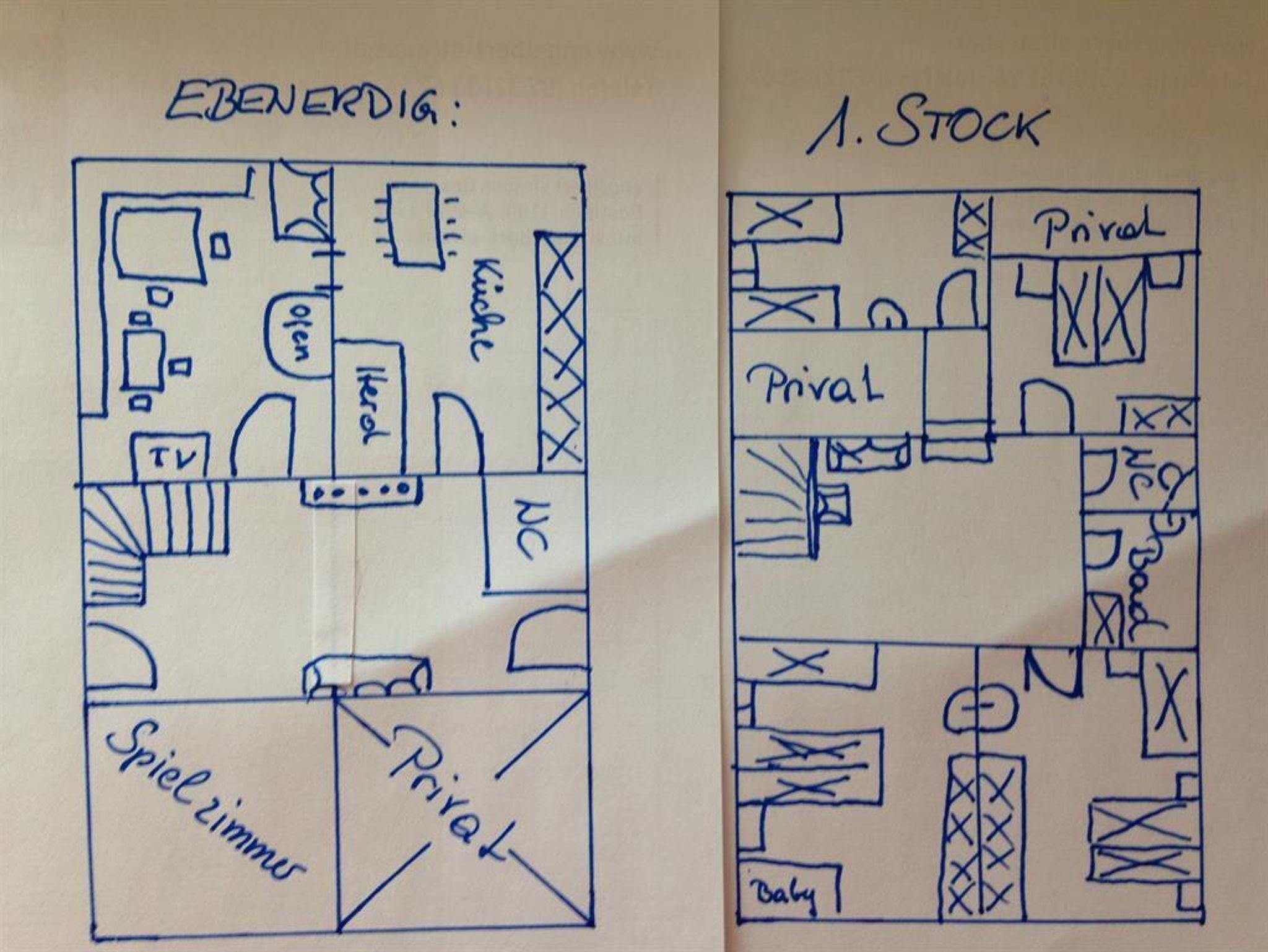 Ideal für Großfamilien oder 2 befreundete Familien EG: Bauernstube mit Kachelofen, WLAN, SAT TV und genügend Platz zum Sitzen und Spielen, Küche mit E-Herd und Backofen, Saeco Kaffee, Geschirrspüler, Waschmaschine, Tischfußballtisch, Spielzimmer und WC OG: 4 Schlafräume (2x 3-Bettzimmer, 2x Doppelzimmer), jeweils mit Waschbecken am Zimmer, WC, Bad mit Dusche und Handtuchheizkörper, Voraum mit Sitzgruppe (Sofa). Besonders ist die Gartenterrasse in einem versteckten Winkel