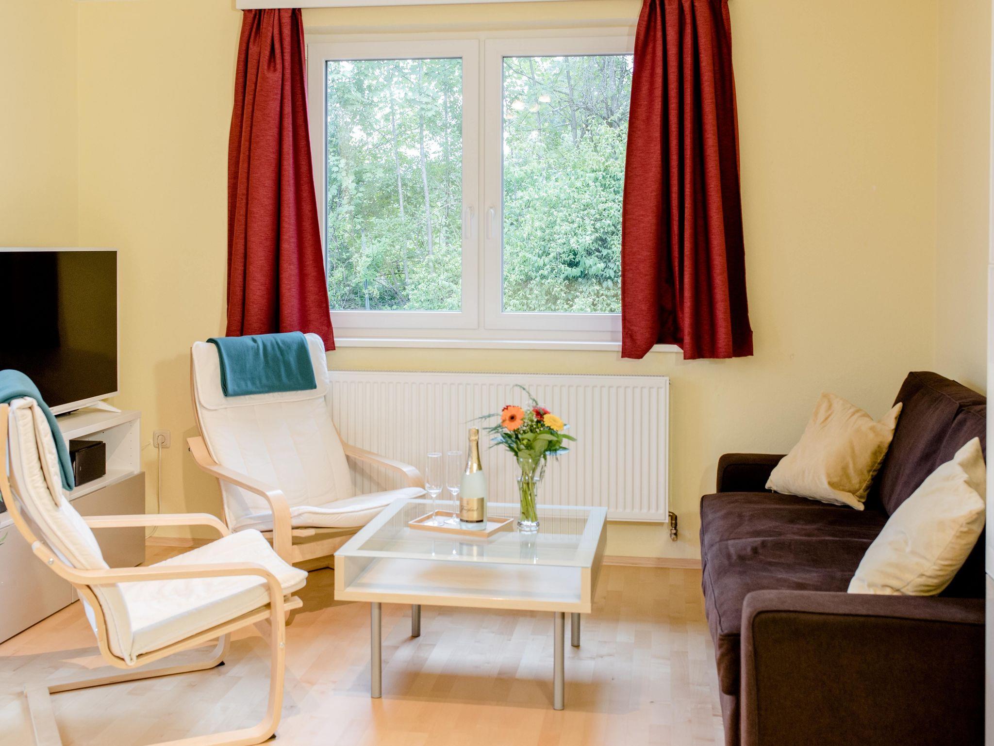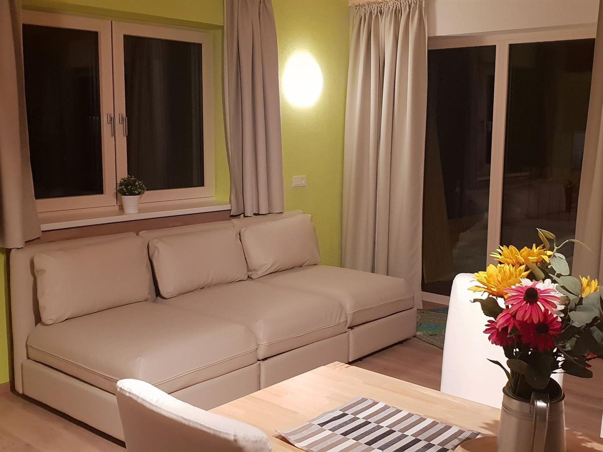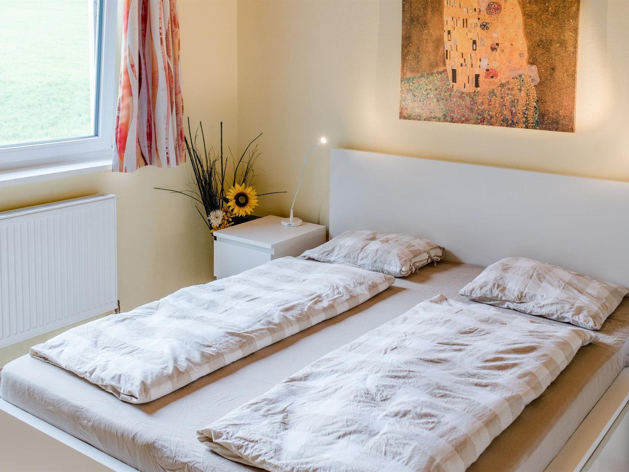 Die Unterkunft bietet insgesamt Platz für 6 Perosnen. In den beiden Schlafzimmern befinden sich Doppelbetten, im Wohnzimmer ein Schlafsofa, auf welchen 2 weitere Personen nächtigen können.