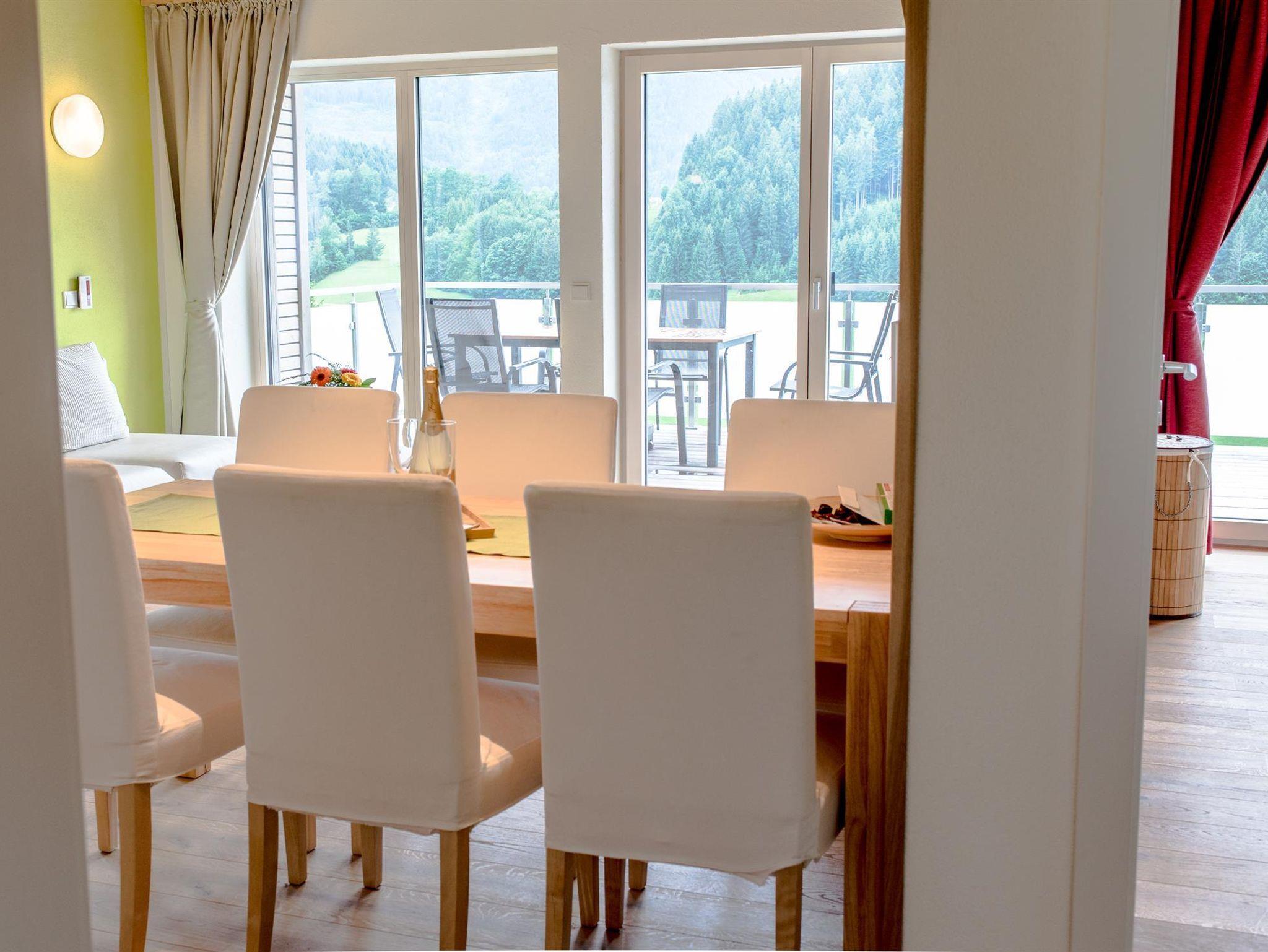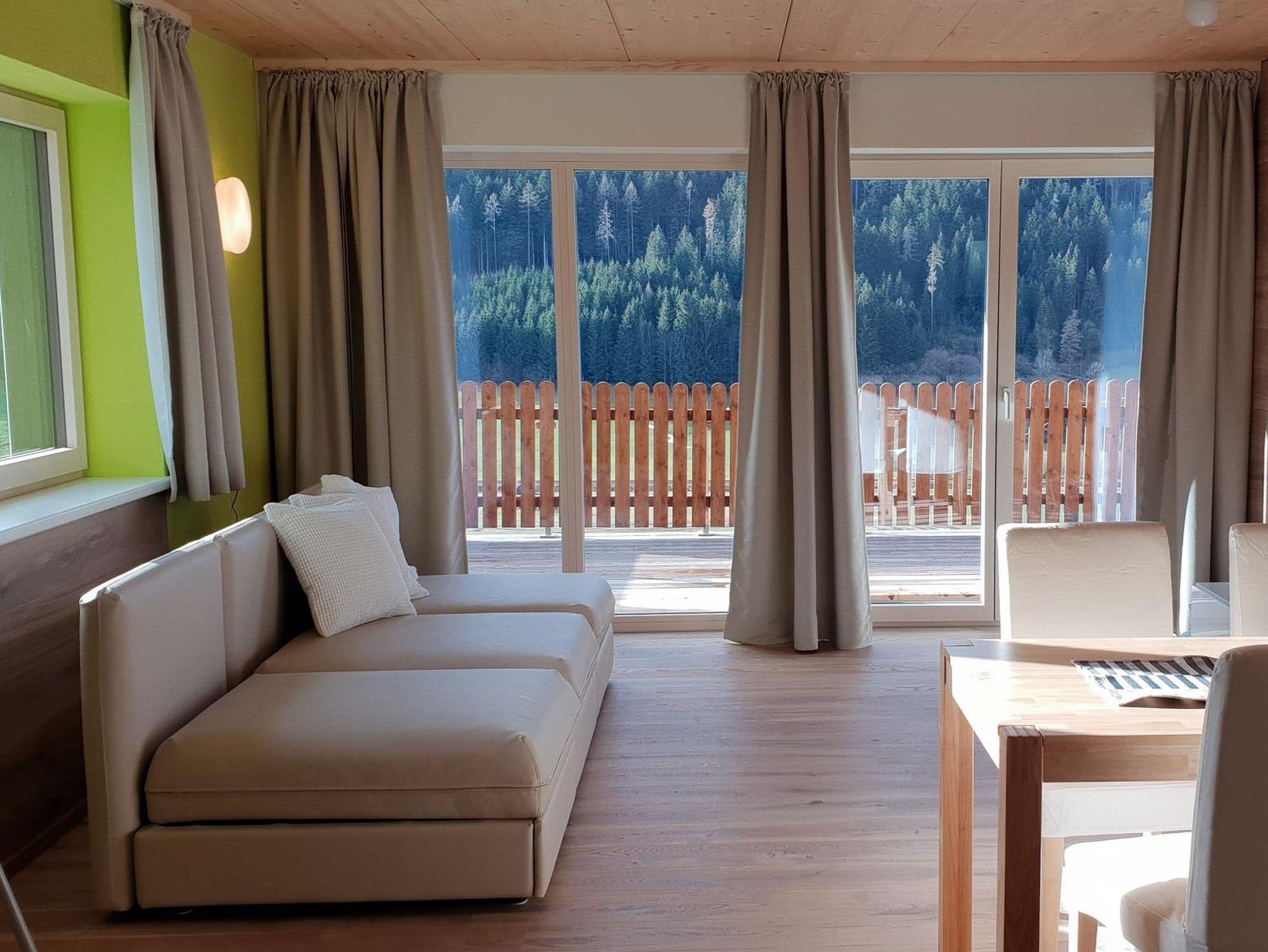 Der brandneue und supermoderne Ferienbungalow ist voll ausgestattet und misst 82m². Highlight ist die große Sonnenterasse, welche sich über ein Schlafzimmer sowie das Wohnzimmer erstreckt. Sie bietet einen atemberaubenden Blick auf die Berge und Wälder der Region.