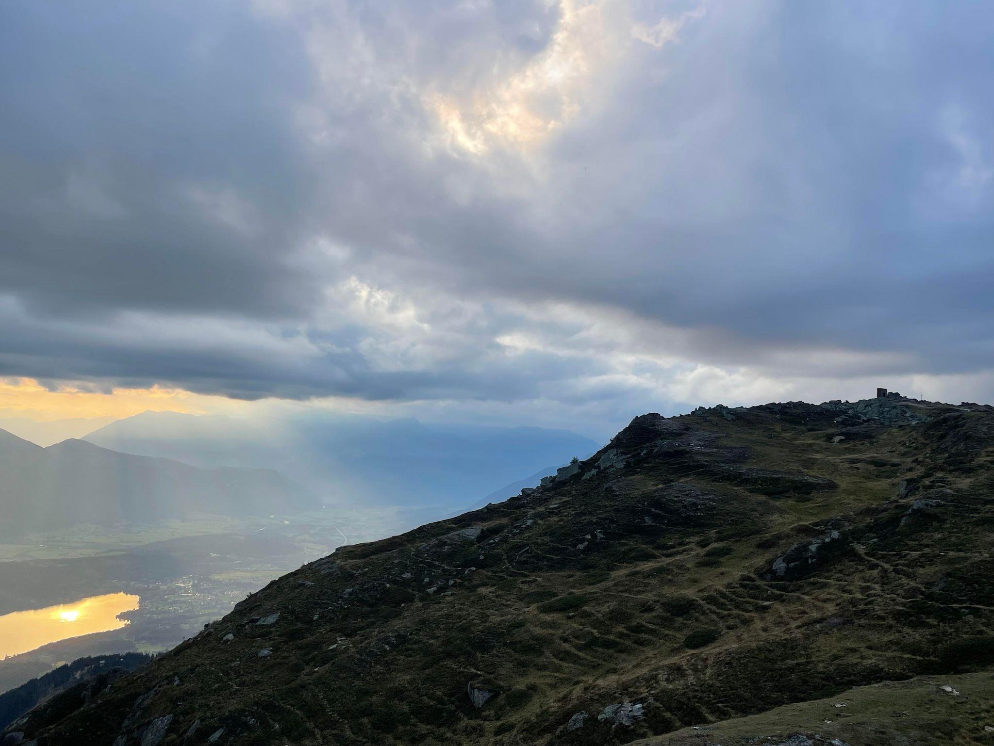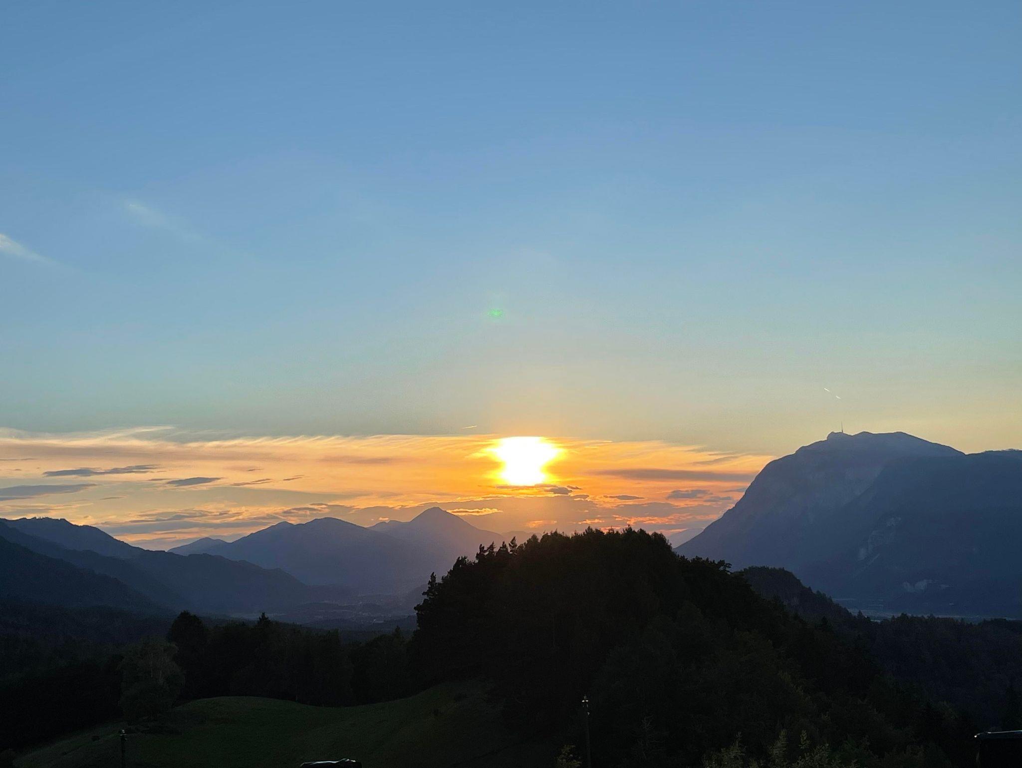 Auf der Sonnenterrasse können Sie gemütlich Frühstücken mit Sonnenaufgang und den Abend bei Sonnenuntergang über das Goldeck genießen.