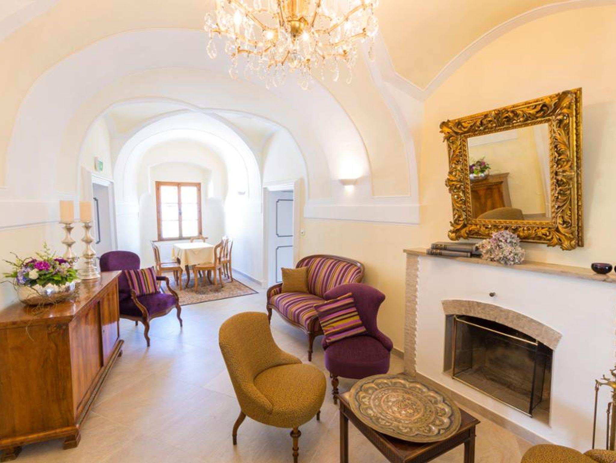 Die Unterkünfte reichen von luxuriös gestalteten Superior Doppelzimmern im Neo-Barockstil bis hin zu gemütlich eingerichteten Gästezimmern und großzügigen Appartements mit Blick auf Kirche und Weinberge.
