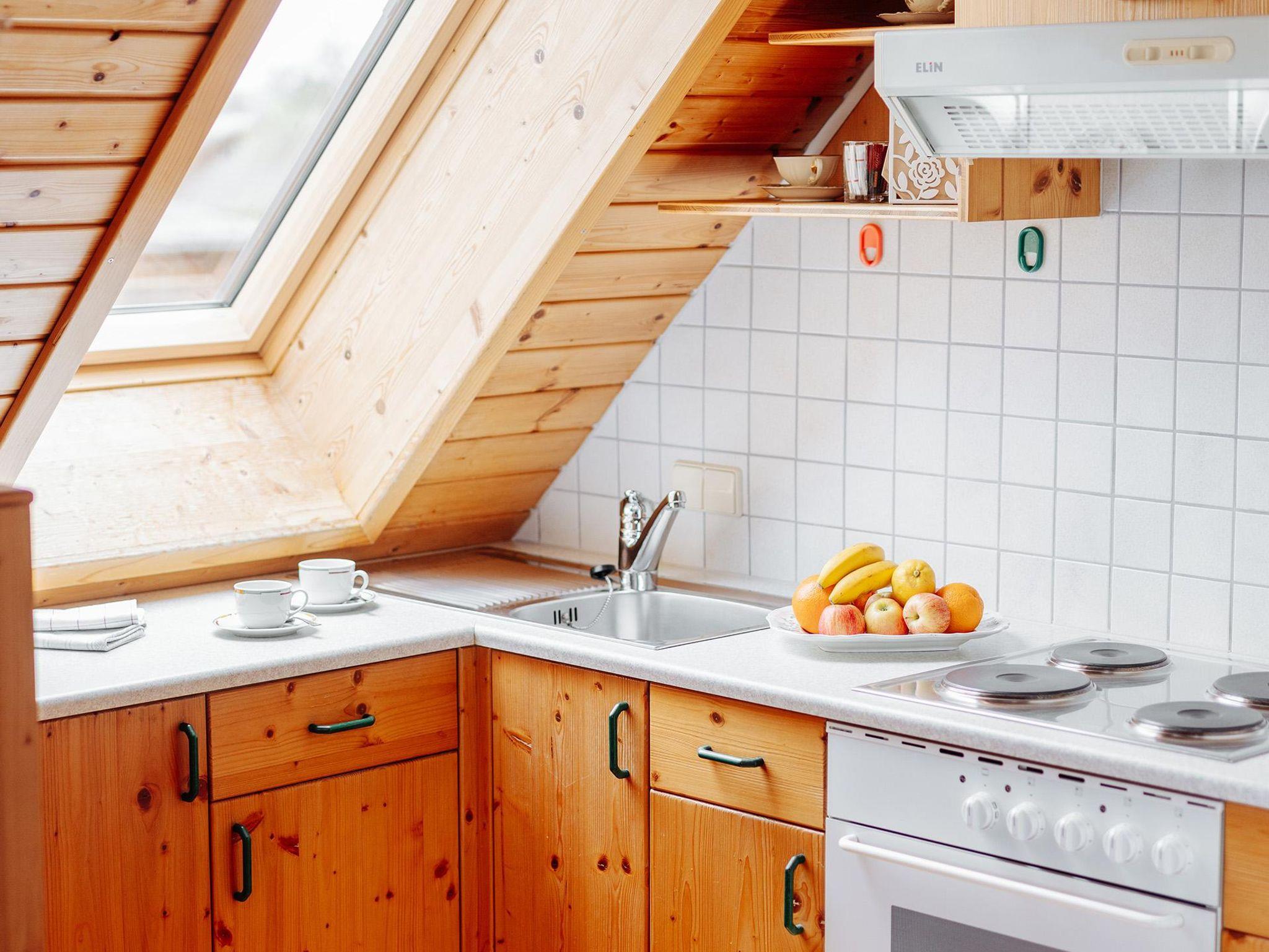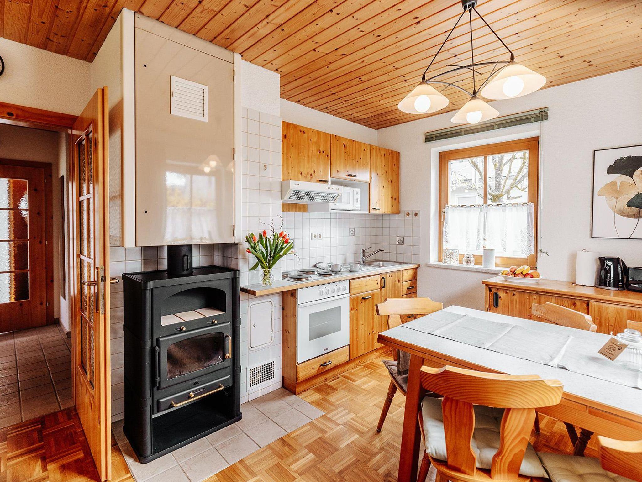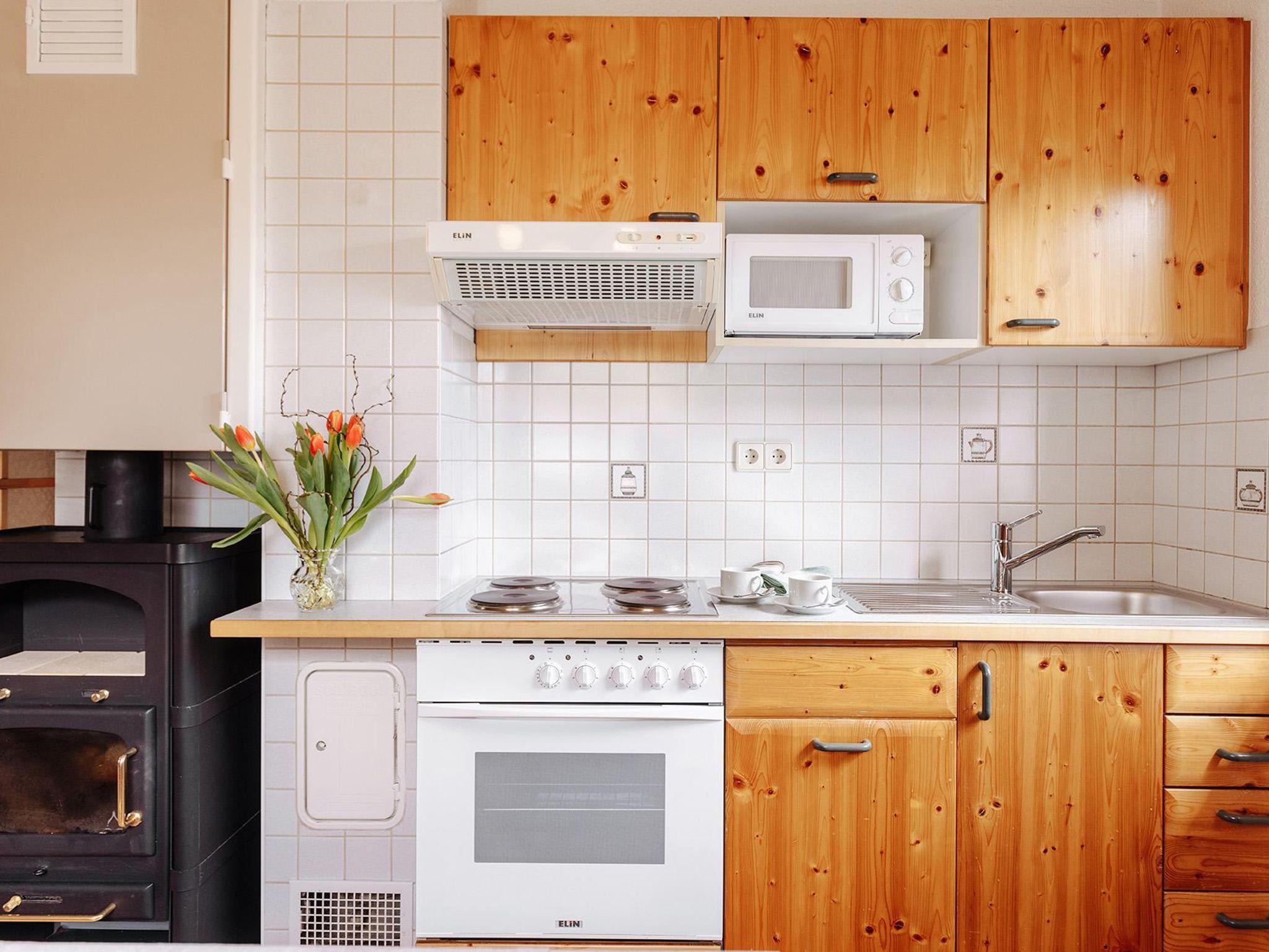• Küche voll mit Kochfeld - Backrohr - Mikrowelle - Kühlschrank - Spüle - voll ausgestattet mit Besteck & Geschirr - Filterkaffeemaschine - Wasserkocher –Geschirrtücher