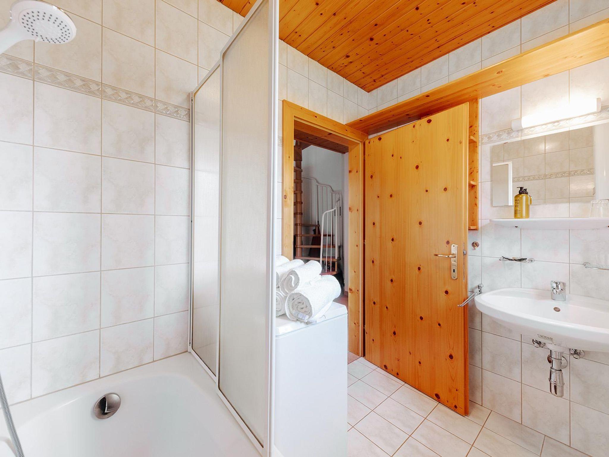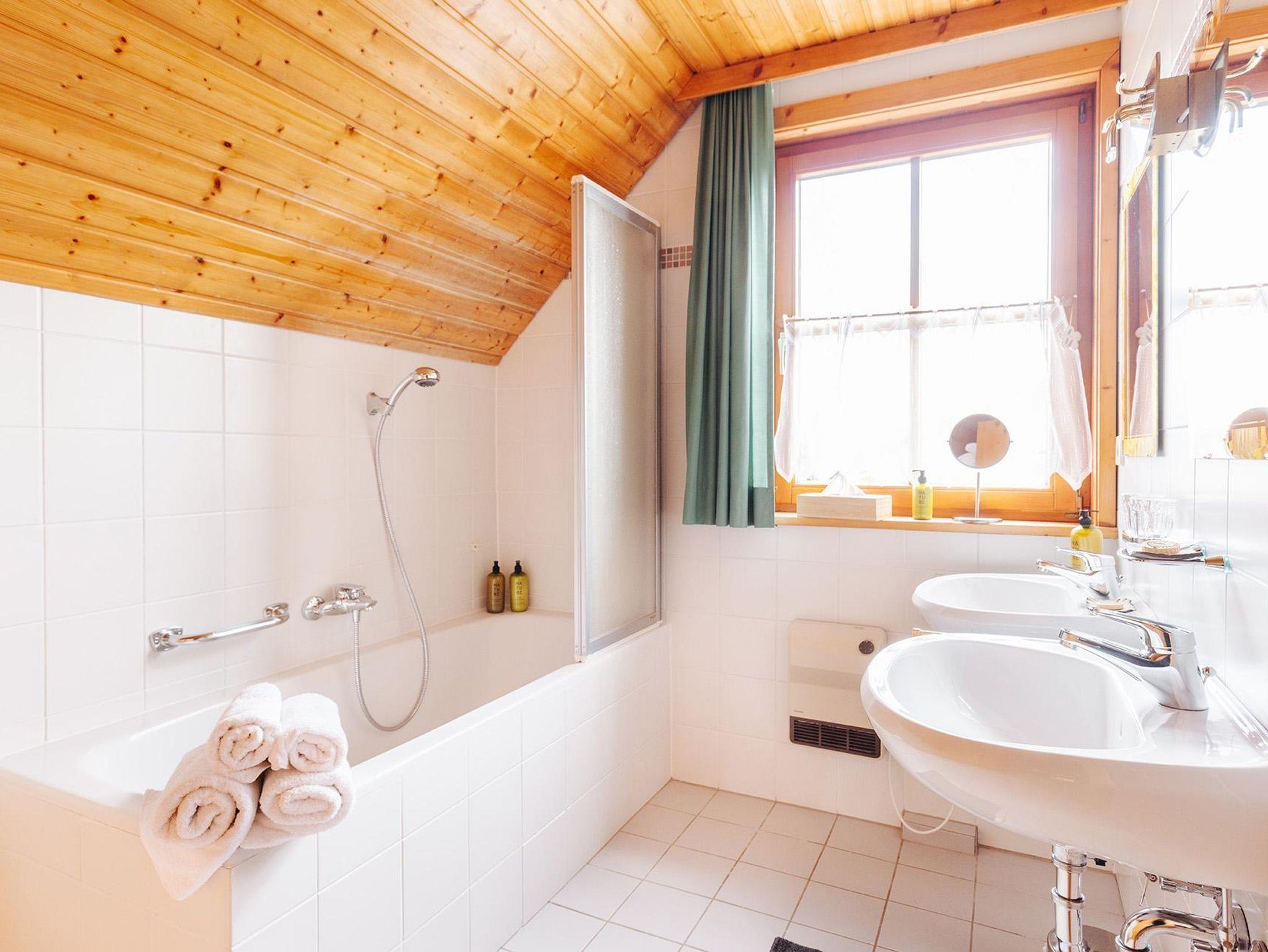 • Badezimmer mit Badewanne & Waschbecken, Föhn, hochwertigen Bio-Pflegeprodukten, Hand- & Badetücher