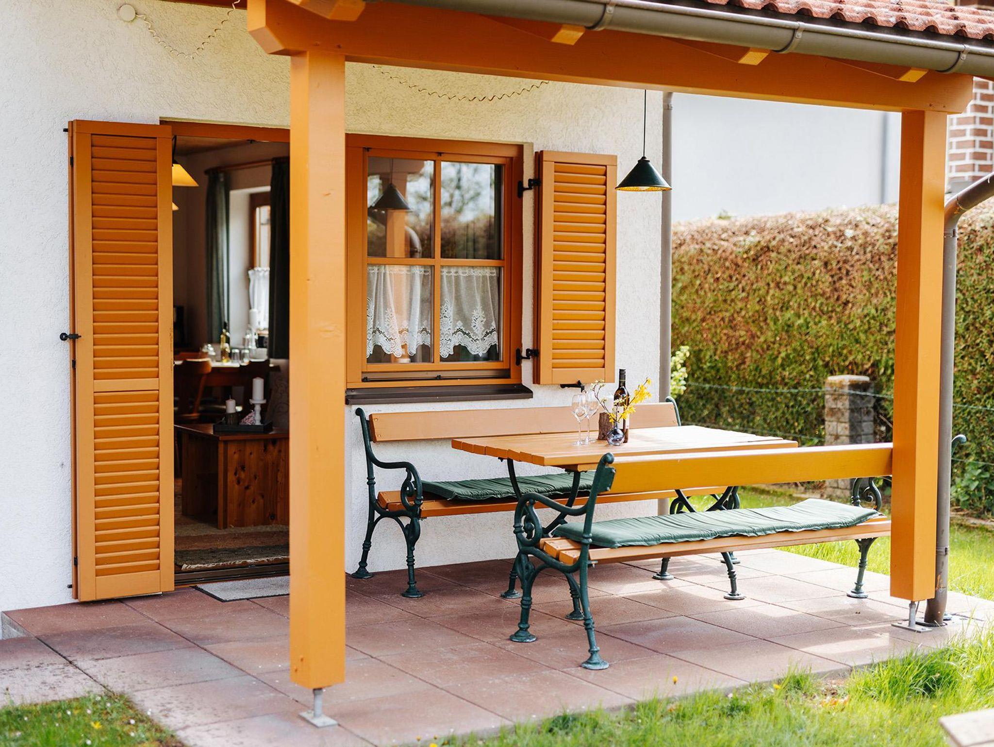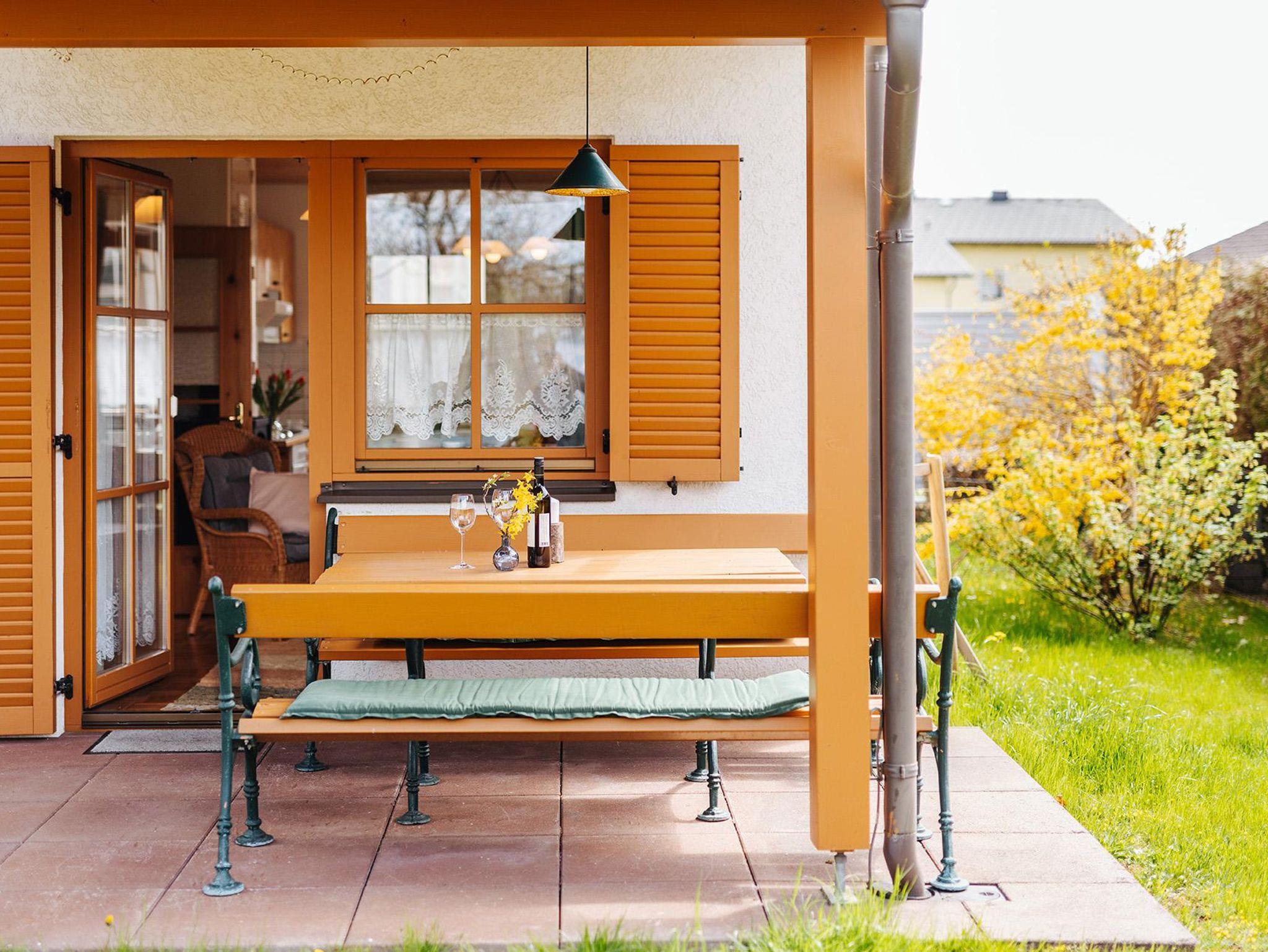 • Große überdachte Terrasse und Balkonmöbel und direkter Gartenanbindung