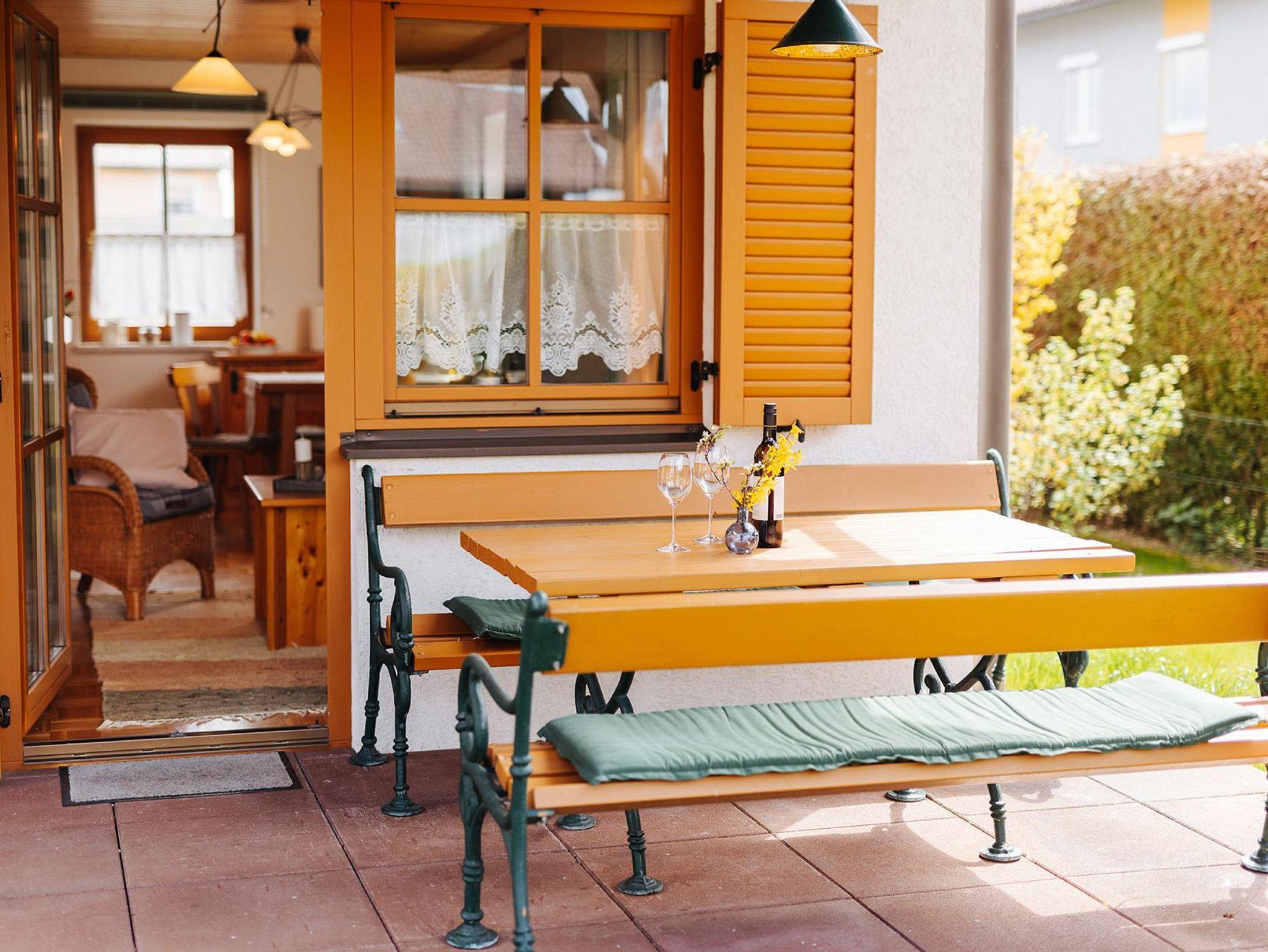 Das Apartment ist ca. 70m2 groß und befindet im Zubau zum Ferienhaus Nora. Es geht über zwei Etagen und ist süd- und westseitig ausgerichtet mit einer großen überdachten West-Terasse. Vom Wohnzimmer kommt man direkt über die Terrasse in den angrenzenden Garten.