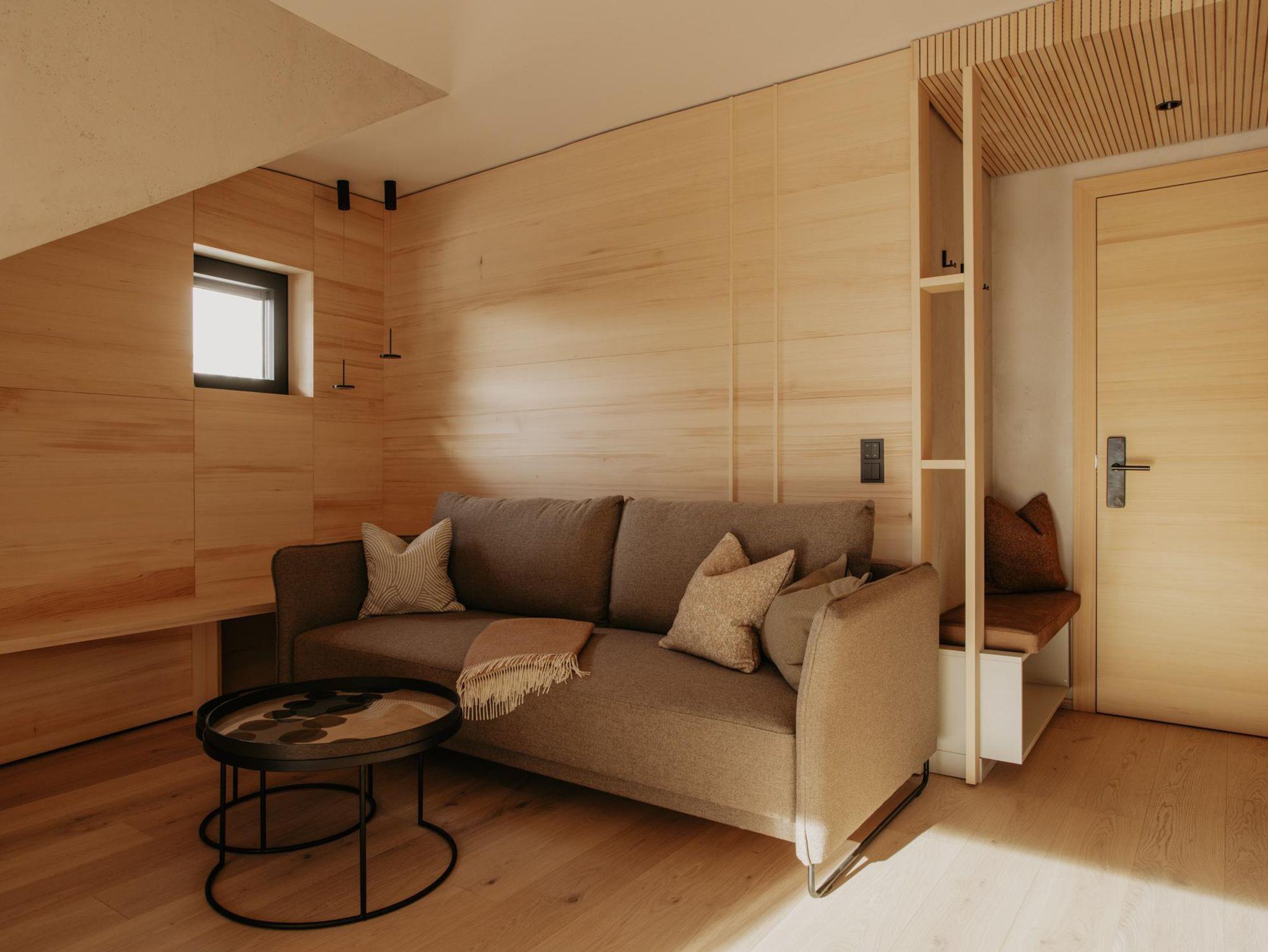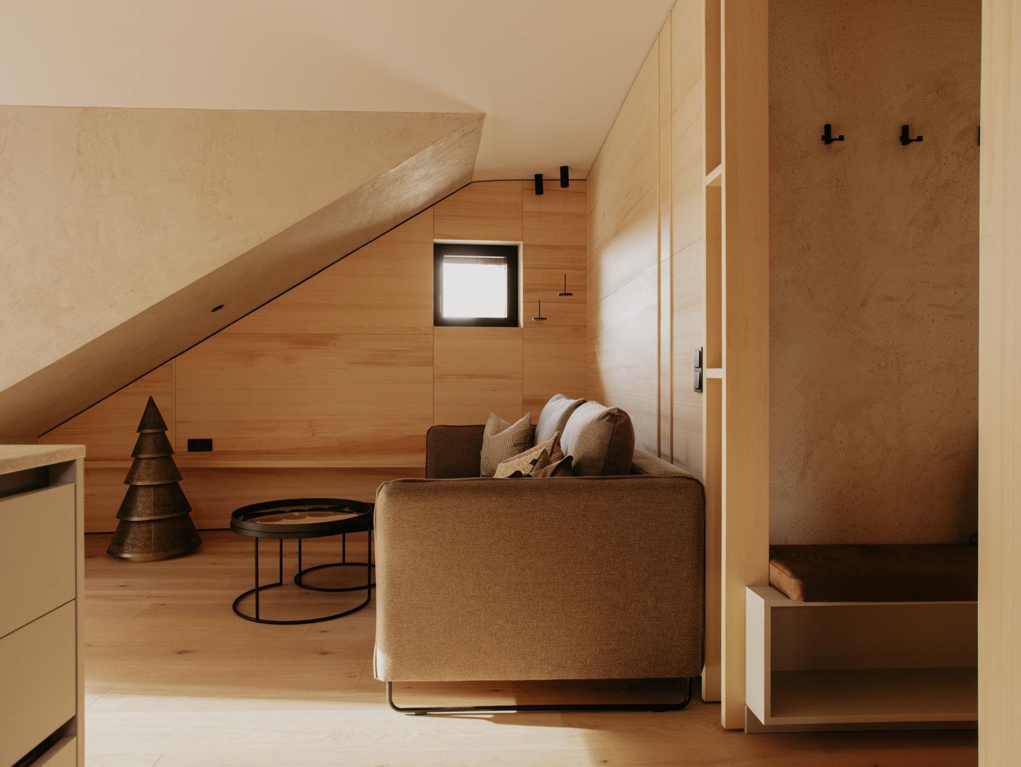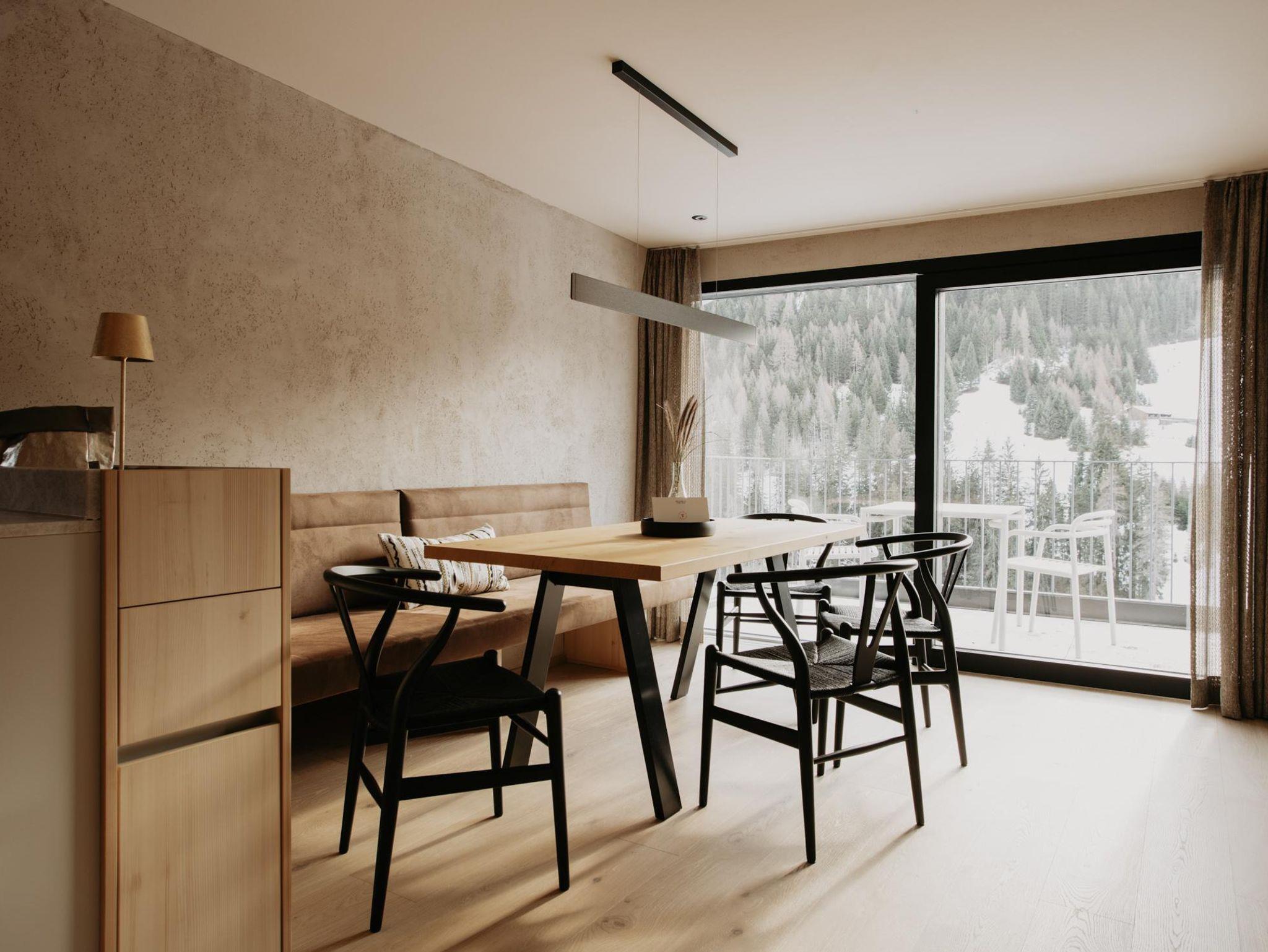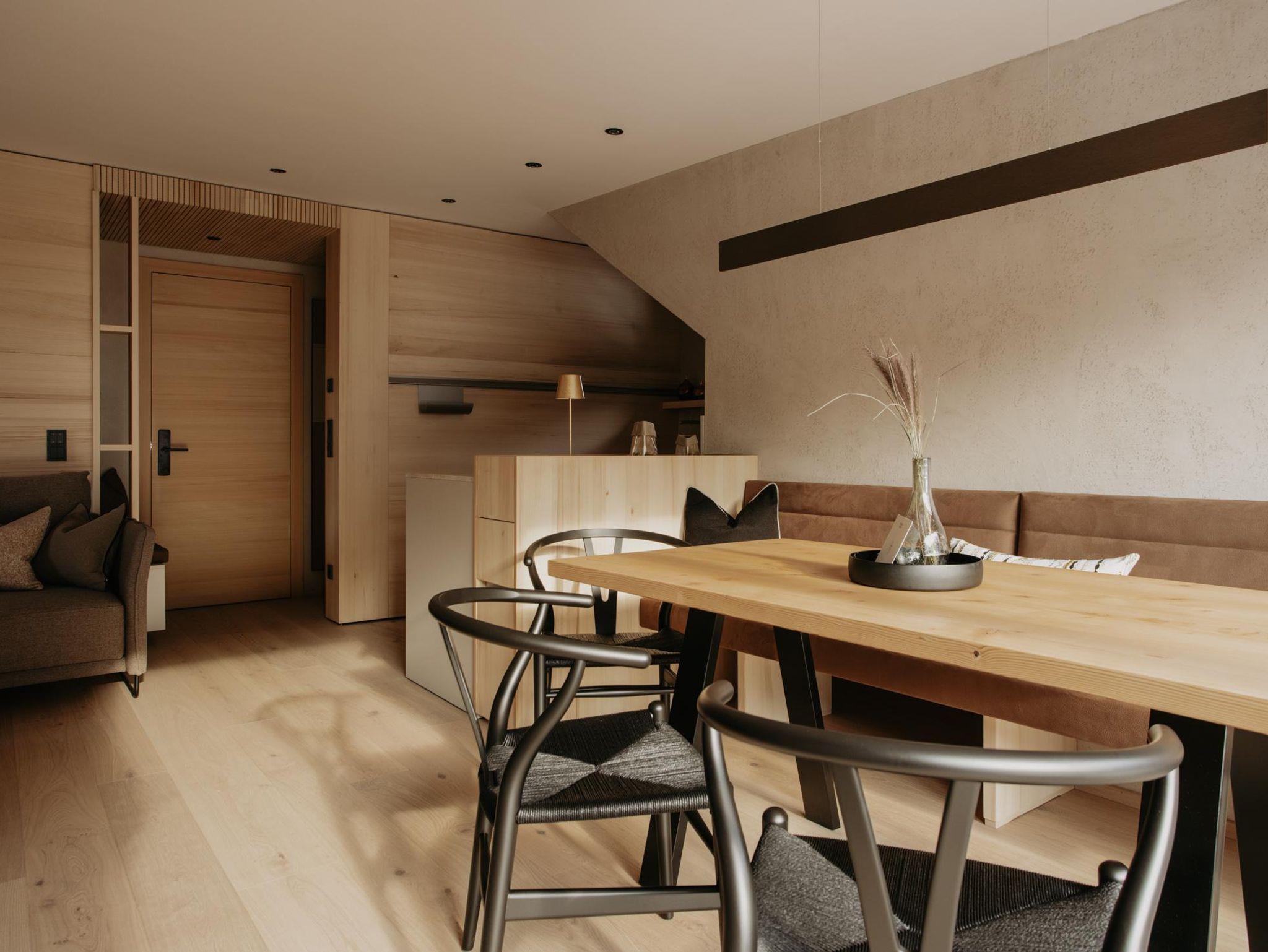 Toms View Premium Apartment 1 erstreckt sich über zwei Ebenen und bietet auf 66?m² Platz für bis zu 4 Personen. Im Obergeschoss haben Sie ein Schlafzimmer mit Doppelbett und Badezimmer. Im Erdgeschoss gibt es eine voll ausgestattete Küche mit offenem Wohn- und Essbereich. Die Schlafcouch bietet Platz für zwei weitere Personen, und von hier aus gelangen Sie auf den Balkon mit herrlichem Blick auf die Berge. Außerdem haben Sie im Untergeschoss Zugang zum Fitness- und Wellnessbereich.