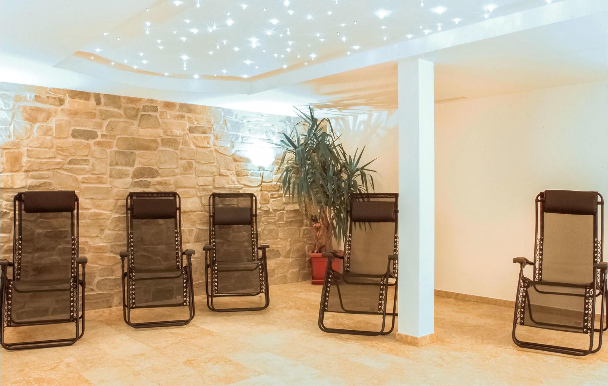Husets wellness-område i stueetagen er fælles for alle gæster - med dampbad, finsk sauna og regnbruser (om vinteren er wellnessområdet inkluderet i prisen, om sommeren kan det også bruges mod betaling). I haven er der en lille legeplads for børnene samt liggestole og en grillplads for gæsterne. Mod et gebyr kan du bruge vaskemaskinen og tørretumbleren i vaskerummet (strygejern til rådighed). Barneseng og høj stol efter anmodning.
