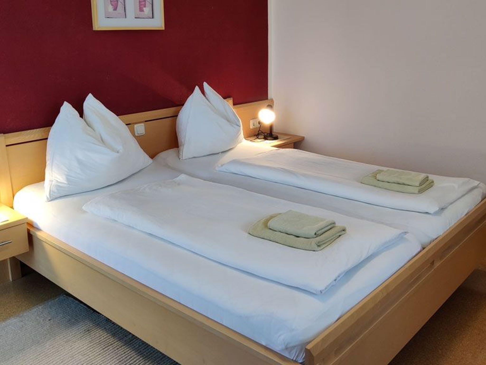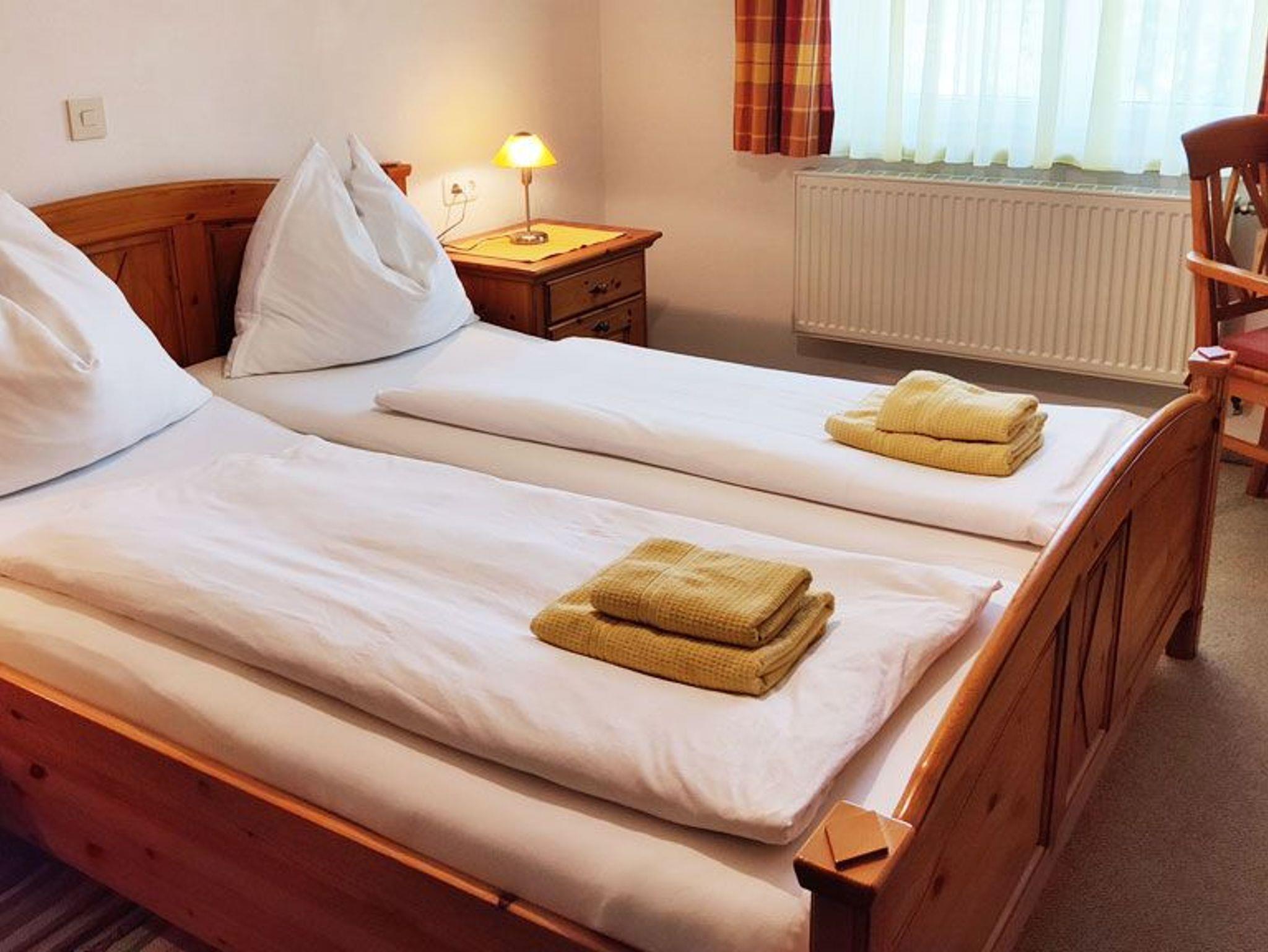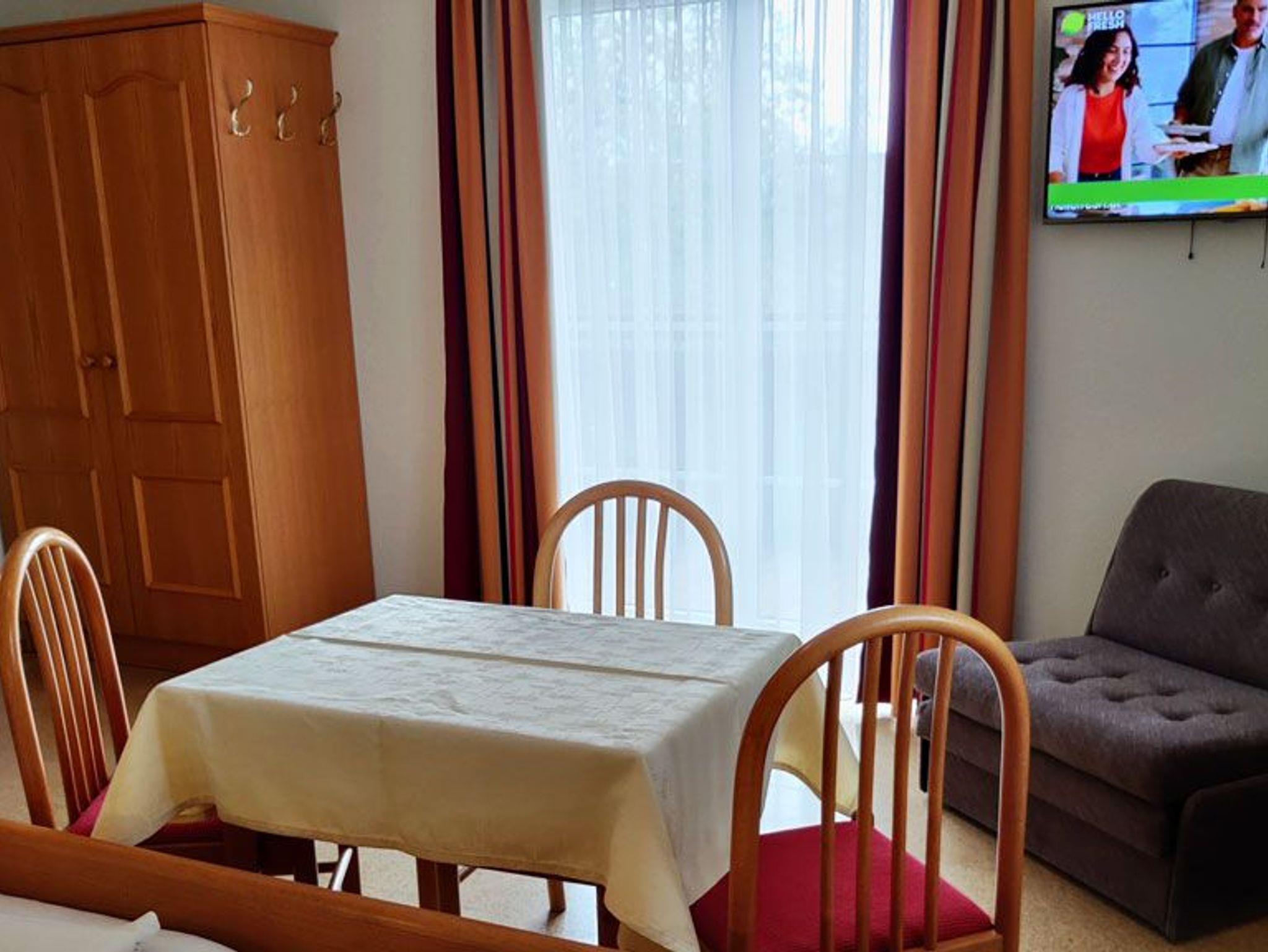Das Zimmer kann als Dreibettzimmer oder Doppelzimmer gebucht werden. Es befindet sich 1 Doppelbett und eine Ausziehsessel für einen Person darin, ist süd- ostseitig im 1. Stock gelegen, hat einen Balkon, Zentralheizung, einen Tisch und 3 Stühle und ist besonders für Familien geeignet. Das Zimmer ist ausgestattet mit Dusche, Fließwasser und WC in eigener Nasszelle. Hand- u. Badetücher sind vorhanden, ebenso wie Sat-TV, Gartenmöbel am Balkon und im Garten. Kleiderschrank und Garderobe sind im Zimmer.