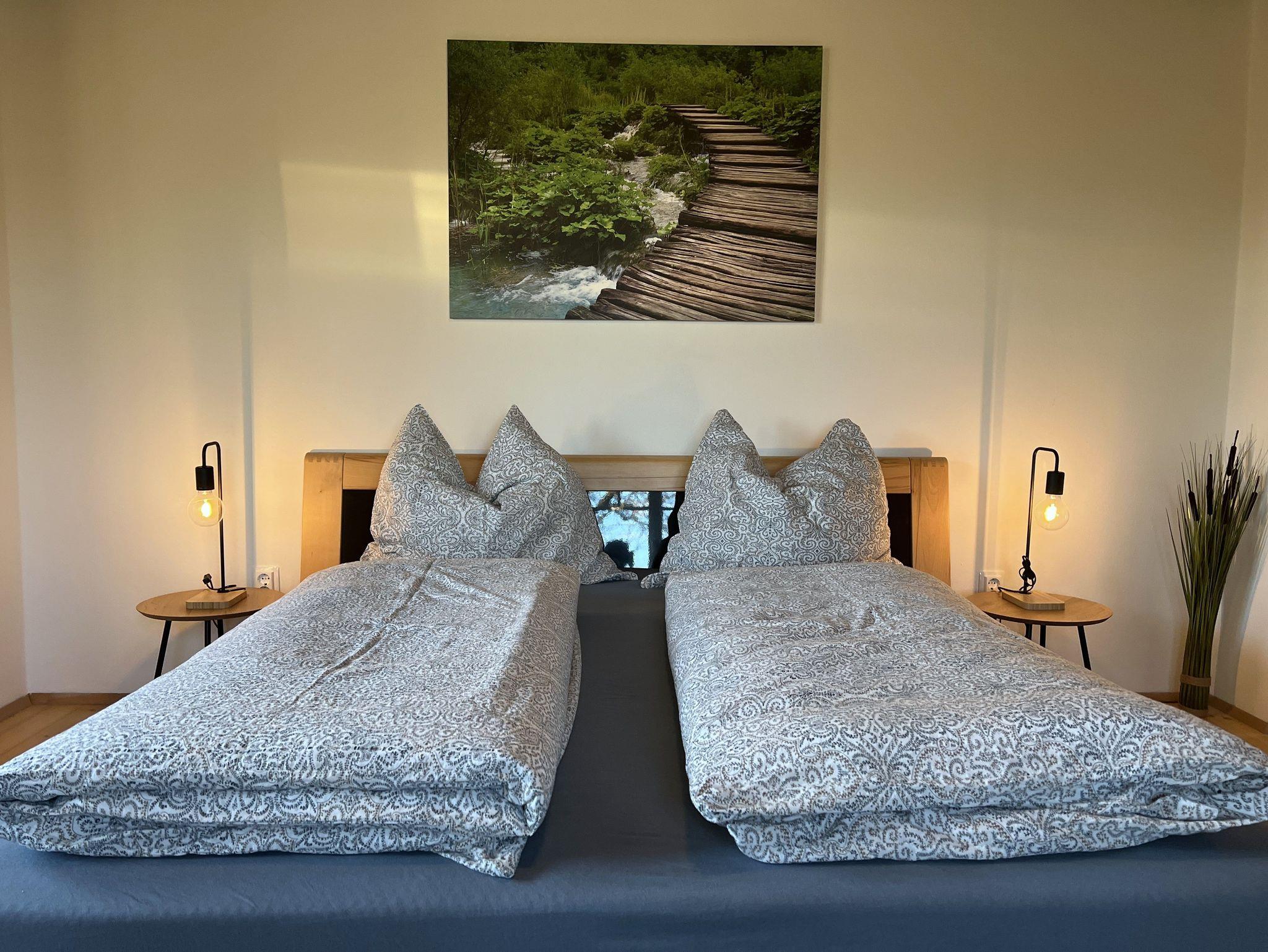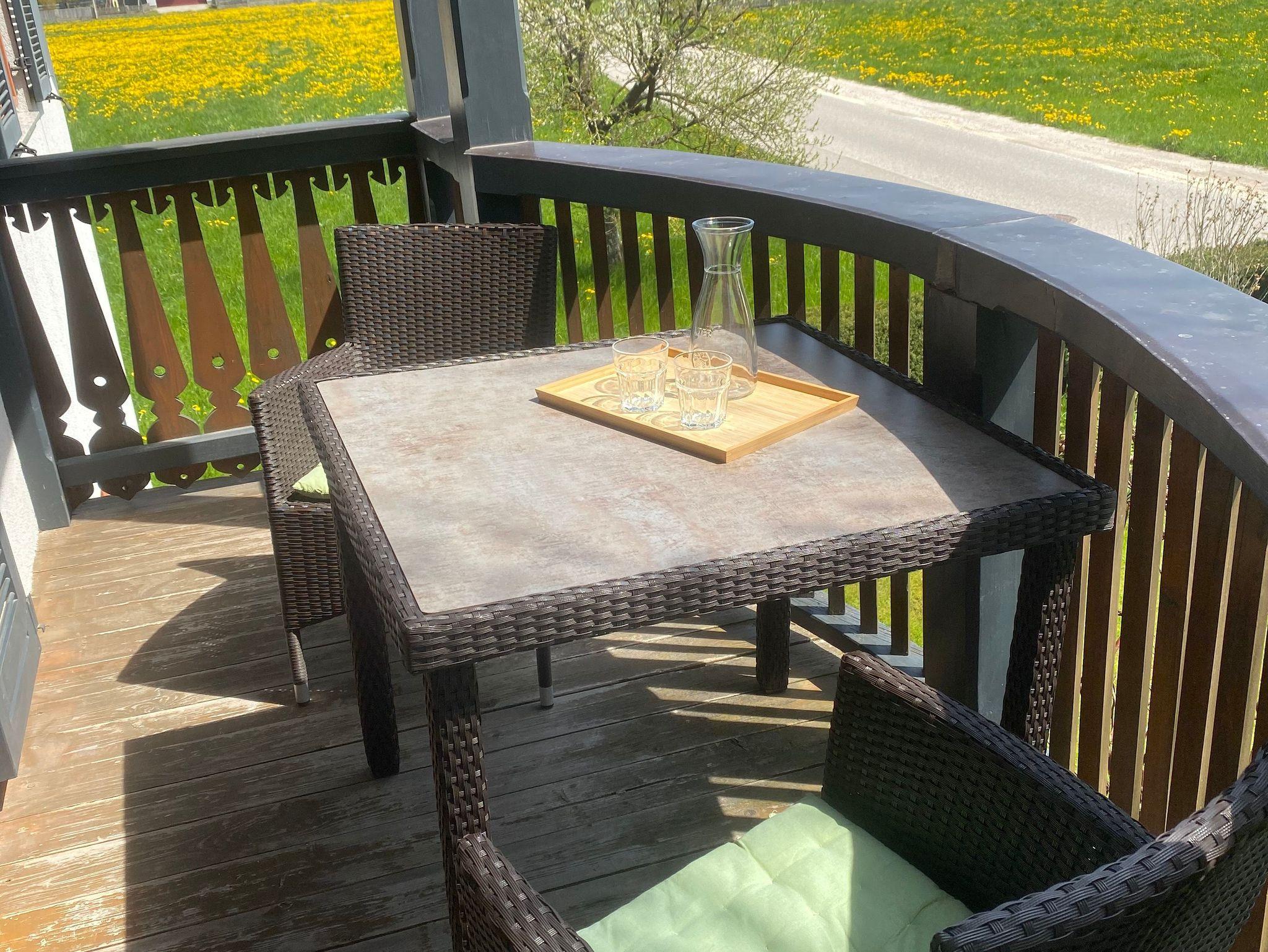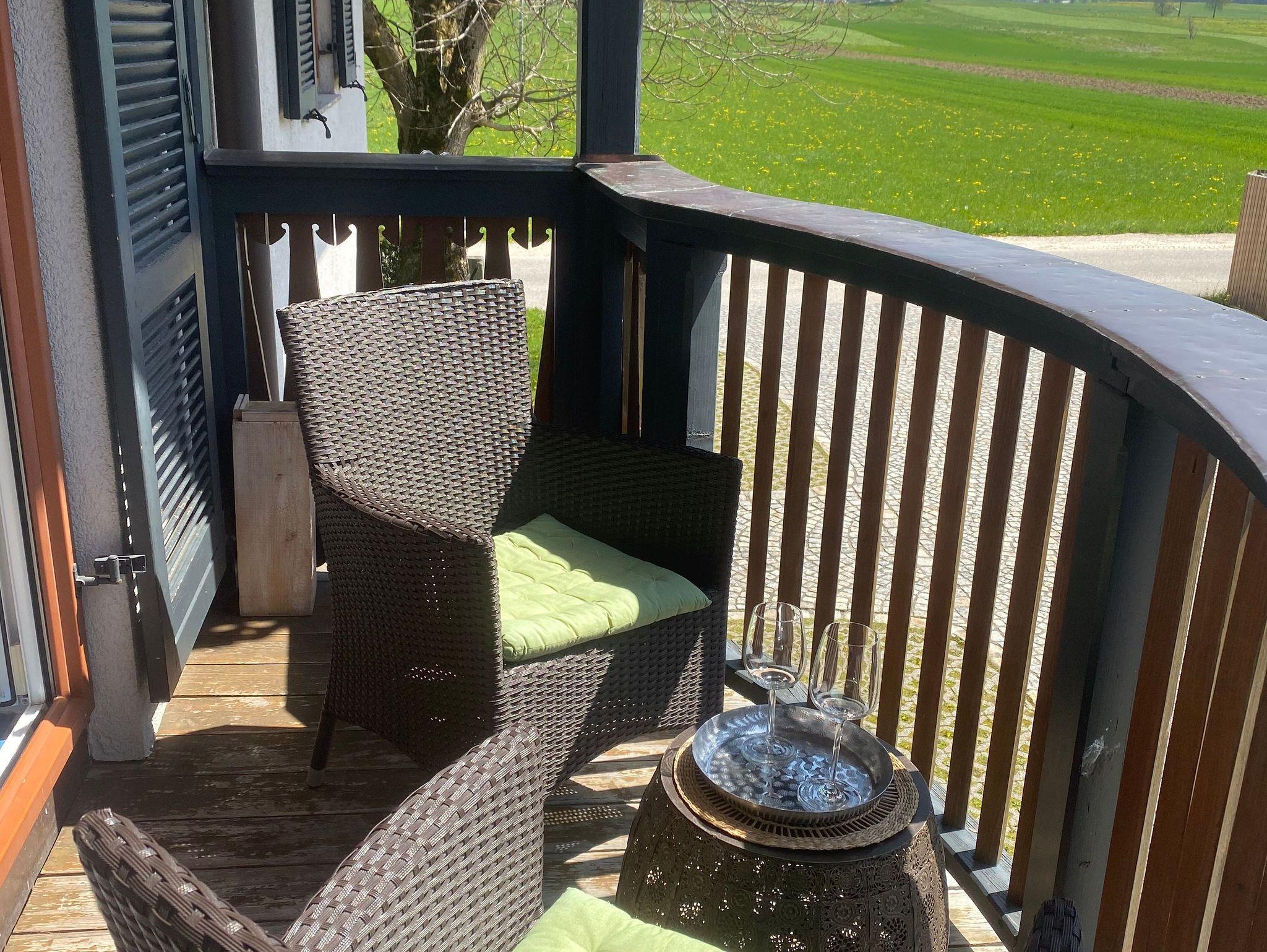 Die 160 m² große Ferienwohnung befindet sich in einer ruhigen Lage mit Blick ins Grüne und auf die wunderschönen Berge.