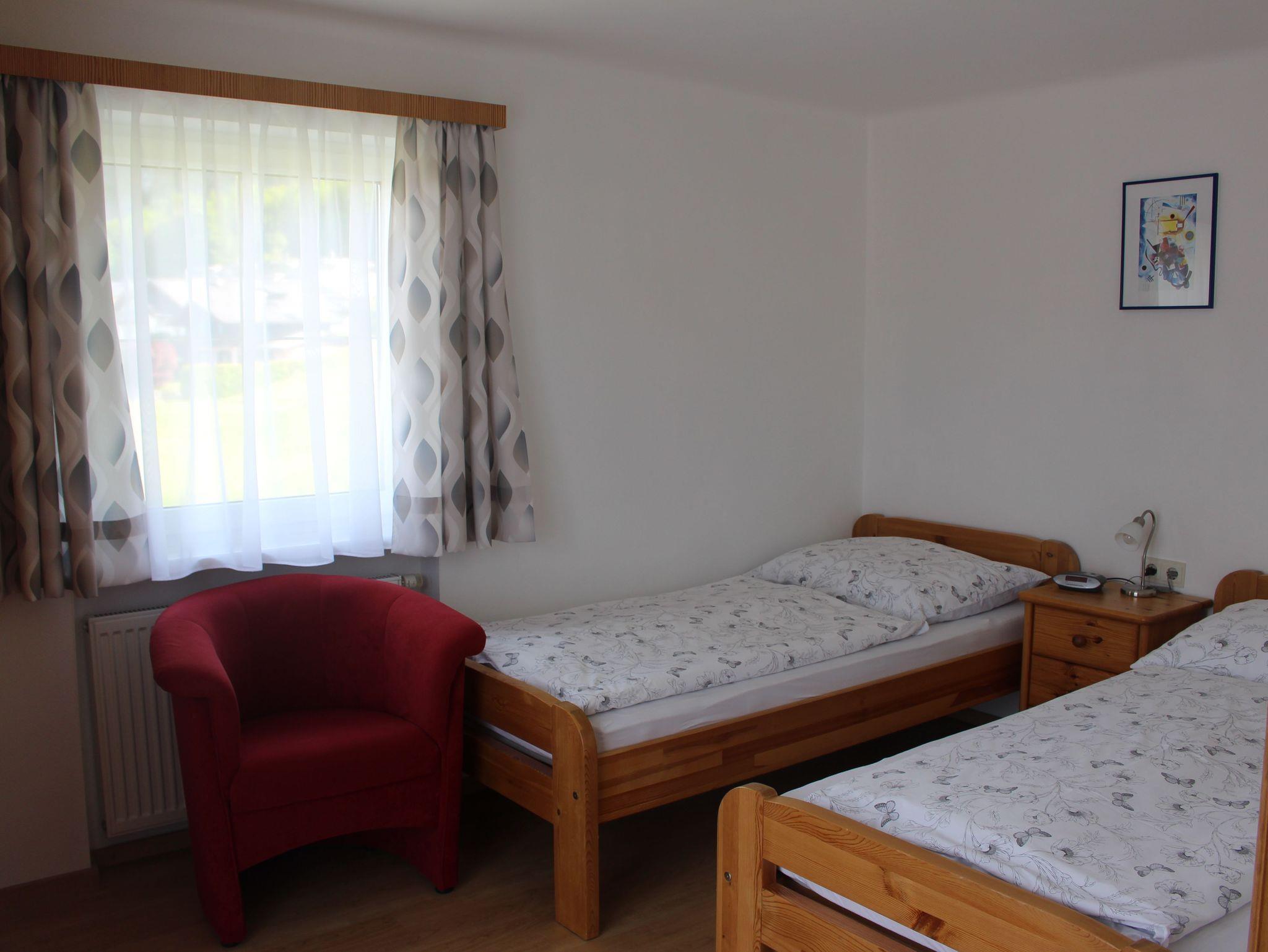 Ein Schlafzimmer ist mit einem Doppelbett, das andere mit zwei getrennten Betten ausgestattet.