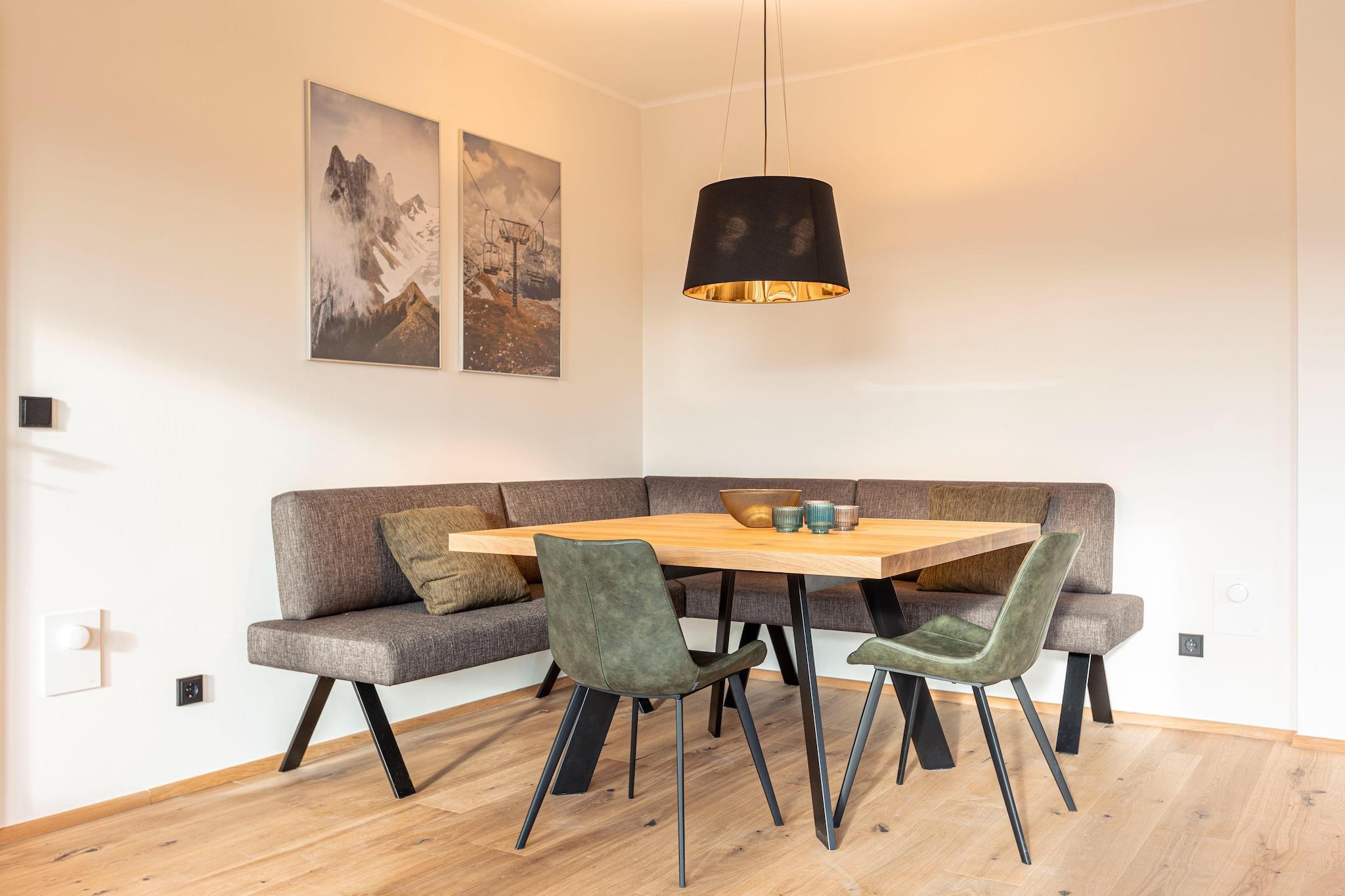 "Opdag komfort og elegance i vores lejlighed i stueetagen, designet til op til 6 gæster. Dette stilfulde tilflugtssted, der spænder over 55 m², tilbyder den perfekte blanding af moderne bekvemmeligheder og fredfyldte omgivelser. Lejligheden har to indbydende soveværelser, hver møbleret med plysæske. springdobbeltsenge, hvilket sikrer et afslappende ophold. To velindrettede badeværelser er udstyret med brusere, toiletter og hårtørrer for din bekvemmelighed. Slap af i den rummelige opholds-/spisestue, som omfatter en hyggelig siddeplads og et fladskærms-tv. Opholdsrummet har også en 2-personers sovesofa, ideel til ekstra gæster. Træd ud på terrassen fra opholdsstuen for at nyde den friske luft og udsigten. Det fuldt udstyrede køkken er en kulinarisk fornøjelse, komplet med bestik, køkkengrej, en keramisk kogeplade, ovn, køleskab med fryser og en opvaskemaskine. Yderligere bekvemmeligheder omfatter en brødrister, elkedel og kaffemaskine. Et startsæt med opvaskemaskinefaner, opvaskemiddel, en svamp, affaldsposer, rengøringsmidler og et viskestykke leveres til din ankomst. For gæster, der rejser med kæledyr, er hunde velkomne efter anmodning (mod ekstra gebyr). Nyd gratis Wi-Fi under hele dit ophold. Yderligere funktioner: - Rolig beliggenhed i udkanten af skoven - Adgang til et generelt wellness-område med en finsk sauna og en opvarmet udendørs infinity-pool - TennengauPLUS-kort inkluderet for eksklusive lokale rabatter Poolens åbningstider: - Vinter (01.10 - 30.04): 16.00 - 19.00 - Sommer (01.05 - 30.09): 10.00 - 18.00