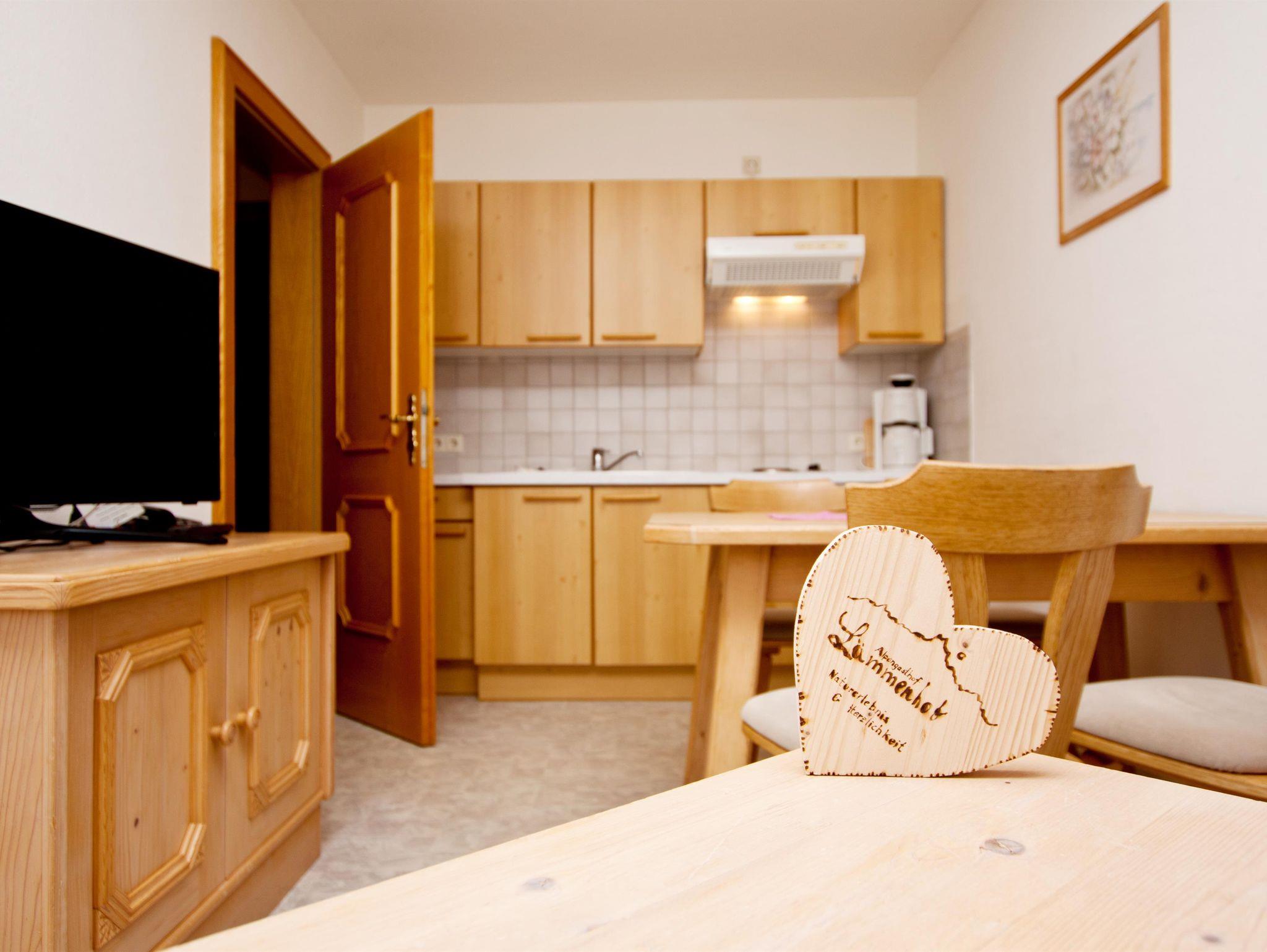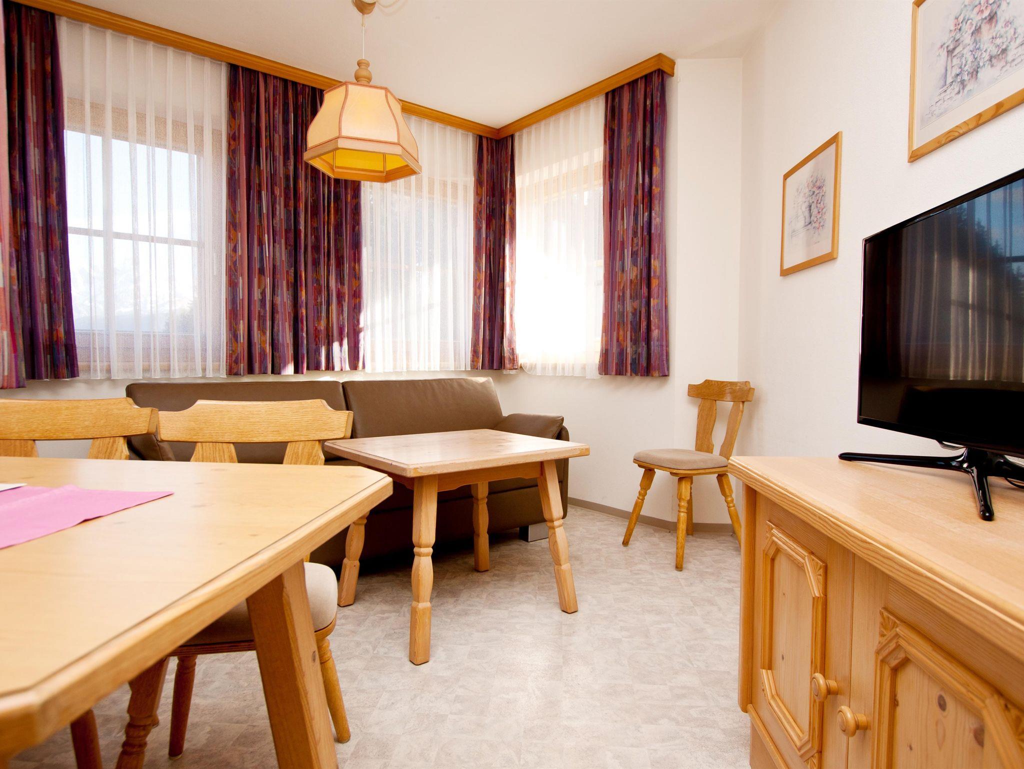 Die Appartements sind im unmittelbar anliegenden Nebenhaus, erbaut in den 90er Jahren, hell eingerichtet mit Voglauer Möbeln. Bodenbeläge teilweise mit Teppich. Appartement mit Schlafzimmer, Küche mit Esstisch und Wohnbereich mit Doppel-Ausziehcouch mit ca. 35 m² für bis zu 2 Erwachsene und 2 Kinder im 1. Stock Mit Balkon und Blick Richtung Süd-Osten Dusche, WC extra, Haarfön Kabel-LCD-TV , Telefon, WLAN