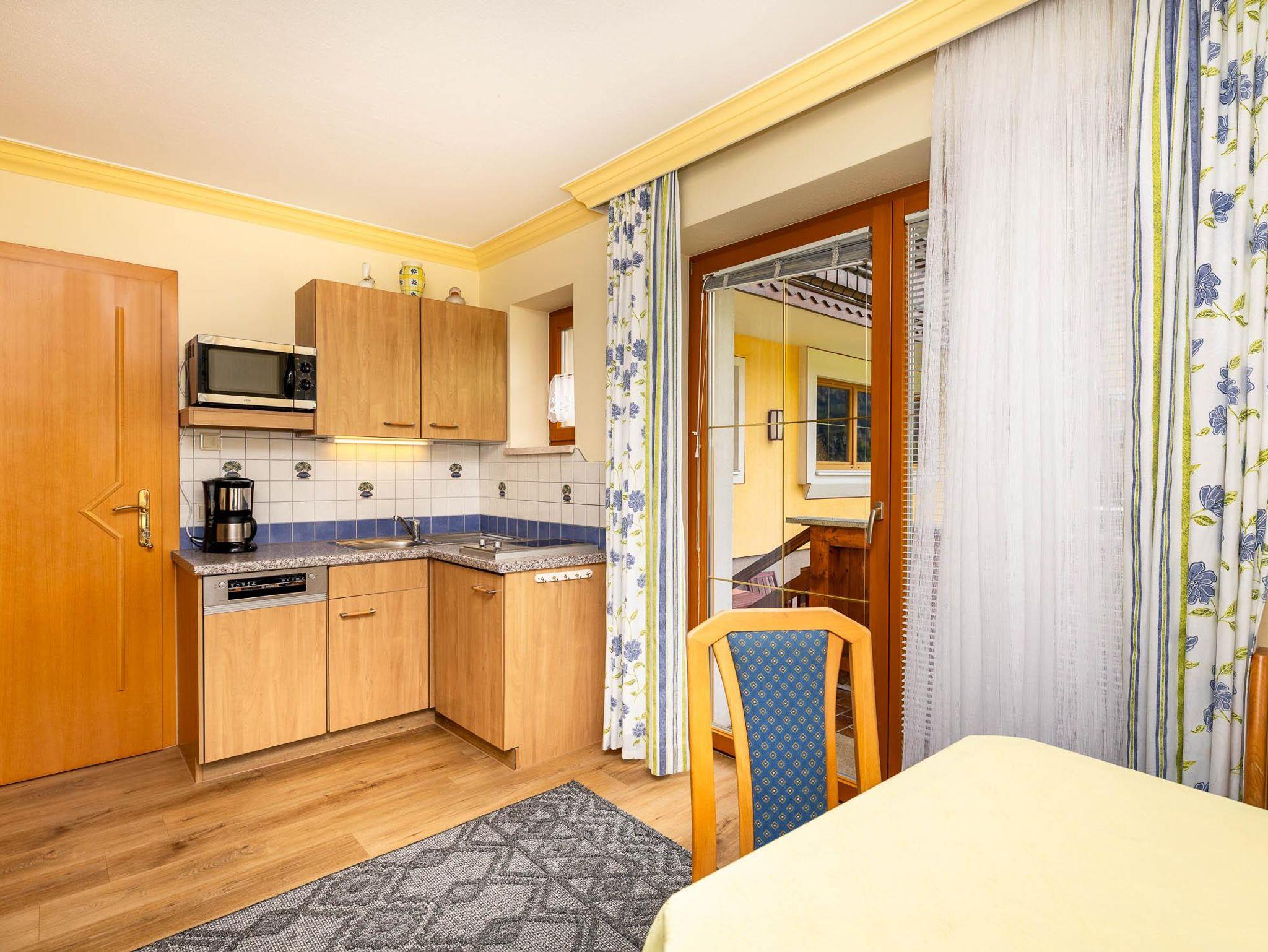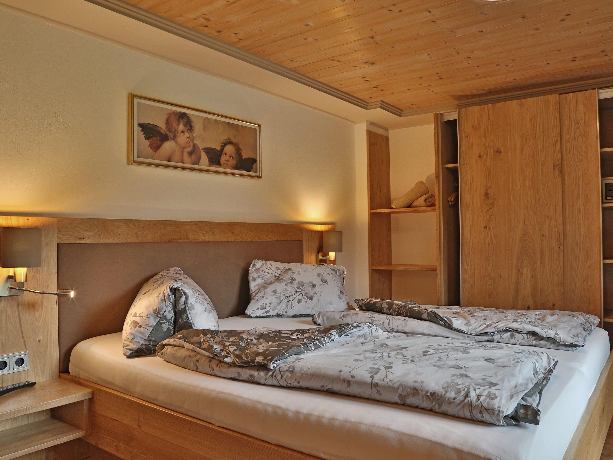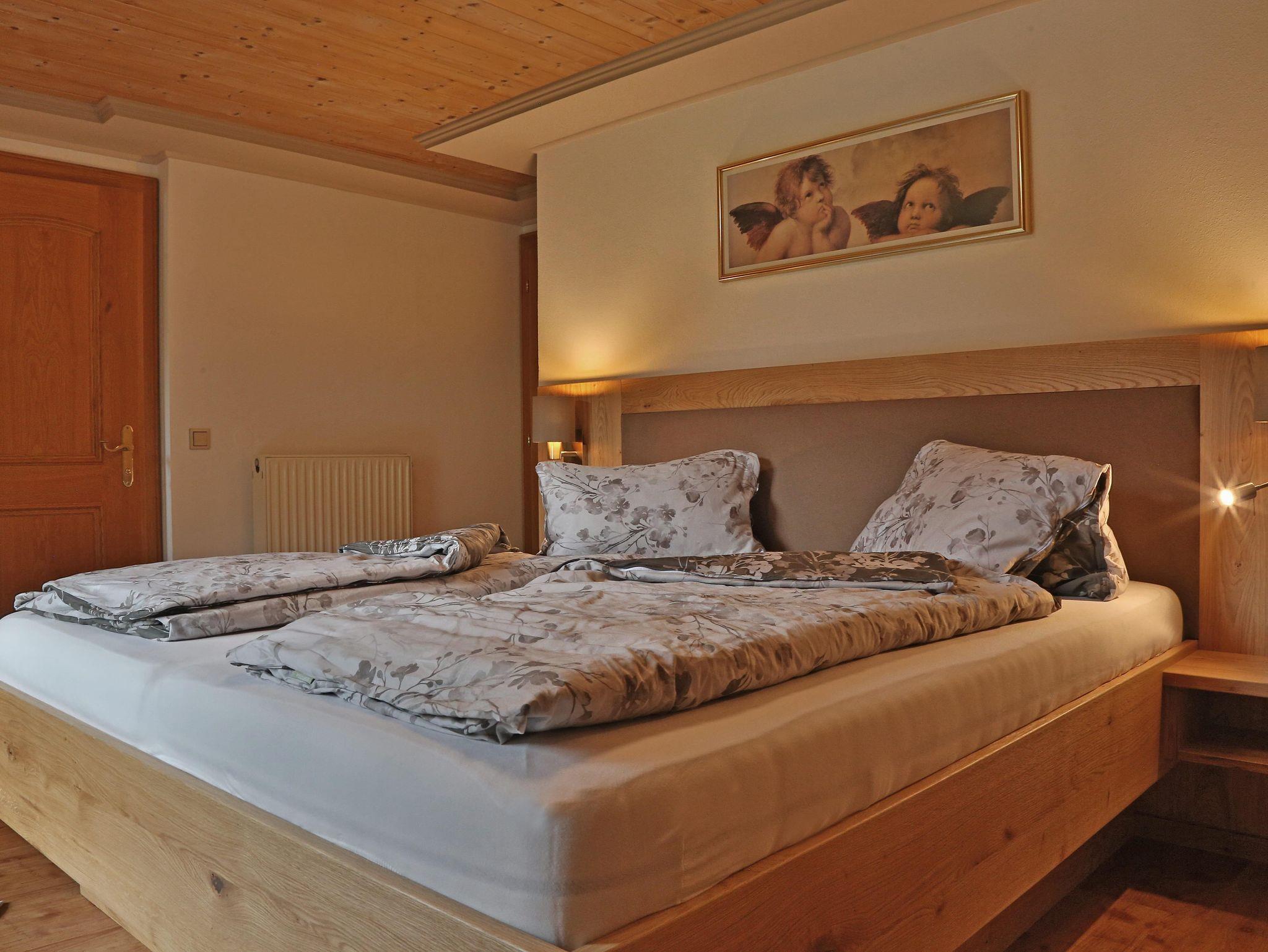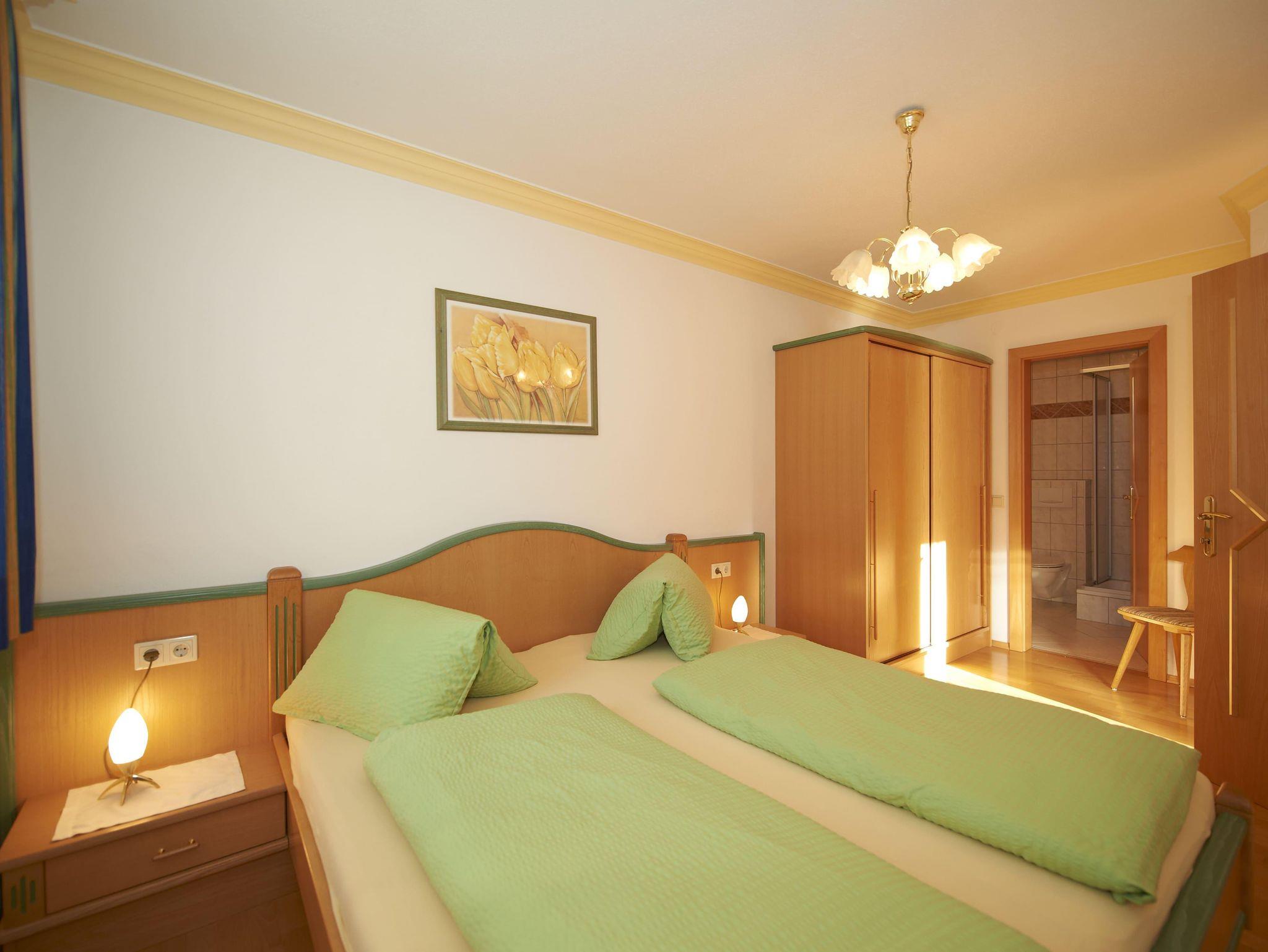 Unsere Giebelwohnung bietet Ihnen bis zu drei getrennte Schlafzimmer, jeweils mit eigener Dusche und WC. In der Wohnung, die komfortabel und komplett eingerichtet ist, befindet sich ein Flat-Sat-TV, Gratis Internetanschluss, Parkettboden und Balkon. Bettwäsche und Handtücher sind vorhanden. Frühstück ist auf Wunsch gegen Aufpreis jederzeit buchbar.
