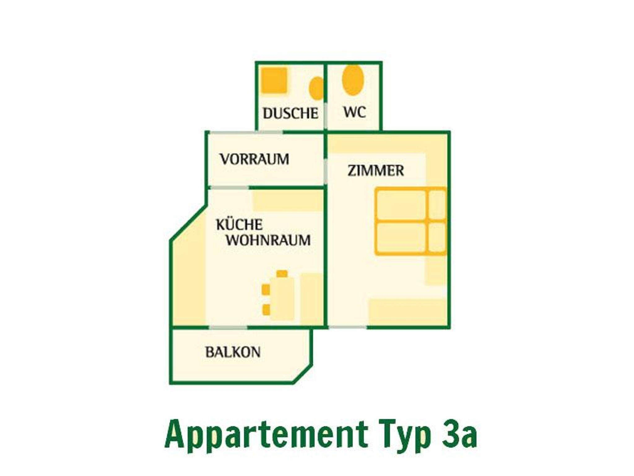 Die Appartements sind im unmittelbar anliegenden Nebenhaus, erbaut in den 90er Jahren, hell eingerichtet mit Voglauer Möbeln. Bodenbeläge teilweise mit Teppich. Appartement mit Schlafzimmer, Wohnbereich mit Küchenzeile mit Esstisch und Doppel-Ausziehcouch mit ca. 33 m² für bis zu 2 Erwachsene und 2 Kinder im 2. Stock Mit Balkon und Blick Richtung Süd-Osten Dusche, WC extra, Haarfön Kabel-TV , Telefon, WLAN