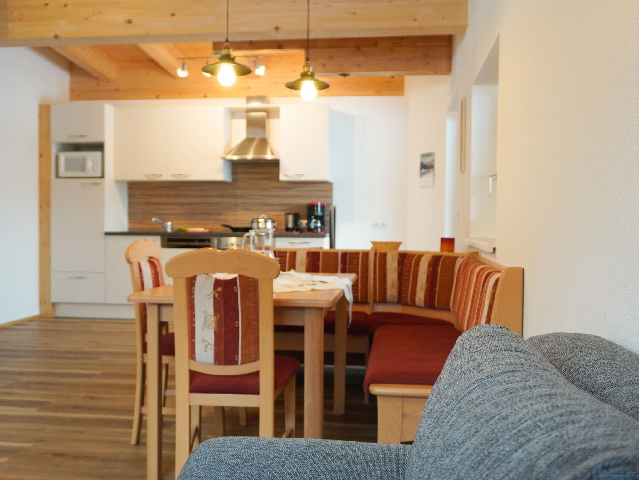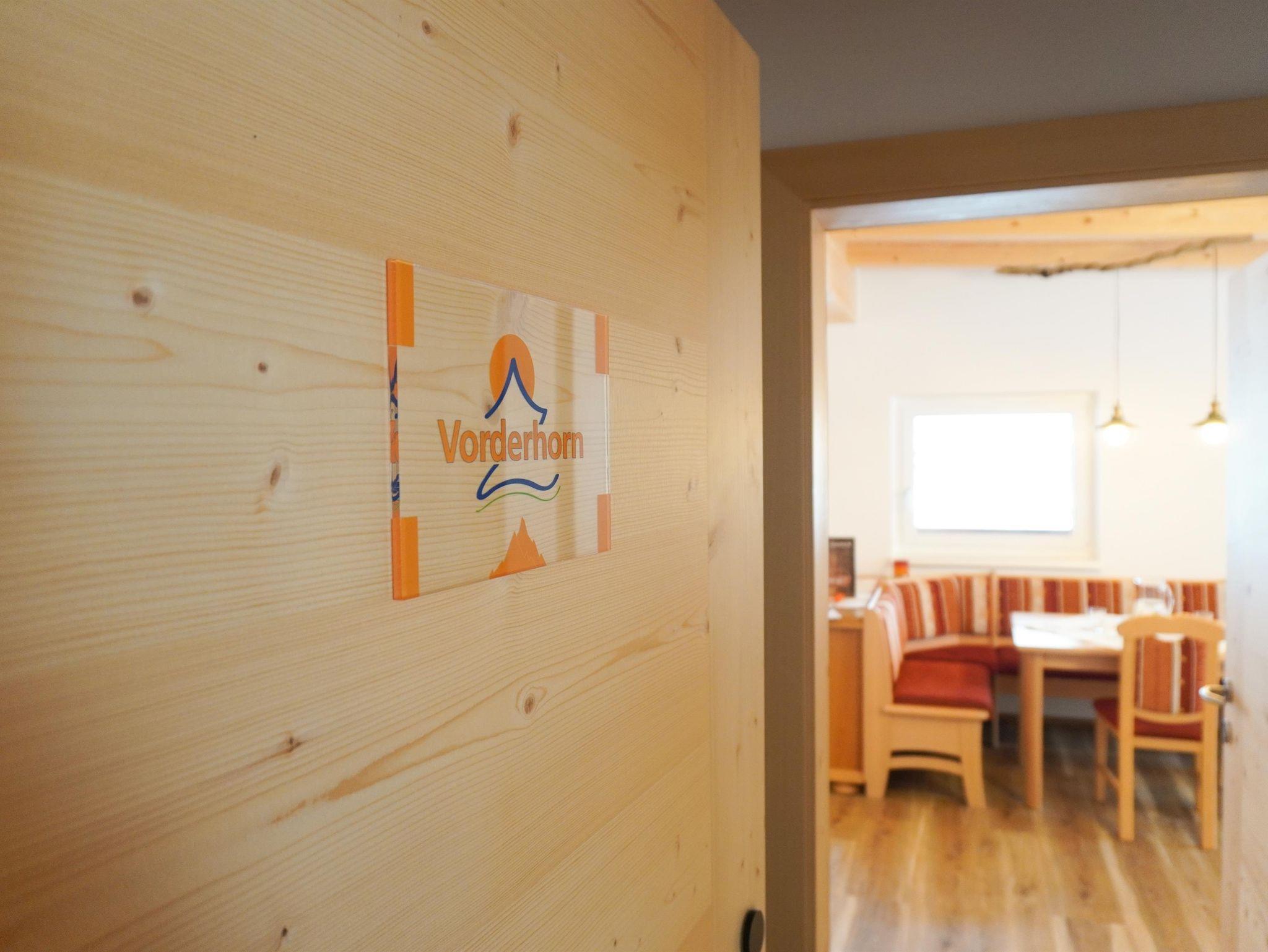 Die Ferienwohnung Vorderhorn umfasst 82 m² und liegt im 2. Stock und hat einen eigenen Balkon und bietet mit 2 Schlafzimmern Platz für 2 - 6 Personen. Die geräumige Wohnküche ist komplett ausgestattet inkl. Mikrowelle, Ceran-Kochfeld, Backofen, Geschirrspüler, Geschirr usw. Weiters hat die Wohnung 2 Badezimmer und eine getrennte Toilette. Im 2. Schlafzimmer ist auch ein 2. Flat-TV.