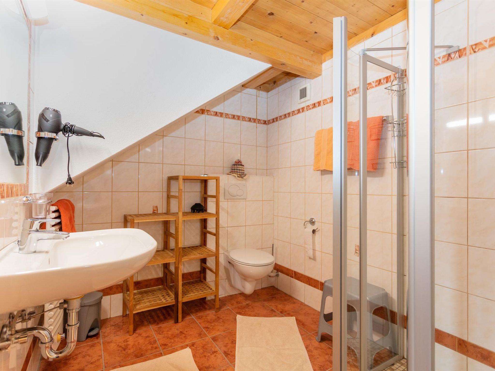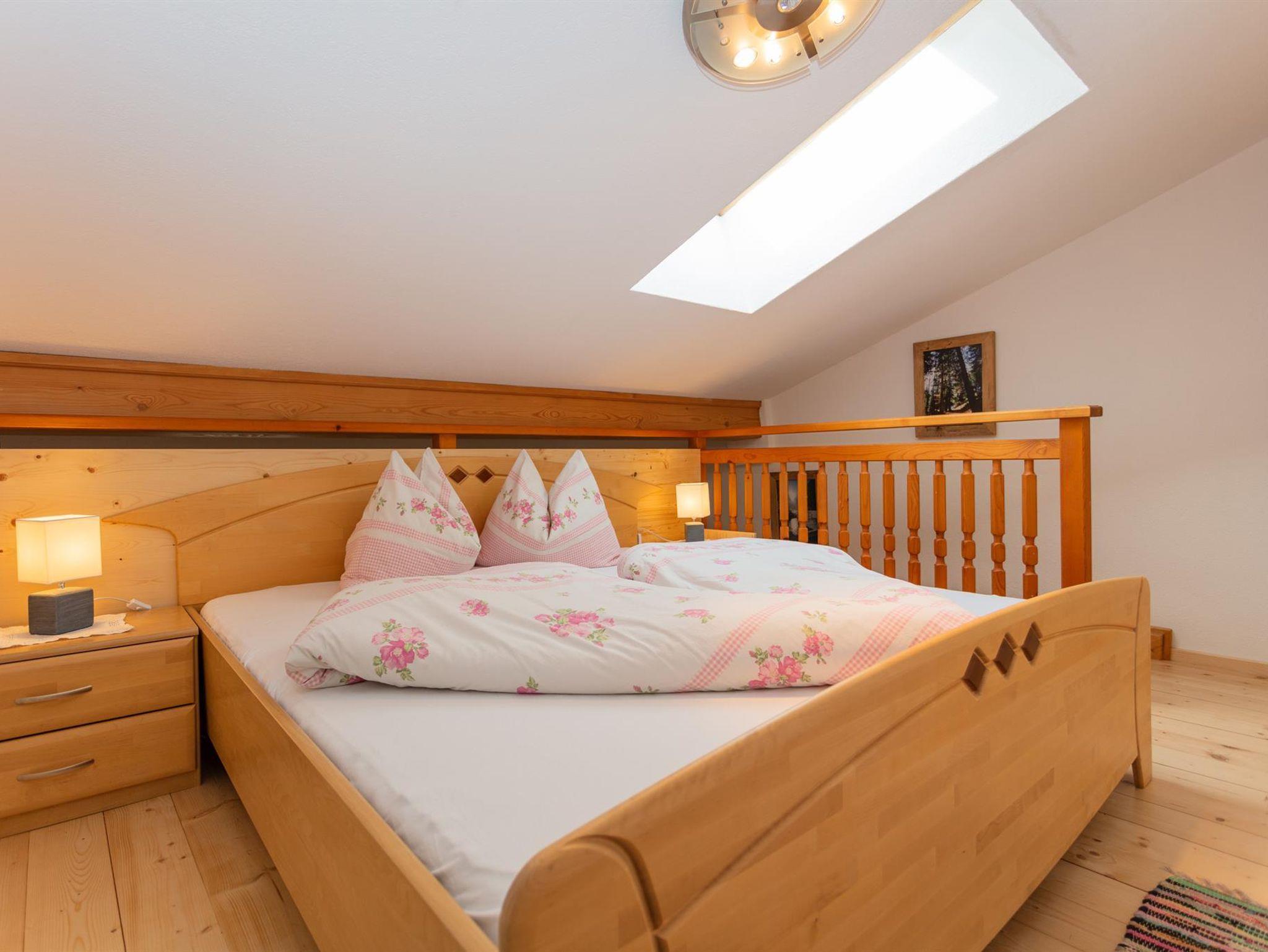 Die gemütliche Wohnung mit Almhüttenflair liegt im 2. Stock, sie hat eine Wohnküche mit Kühlschrank, E-Herd, Geschirrspüler, ausziehbare Ledercouch gemütlicher Sitzecke. Über die Treppe geht es rauf auf die Galerie, wo sich der Schlafbereich befindet.