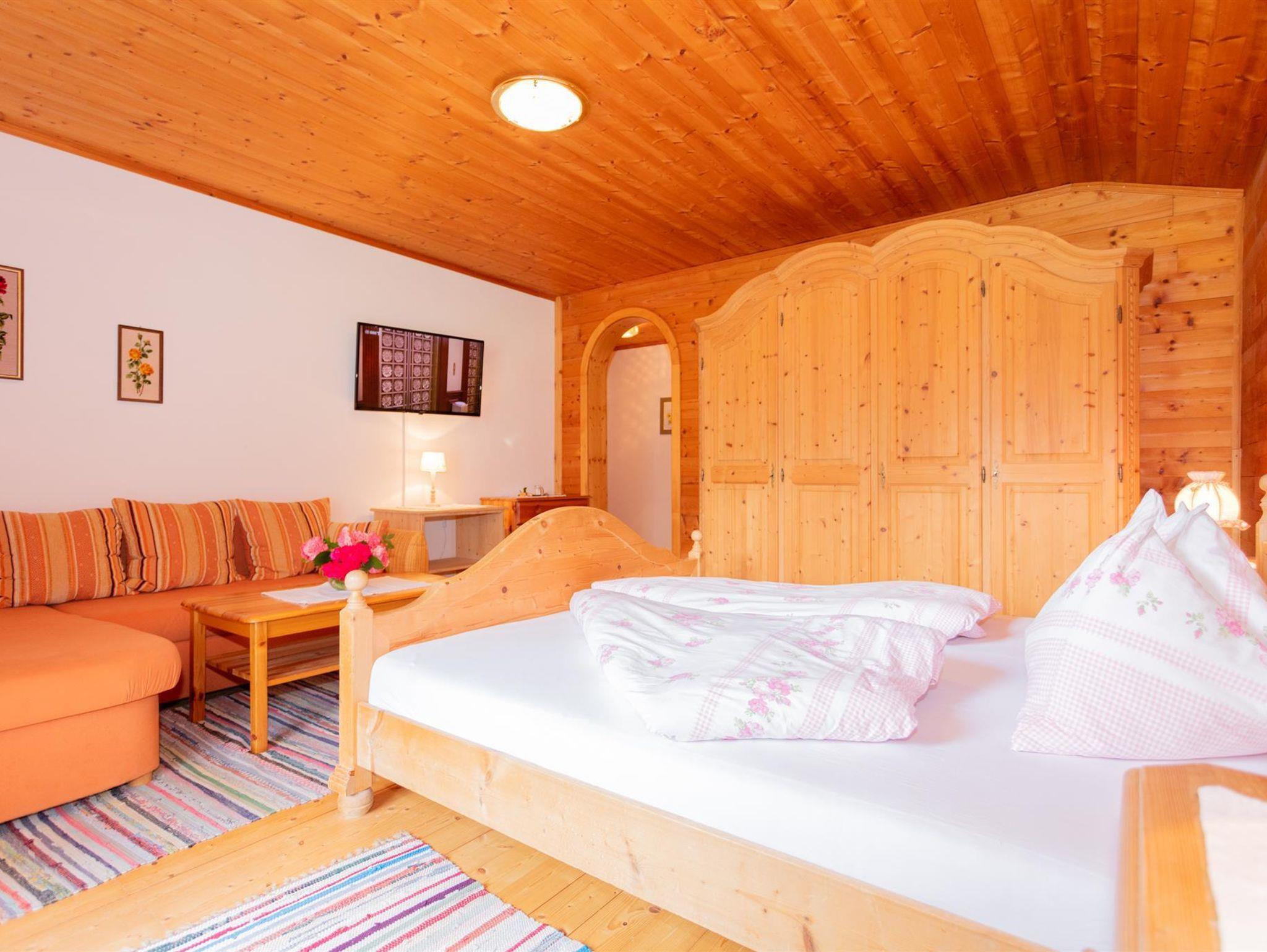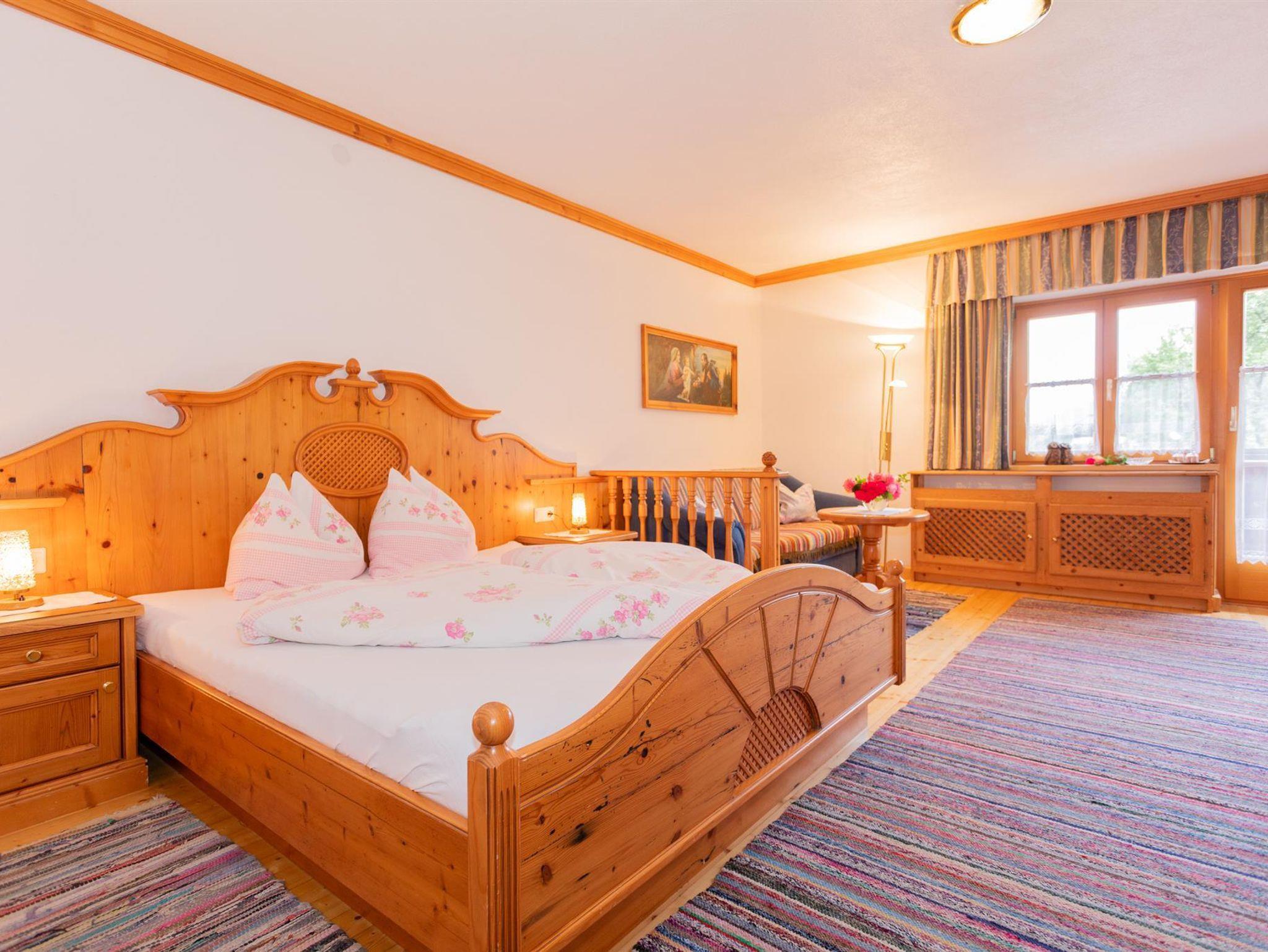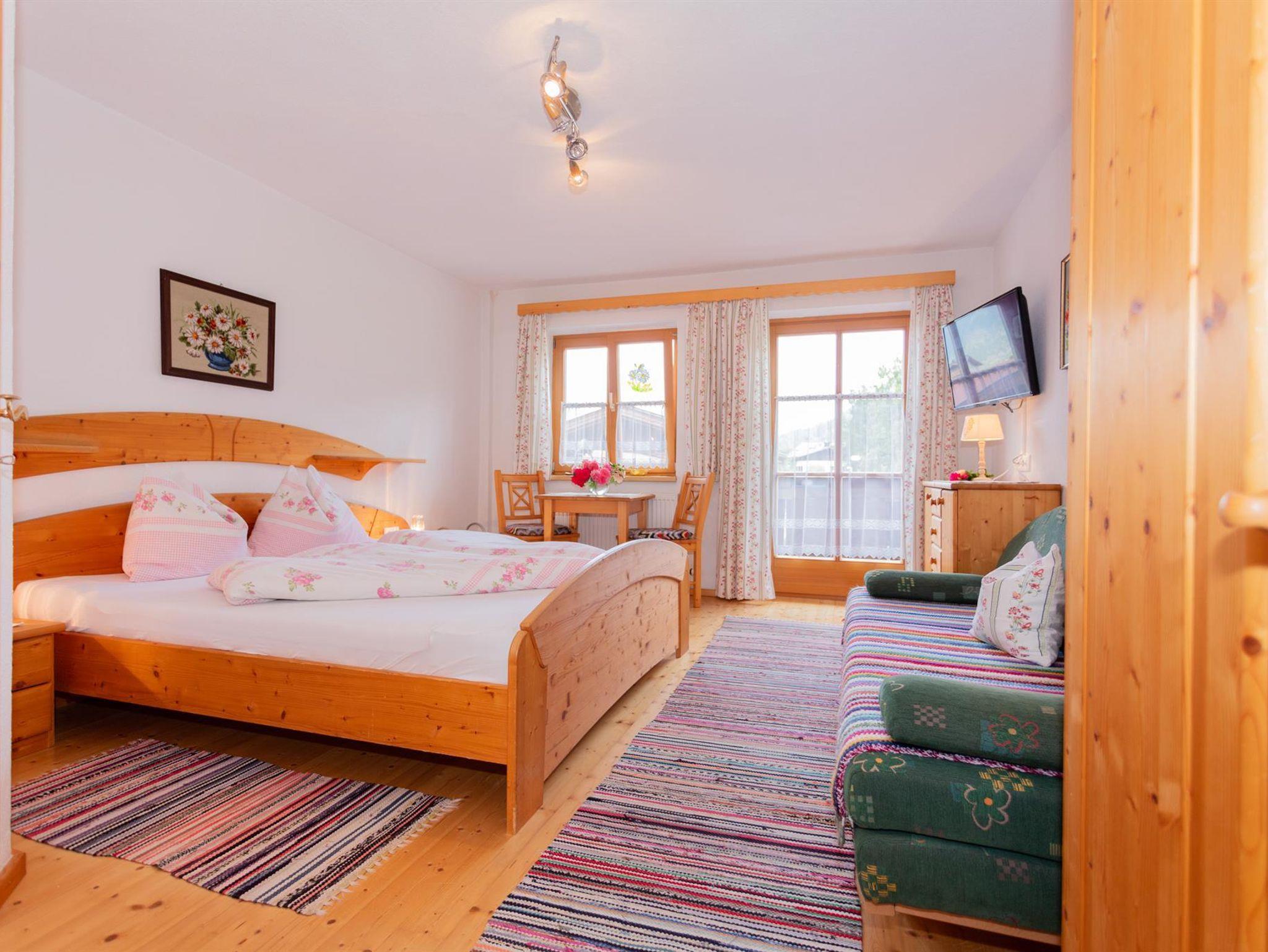 Zimmer mit gemütlicher Holzeinrichtung, Tisch mit 2 Stühlen, Kommode, Schrank ,Flat TV, Fön, Balkon, DU/WC im Zimmer.