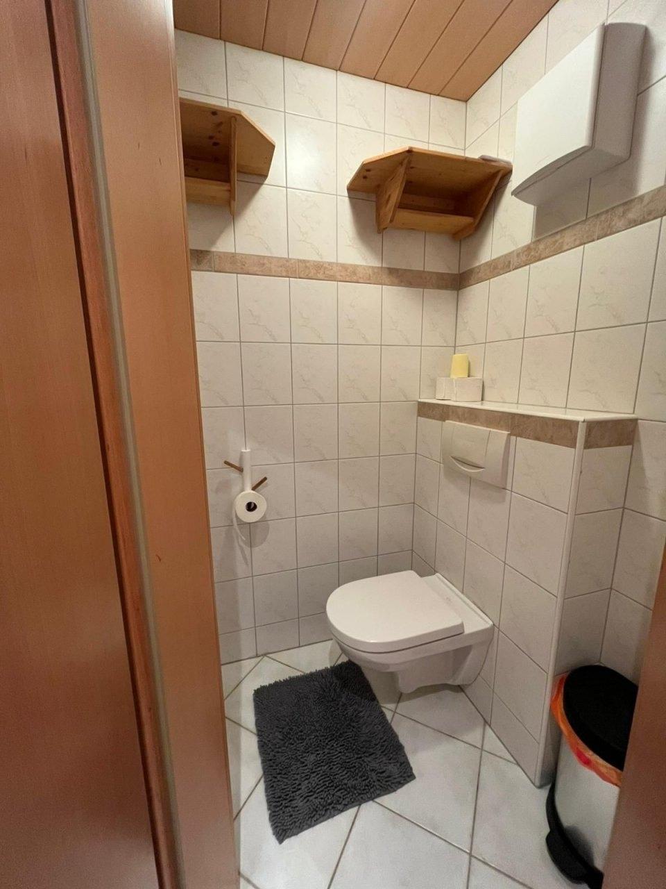 Das Apartment im 2. Stock ist ausgestattet mit kompletter Küche, Herd, Backofen, Mikrowelle, Kühlschrank mit Gefrierfach und Waschmaschine (10 kg).