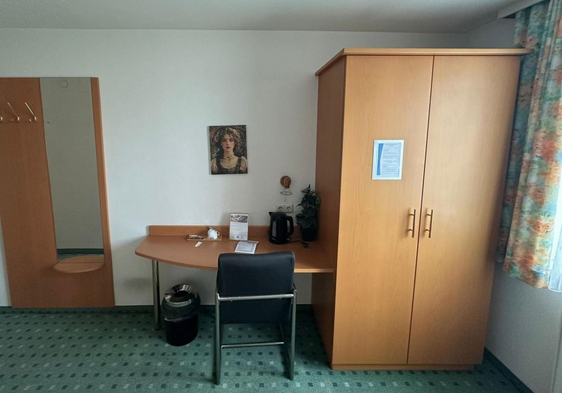 Das Pensionszimmer befindet sich auf der Seite des ruhigen und geschützten Innenhofes. Die schalldichten Fenster sorgen für eine angenehme Nachtruhe.