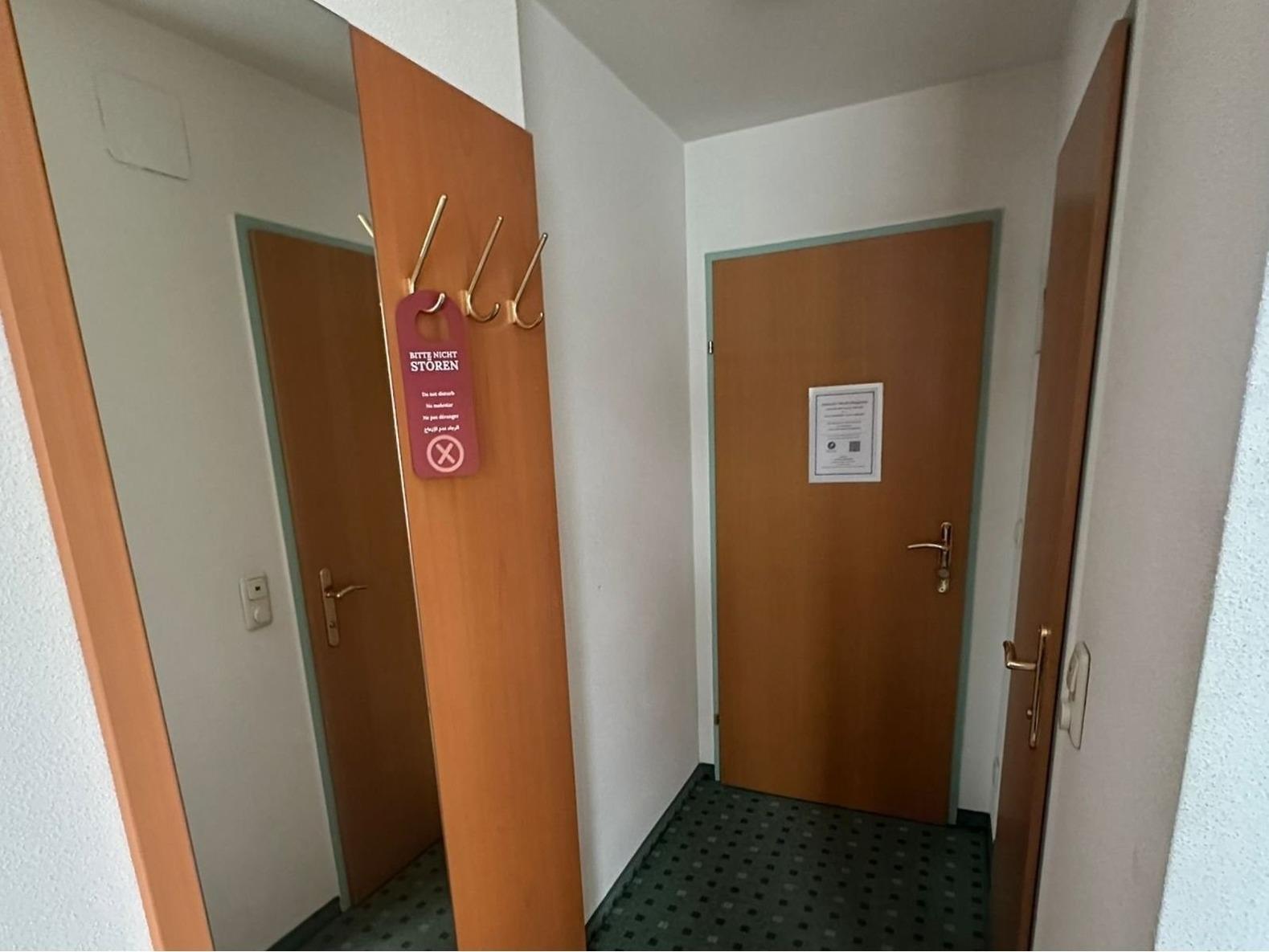 Das Pensionszimmer befindet sich auf der Seite des ruhigen und geschützten Innenhofes. Die schalldichten Fenster sorgen für eine angenehme Nachtruhe.