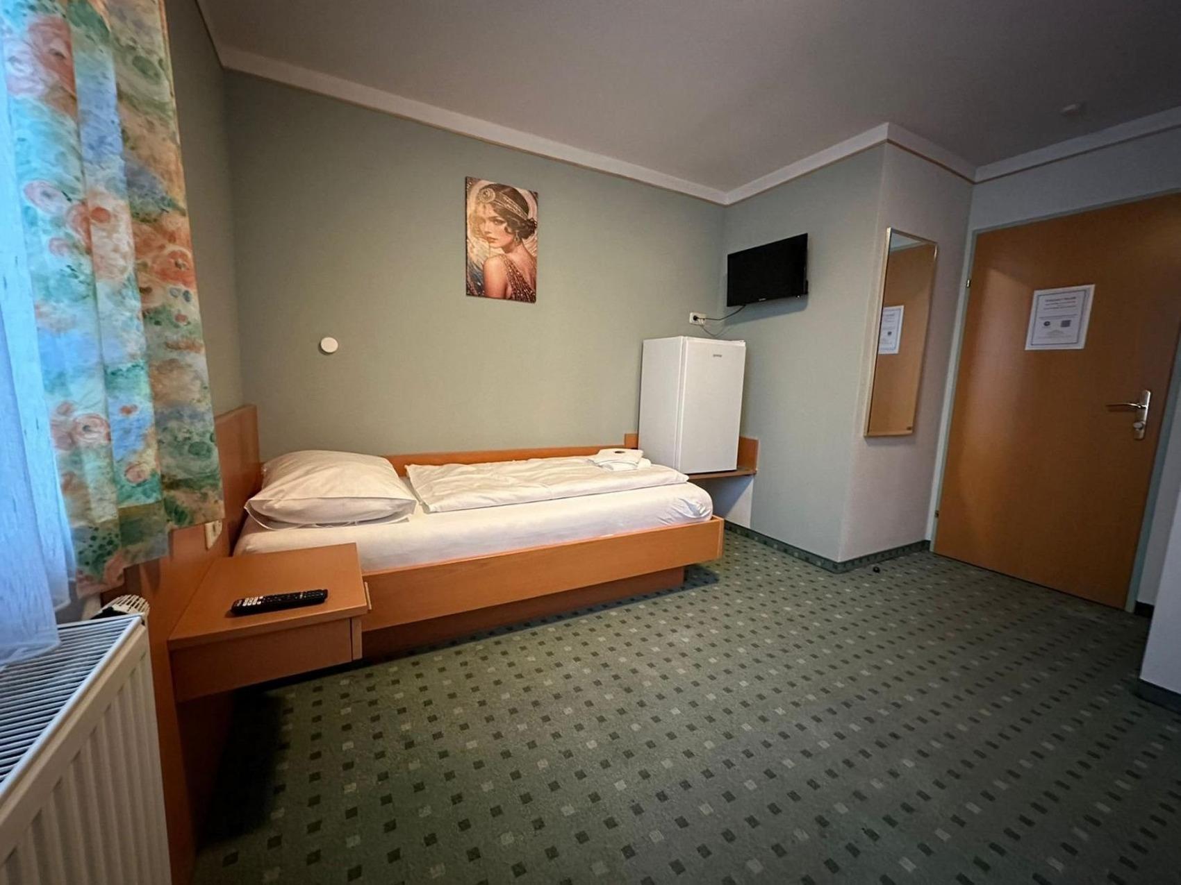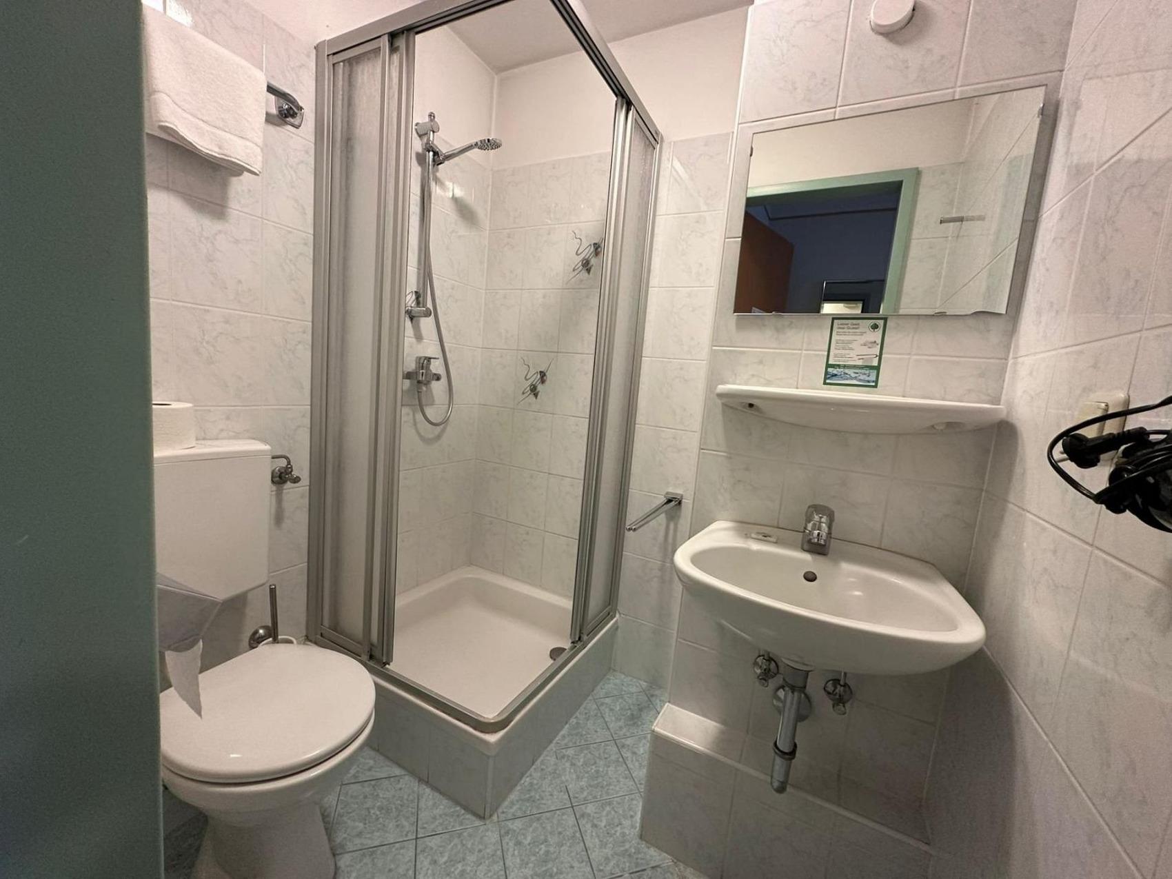 Ihr Einzelzimmer Nr. 204 im 2. Stock ist ausgestattet mit einem Einzelbett, Schreibtisch, Kühlschrank mit Gefrierfach, TV, WLAN, Duschbad/WC.
