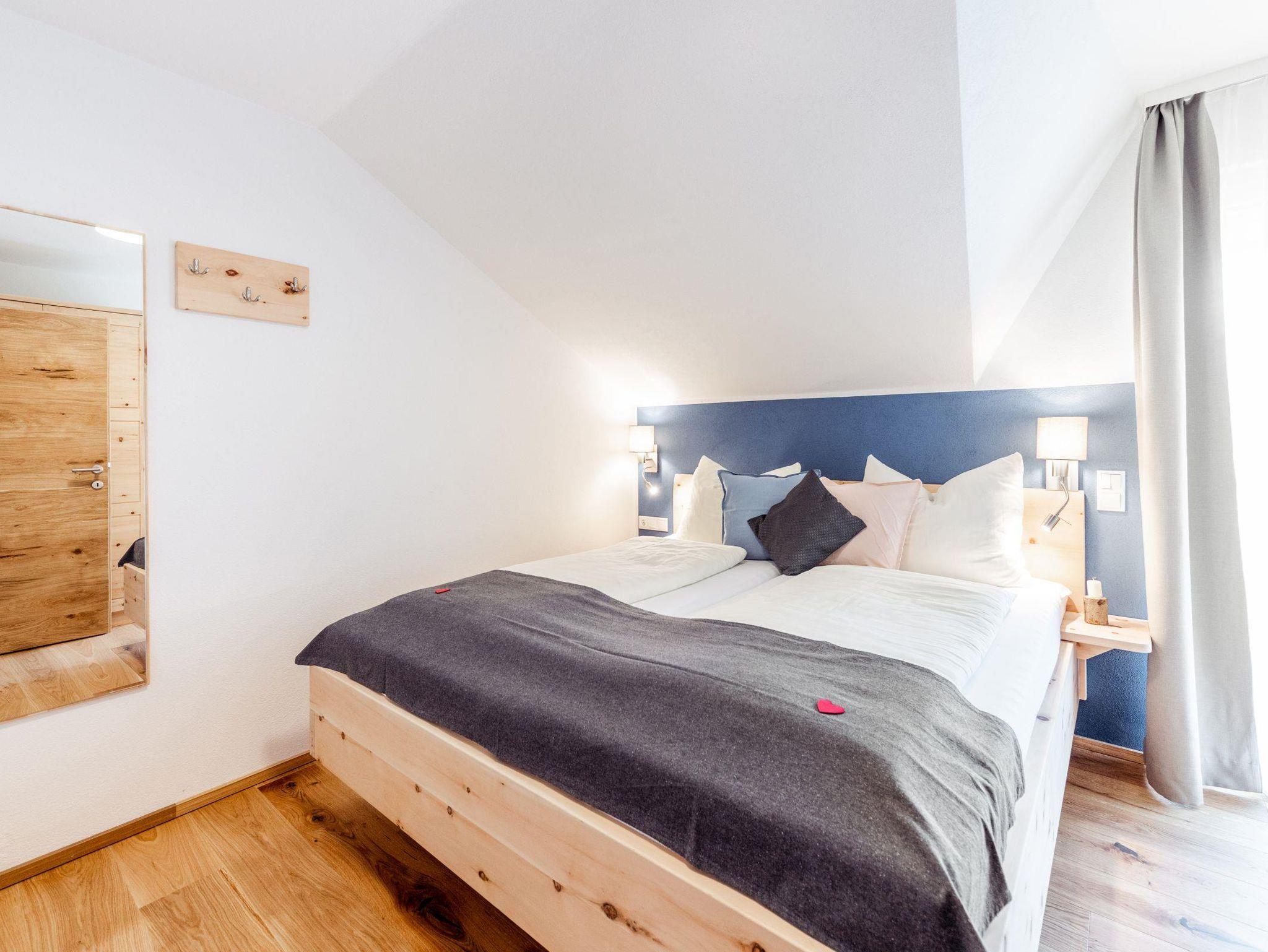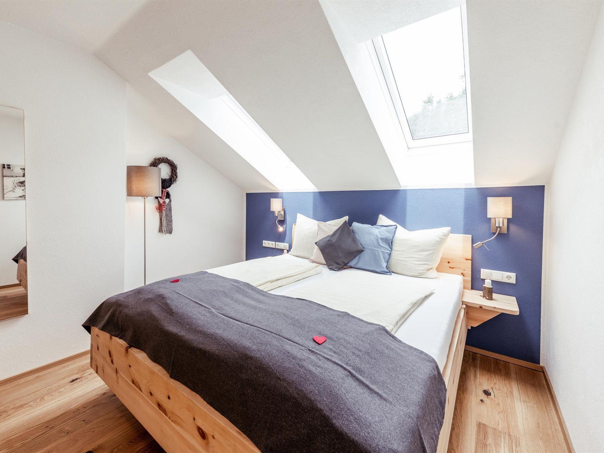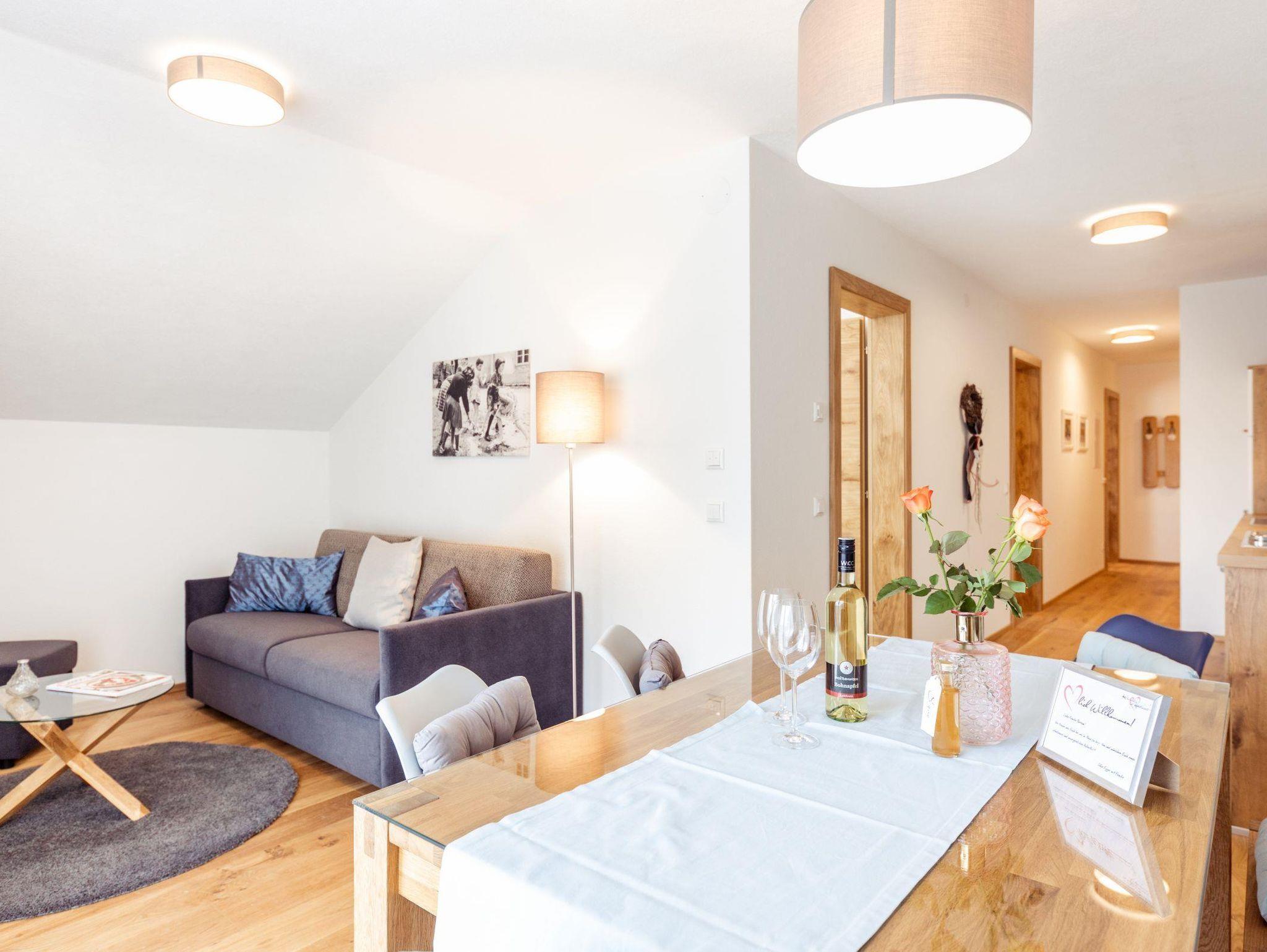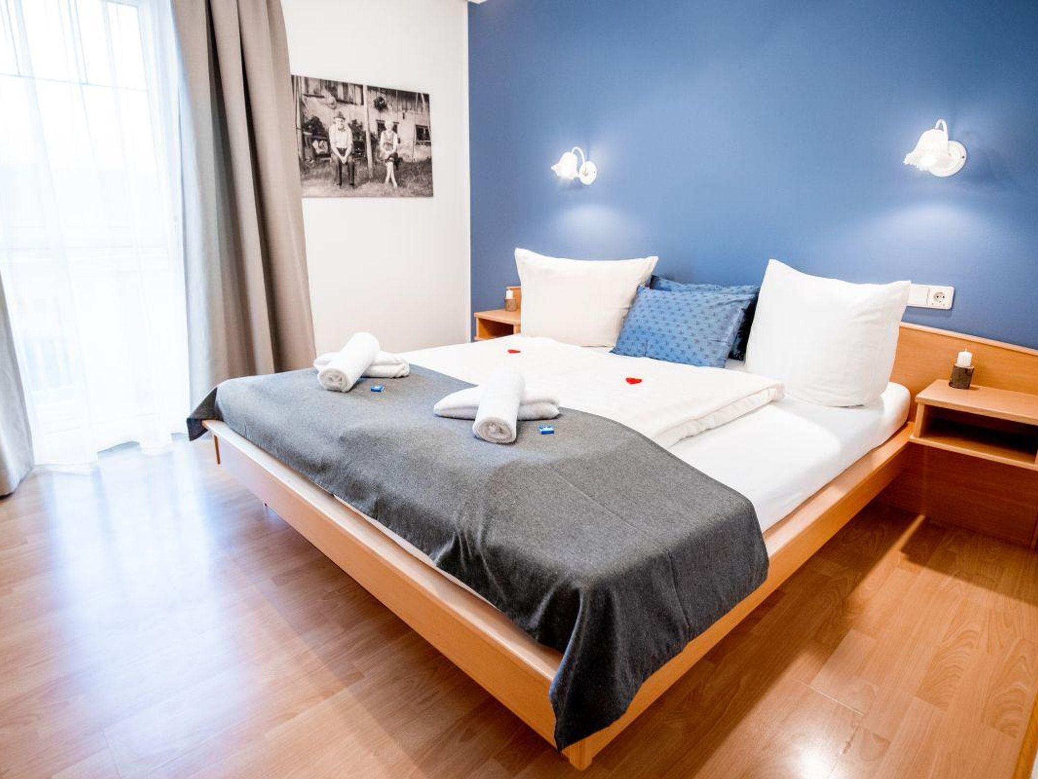 Unsere Apartment Petzen ist ideal für größere Familien mit bis zu 4 Kindern oder Freundesgruppen. Hier genießt ihr einen kleinen Ost-Balkon mit Blick auf den Pool sowie einen hellen Wohn-Essbereich mit einer großen Ausziehcouch, zwei separate Schlafzimmer mit zusätzlich Platz für ein Gitterbett. Überdies ist die Küche voll ausgestattet. In den Schlafzimmern finden sie Zirben-Vollholzmöbel.