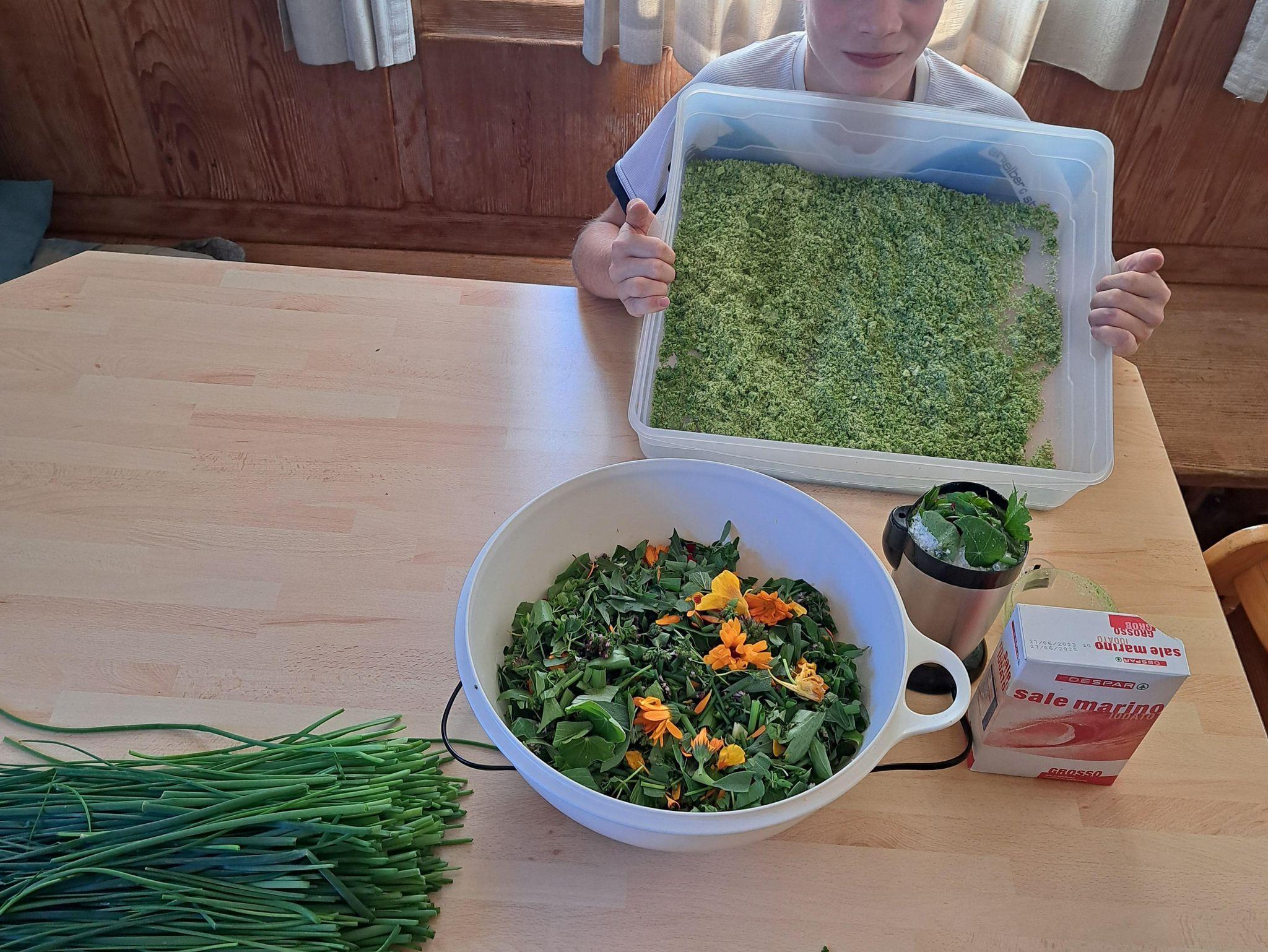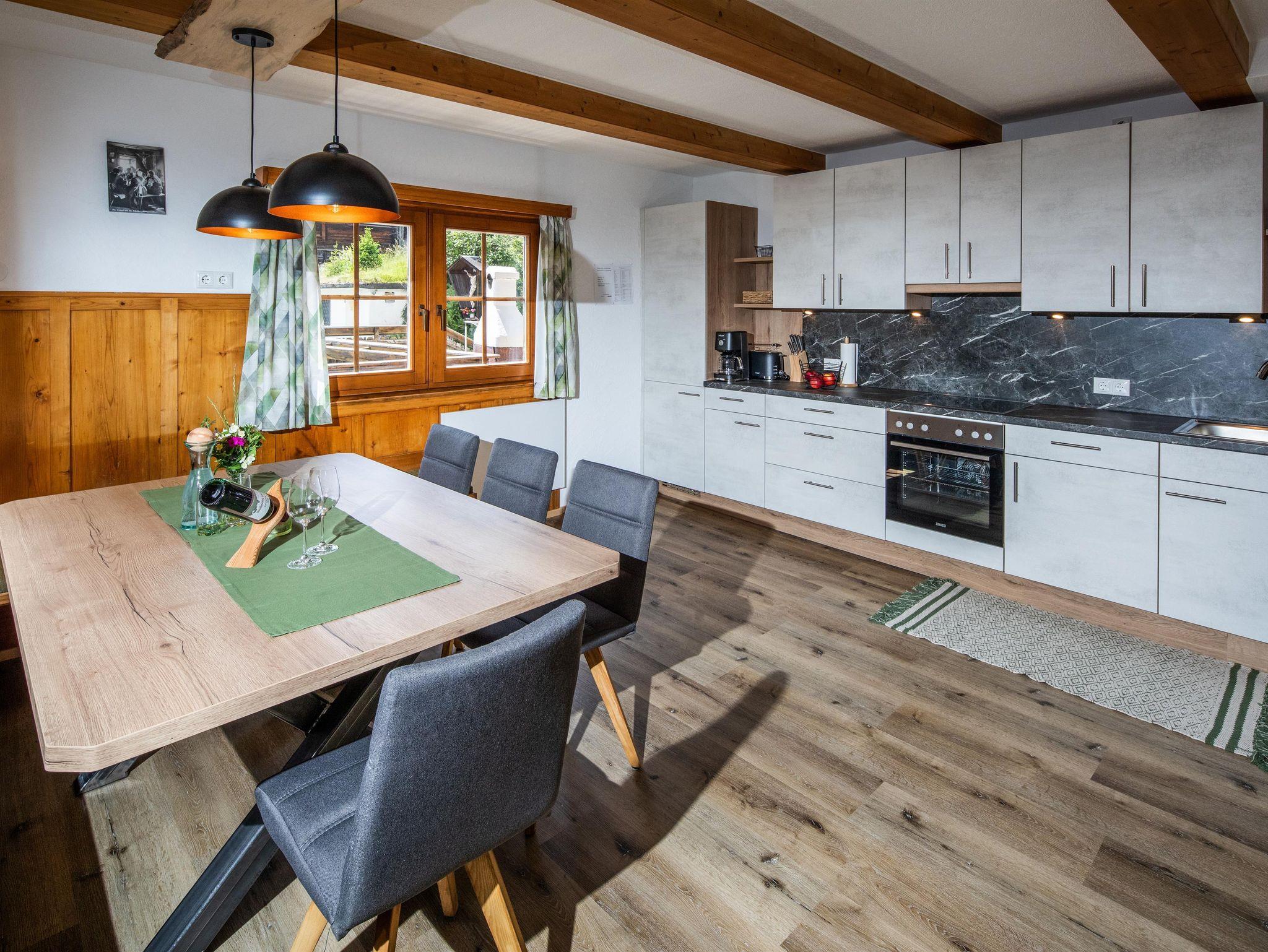 In der großen Küche kann gemeisam gekocht und dann beim großen Esstisch gemütlich gegesse werden.