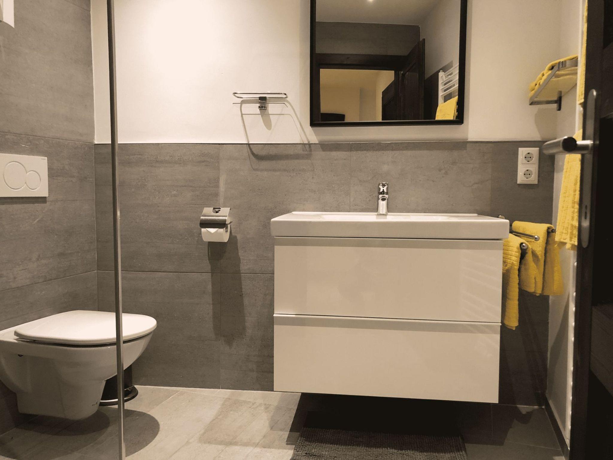 Apartment 2 befindet sich im zweiten Stock und bietet auf 35 m² Platz für bis zu 4 Personen. Das offene Studio verfügt über einen Wohn- und Schlafbereich mit Doppelbett, einem Schlafsofa für 2 Personen sowie einer Küche. Zudem gibt es ein eigenes Badezimmer mit Dusche, Waschbecken und Toilette sowie einen Balkon.