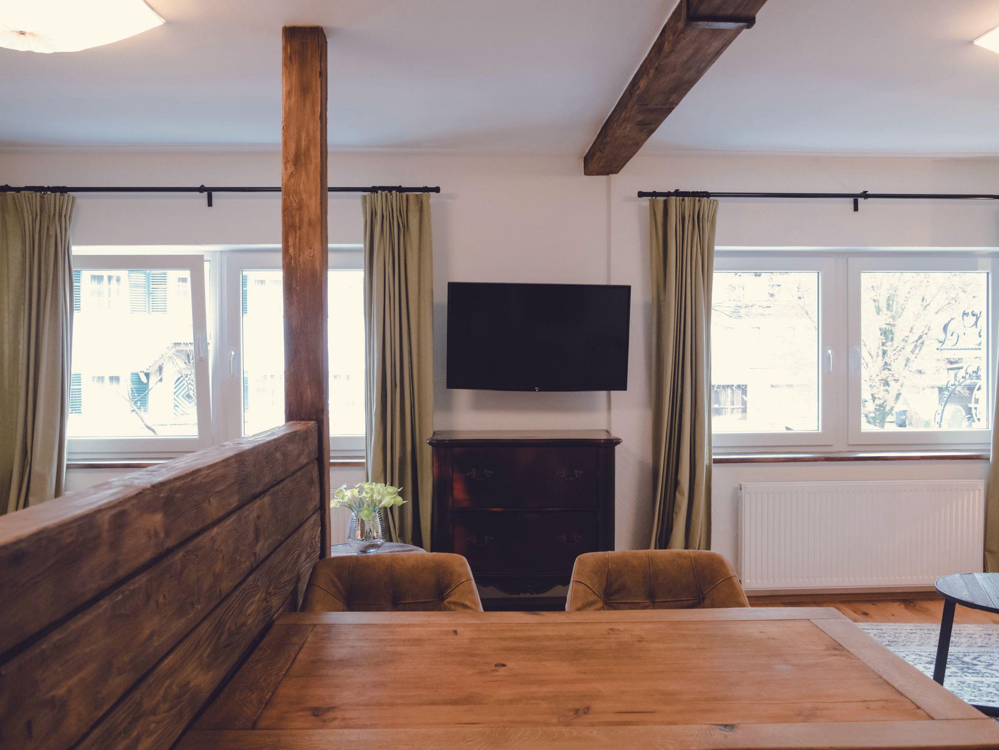 Die drei Style Apartments by Mieze Schindler liegen im Herzen von St. Wolfgang im Salzkammergut. Sie befinden sich in der Fußgängerzone über dem hauseigenen Geschäft im Erdgeschoss. Alle drei offen gestalteten Apartments bieten Platz für bis zu 4 Personen und sind mit einem Doppelbett sowie einem Sofabett ausgestattet. Zusätzlich verfügen sie über eine Küche und ein Badezimmer. Apartment 2 hat einen Balkon, Top 3 eine Dachterrasse.