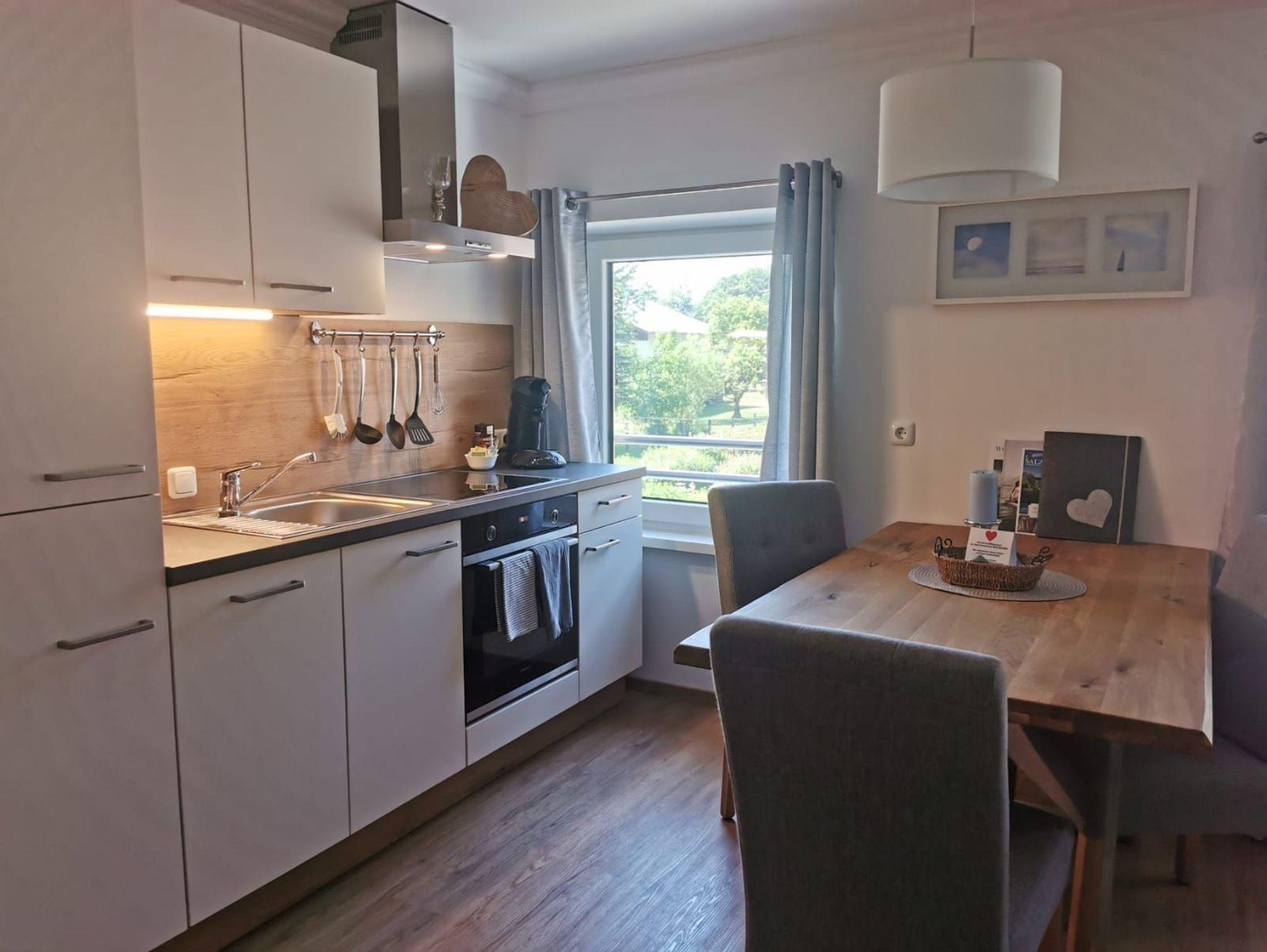sowie einer voll ausgestatteten Küchenzeile mit Ceran-Herd,
