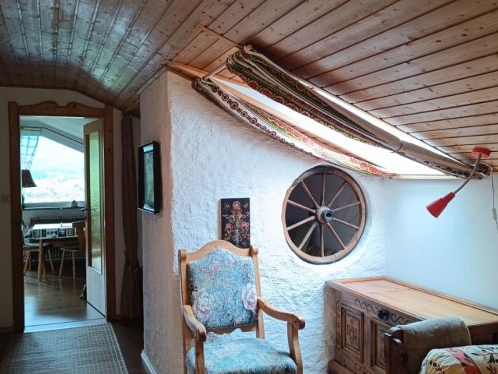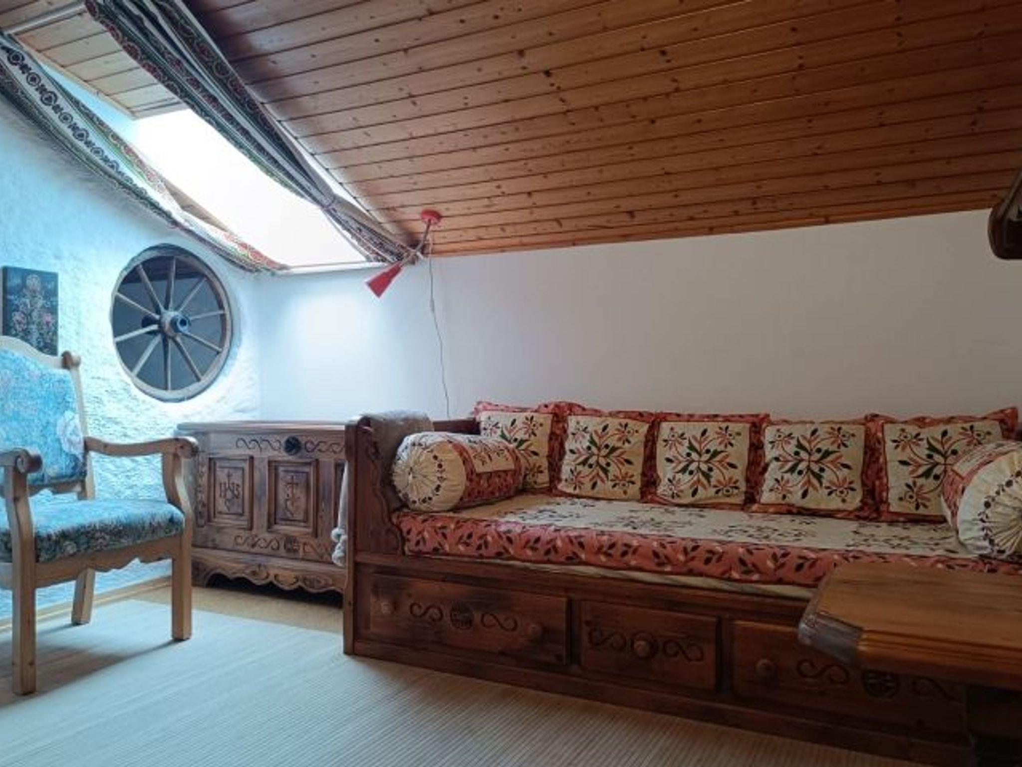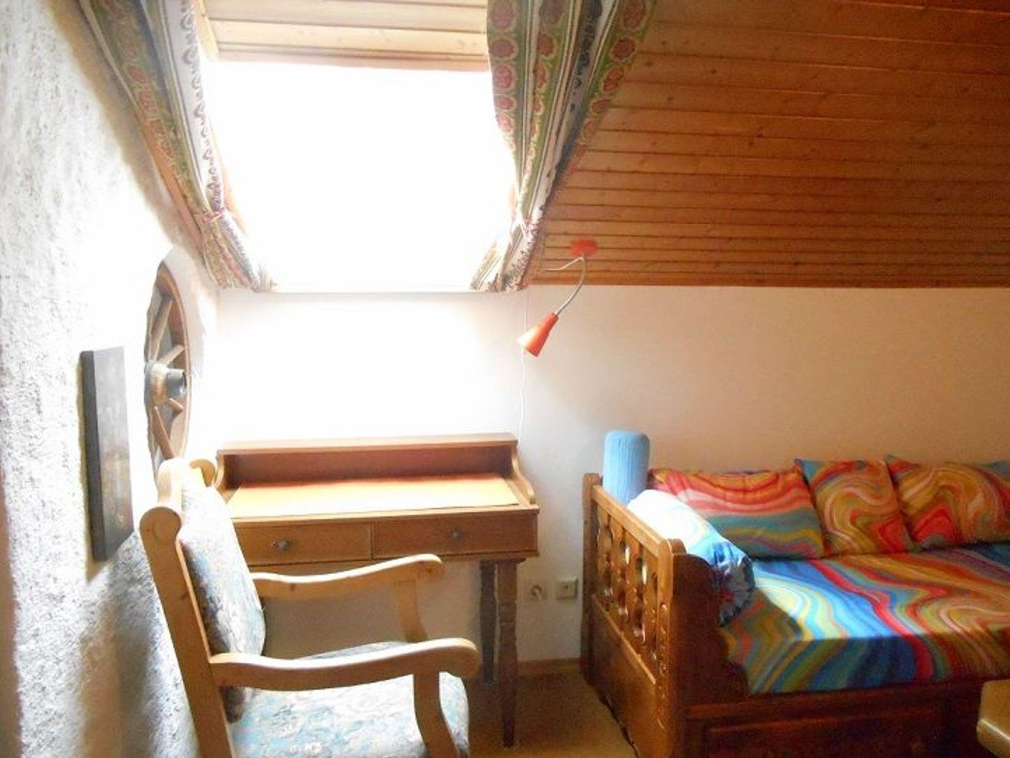 - zweiter Wohnraum mit Lesesofa und Couchtisch und Schreibtisch unterm Dachfenster
