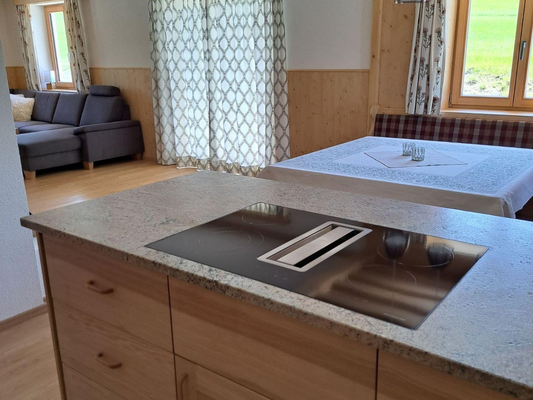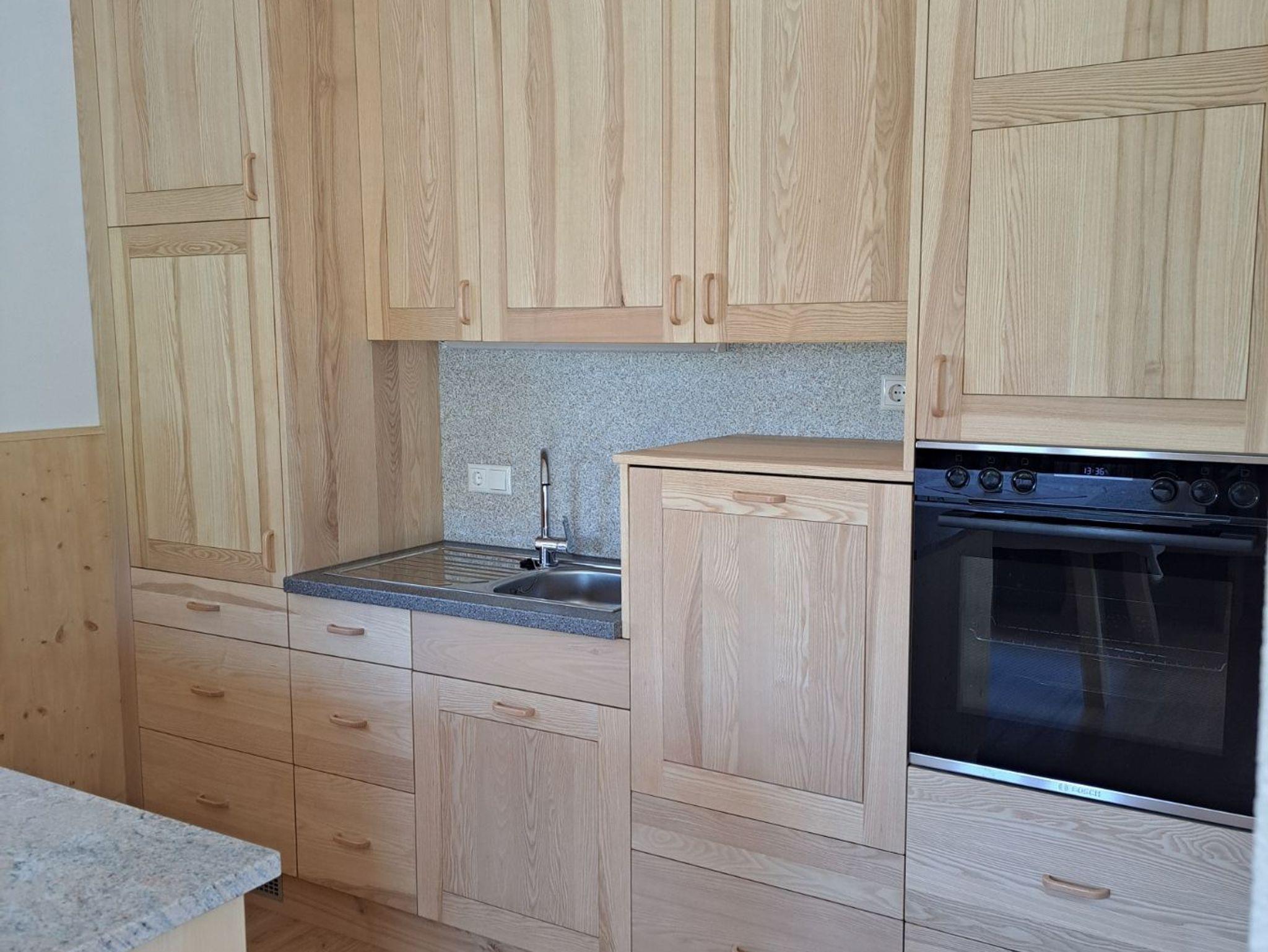 Weiters verfügt die Ferienhütte über eine Küche mit Geschirrspüler, E-Herd, 2 Kochplatten, Geschirr, Besteck, Gläser, uvm.