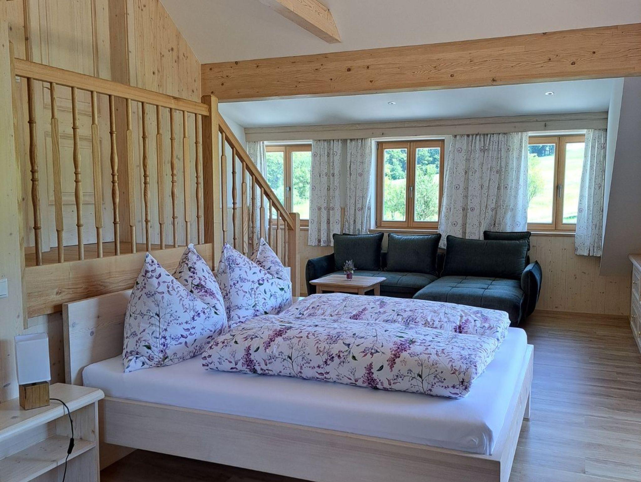 Im ersten Stock befindet sich das erste Schlafzimmer mit Doppelbett großräumigen Kasten und gemütlichen Sitzgelegenheiten zum lesen und zurückziehen. Im zweiten Stock finden Sie dann unser zweites Schlafzimmer mit Doppelbett, einer kleinen Wohnlandschaft, Sat TV, dem kleineren Bad und einer traumhaften Aussicht auf die umliegenden Berge. Vom Schlafzimmer ist auch unser großräumiger Balkon zugänglich. Über eine kleine Treppe im 2 Stock gelangen Sie ins dritte Schlafzimmer (Kinderzimmer) mit zwei Einzelbetten einen Schreibtisch mit zwei Sesseln und viel Platz zum spielen.