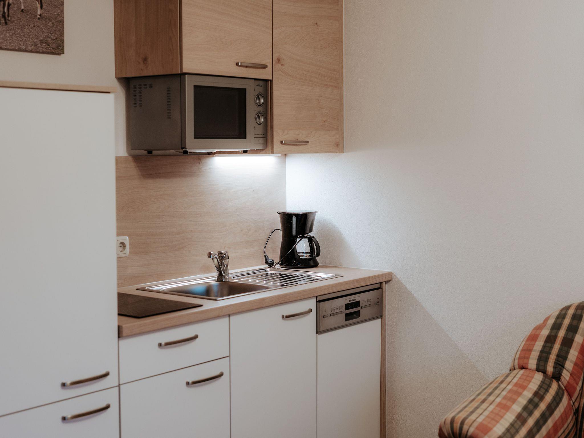 40 m² Studio | Küche mit Mikrowelle | Sofa | Dusche mit Handtücher | separates WC | 1 Doppelbett | Balkon Vorzimmer