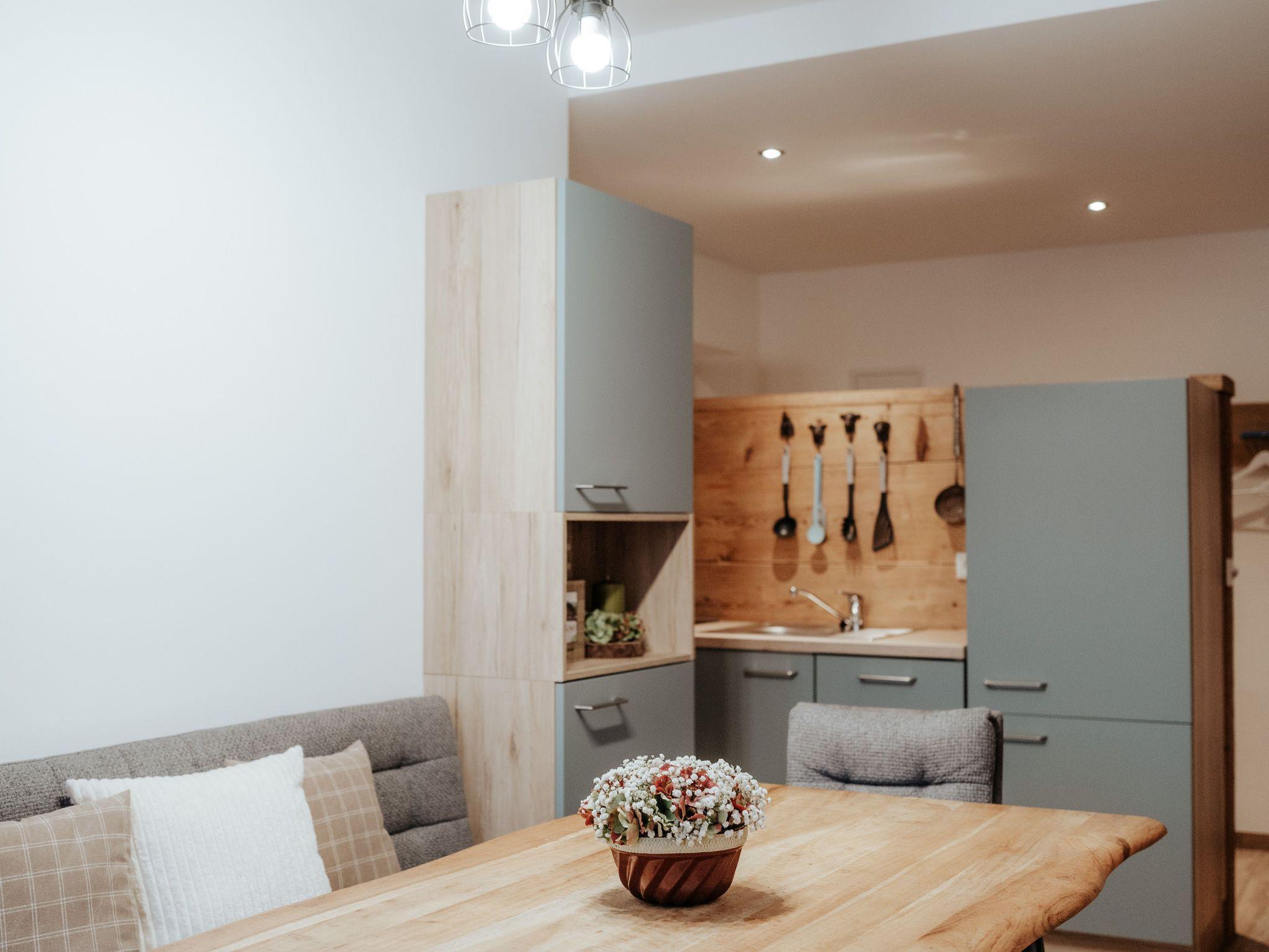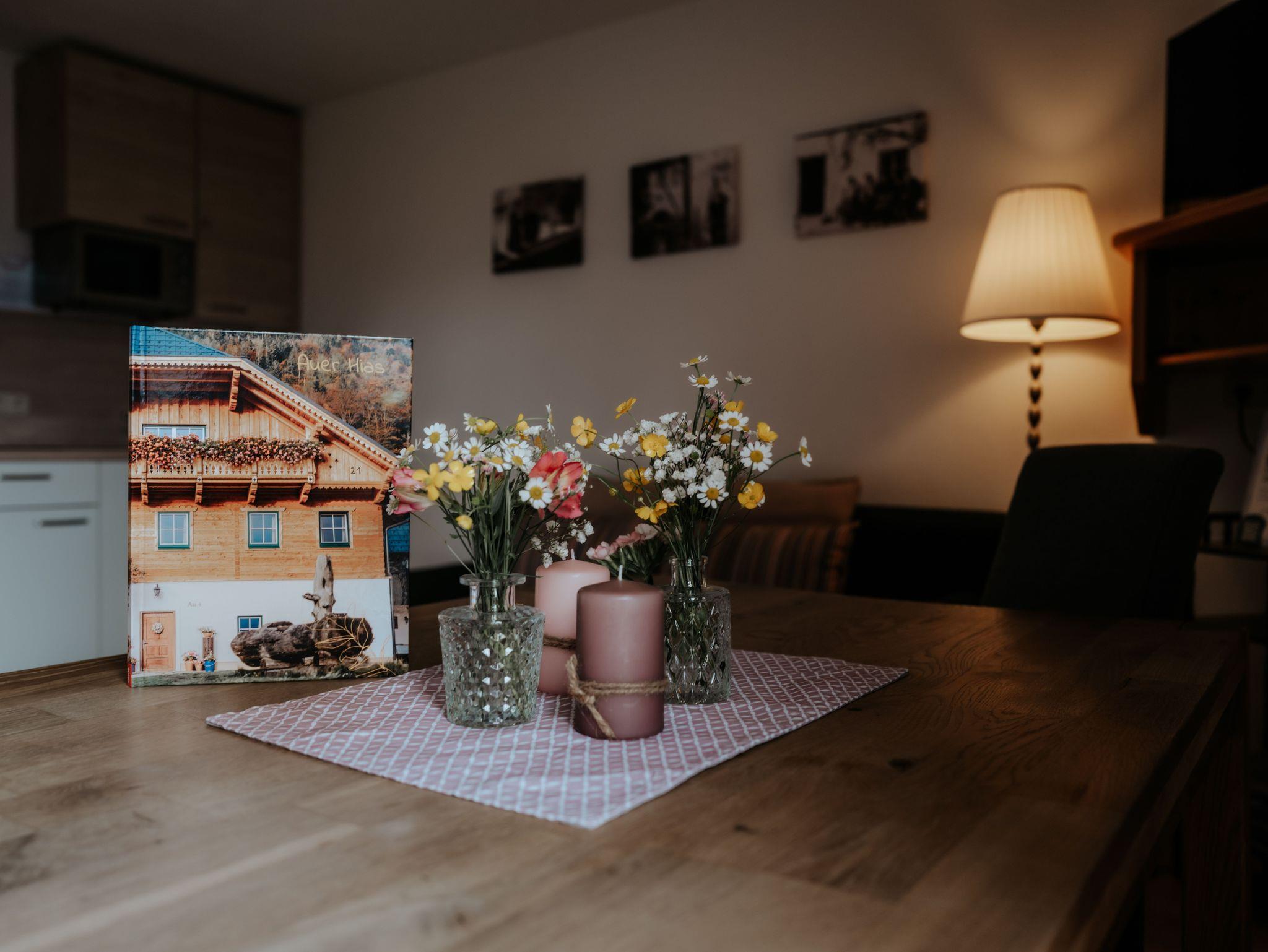 In unserer Ferienwohnung Nostalgie lässt es sich hervorragend in persönlichen Erinnerungen schwelgen. Beispielsweise, wenn in der Früh beim Blick aus dem Fenster das sanfte Licht der Morgensonne die umliegenden Berge in ein zartes Rosa taucht.