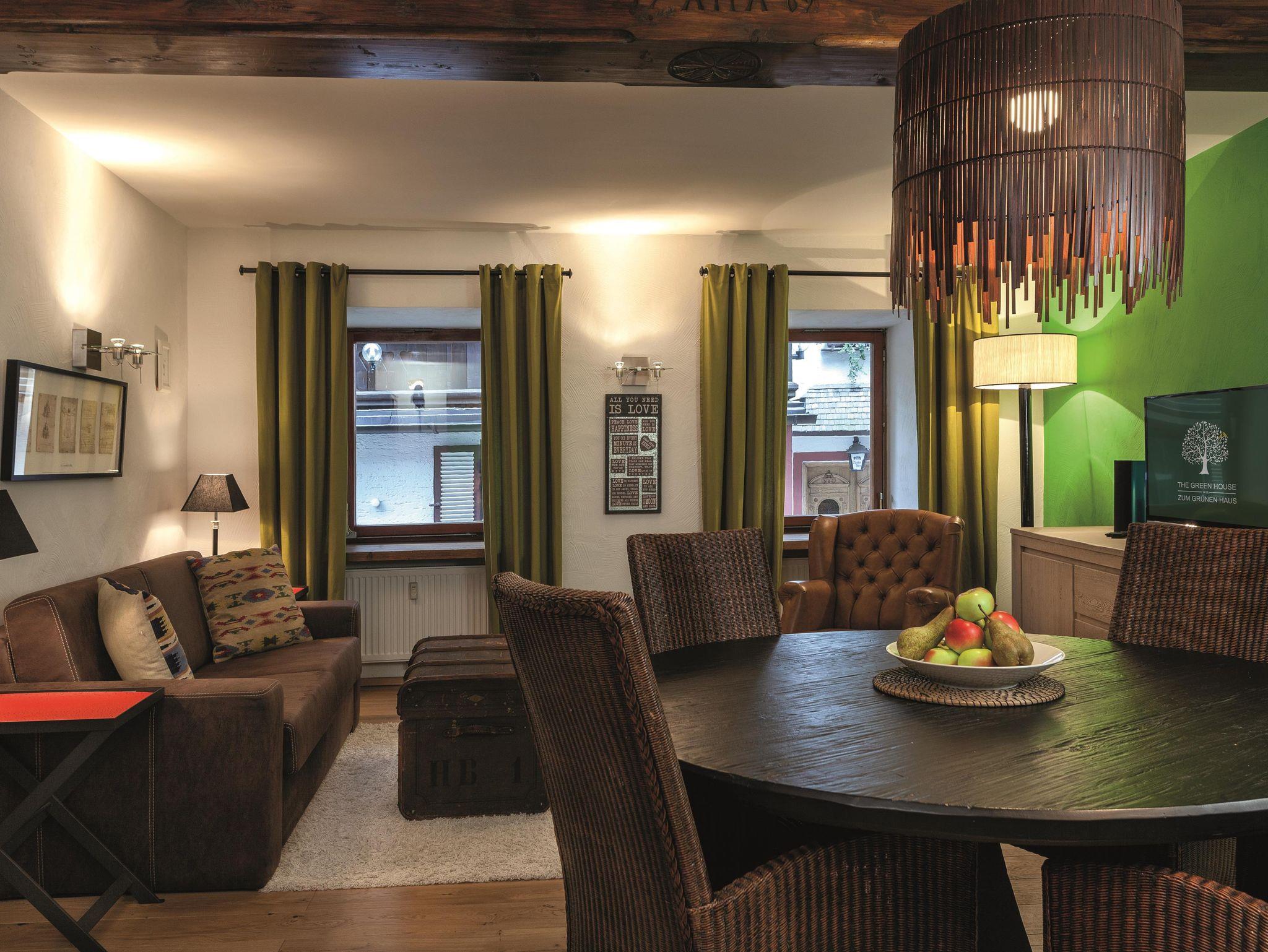 Willkommen im The Green House in St. Wolfgang im Salzkammergut, nur 100 Meter vom Wolfgangsee entfernt. Das frisch renovierte Haus liegt im verkehrsberuhigten Bereich, mitten im Herzen der Altstadt, und bietet fünf luxuriöse Apartment-Suiten für vier oder bis zu sechs Personen, die mit viel Geschichte und Charme gestaltet wurden. Parkmöglichkeiten im Freien oder in Garagen befinden sich in der näheren Umgebung. Das Gebäude wurde erstmals 1416 urkundlich erwähnt und zählt zu den ältesten Häusern in St. Wolfgang.