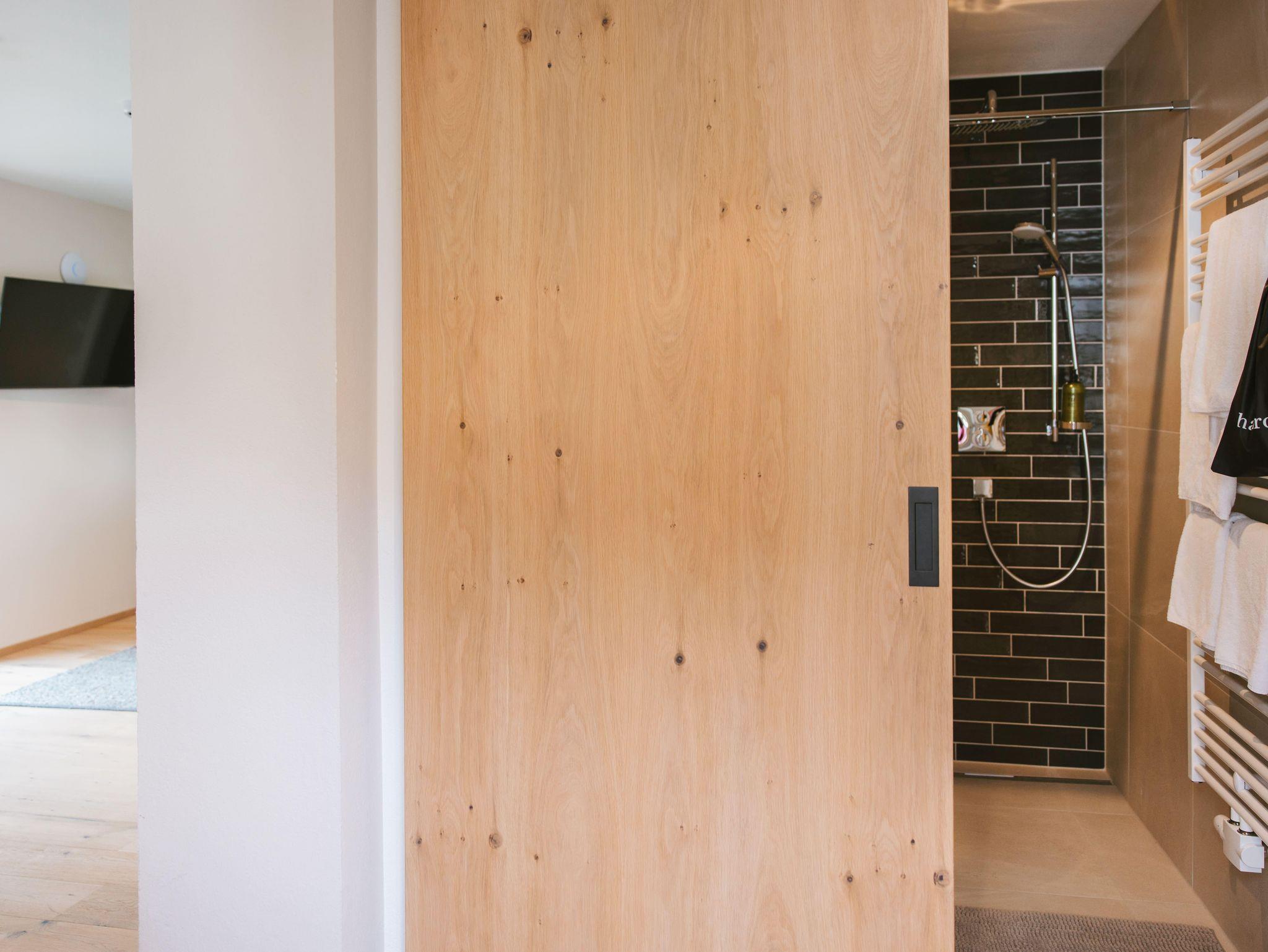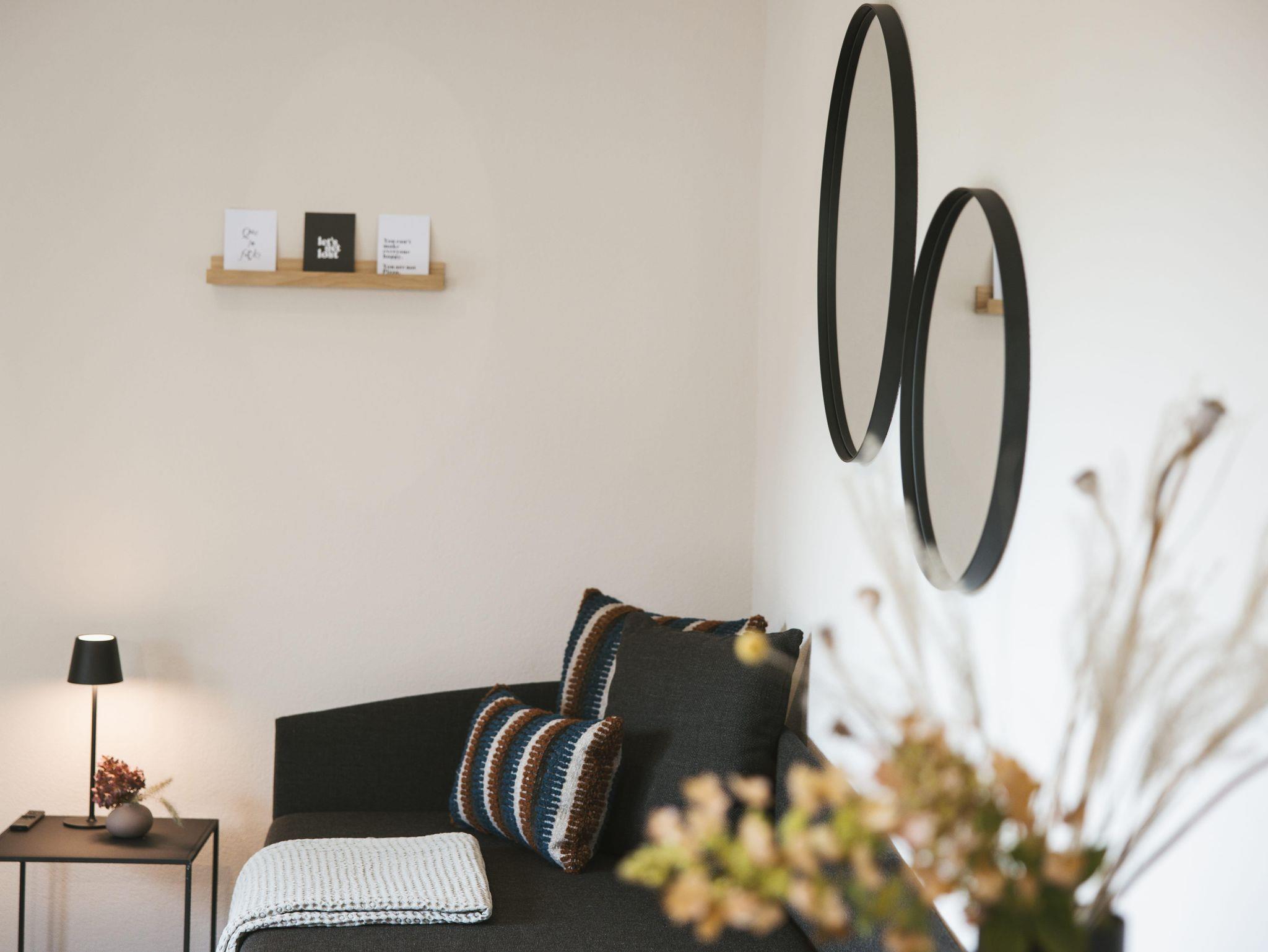 Das Apartment Franz befindet sich im ersten Stock des Nebenhauses und bietet Platz für bis zu drei Personen. Zwei Erwachsene schlafen im separaten Schlafzimmer mit Doppelbett, eine dritte Person auf der gemütlichen Couch im Wohnbereich.