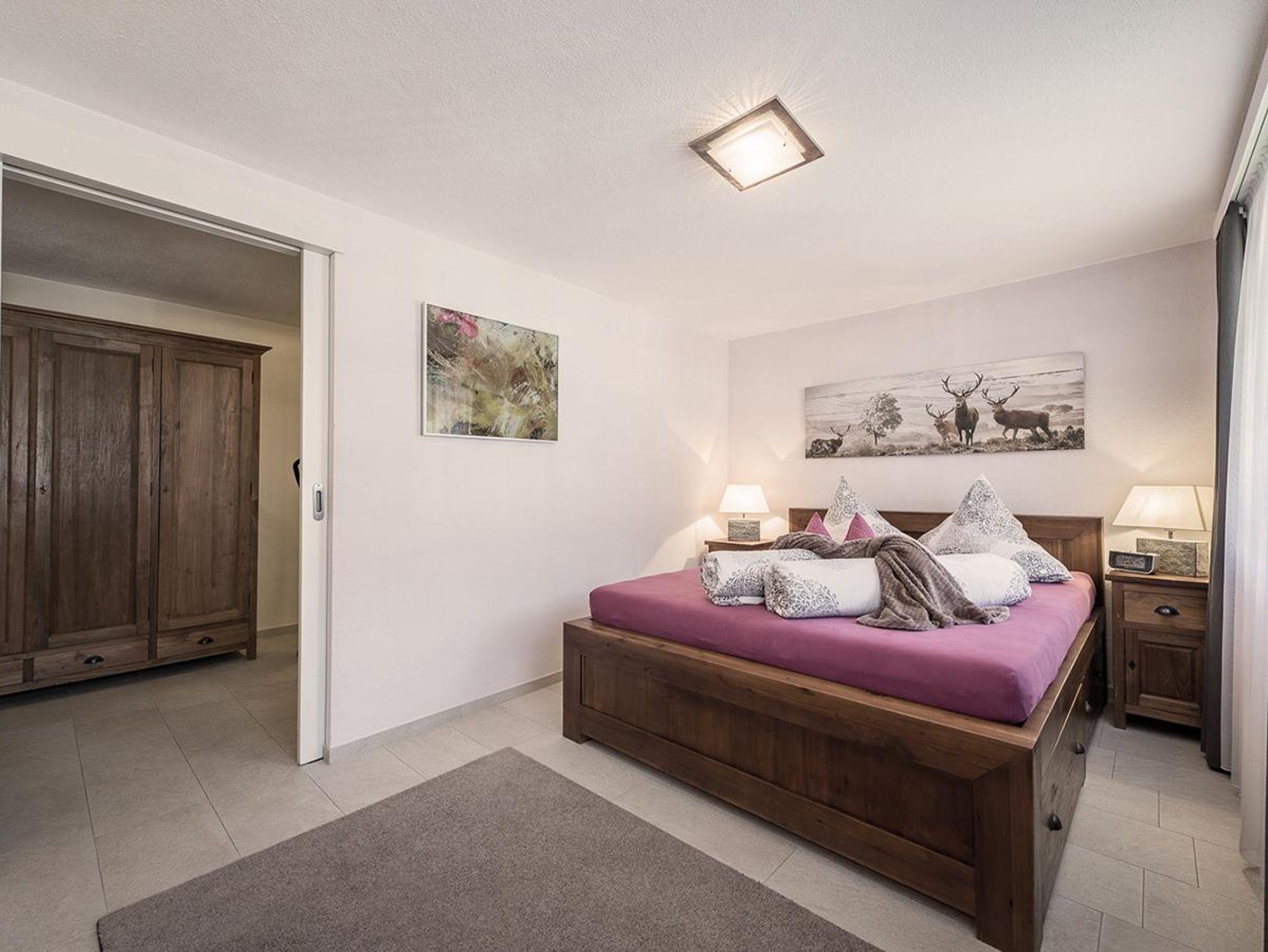 Die Ferienwohnung Dolomit verfügt über zwei Schlafzimmer jeweils mit Doppelbett, Kommode und Flat-TV. Die große Couch im Wohnzimmer, die je nach Bedarf auch als Bett genutzt werden kann, bietet allen Feriengästen genügend Platz zum Entspannen.