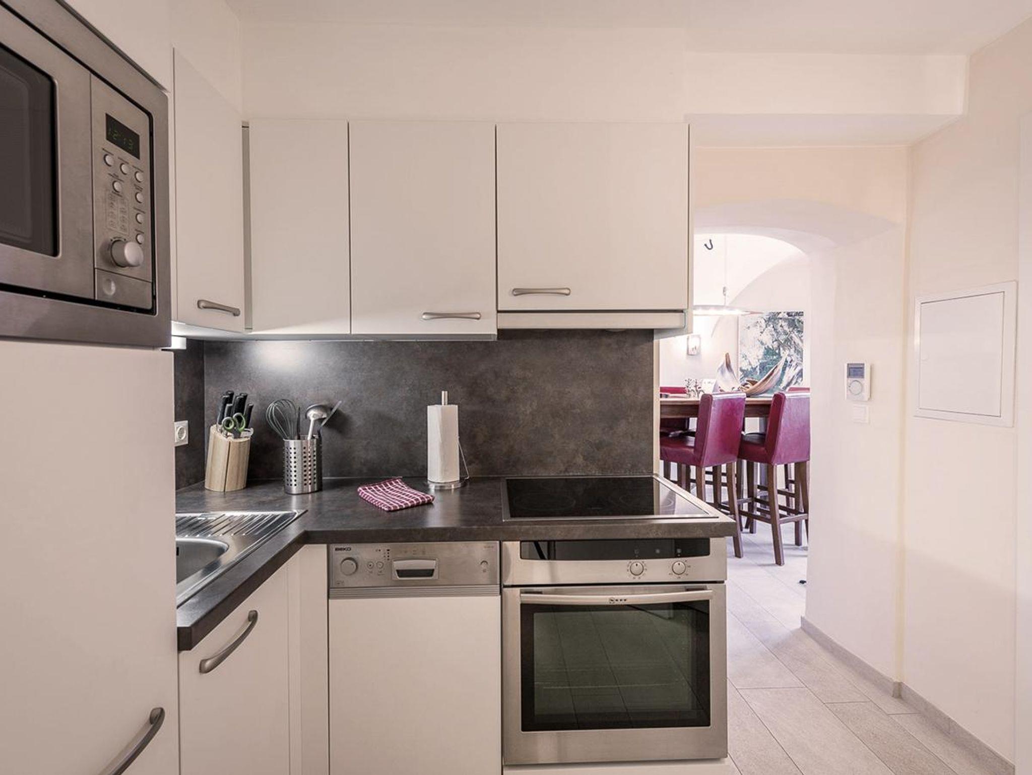 In der Küchenecke wurde auf nichts verzichtet, was für die Zubereitung eines guten Essens fehlen darf. Vom Geschirrspüler über das Backrohr bis hin zum Ceranfeld ist alles untergebracht.