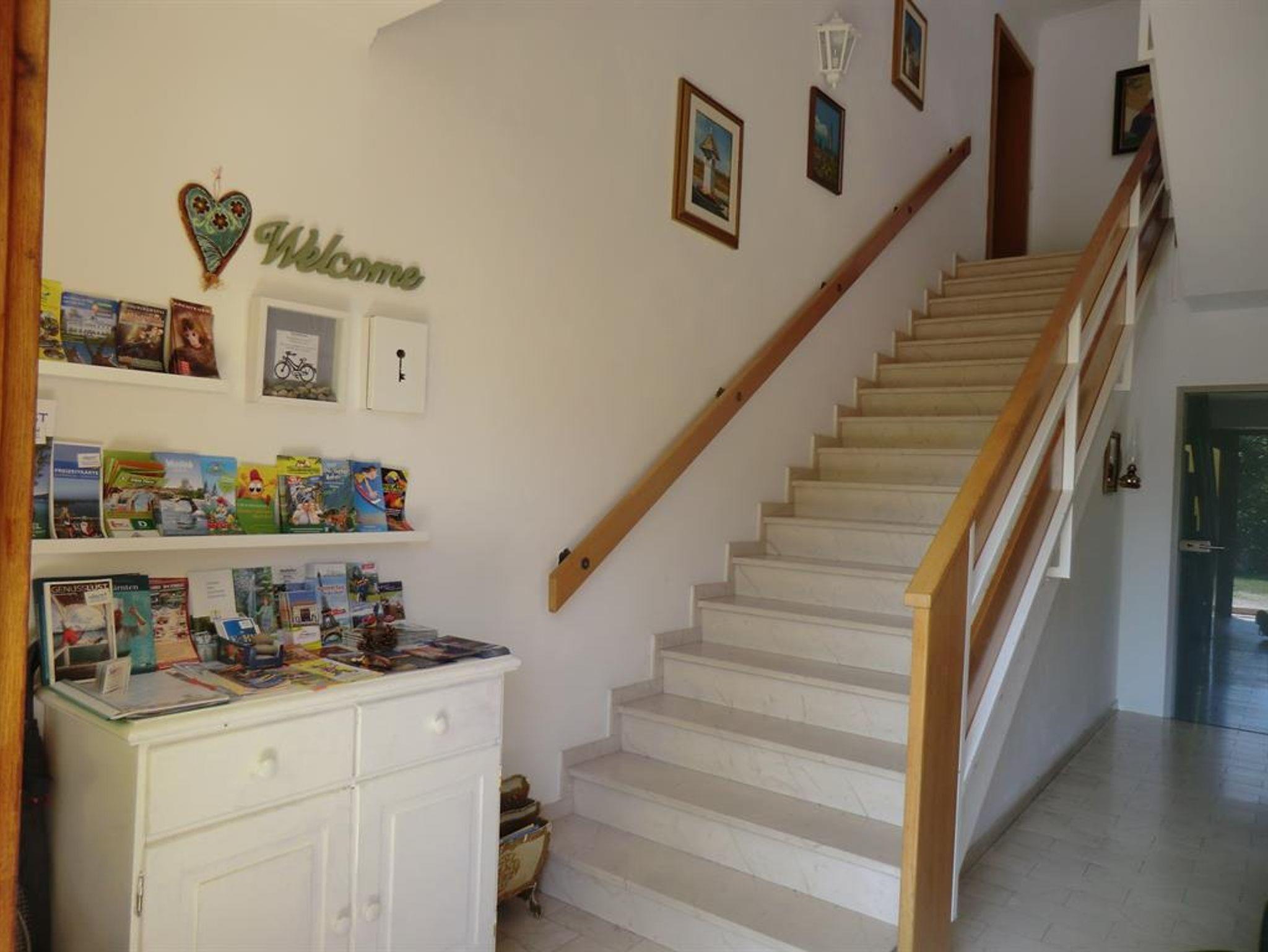 Wir haben 2 Ferienwohnungen Typ A, die ca. 55 m2 groß sind. Wohnung 1 im 1.Stock links und Wohnung 3 mit Dachschrägen im 2.Stock links. Hier besteht die Wohnküche aus einem einfachen Küchenblock mit 2 Herdplatten einer Spüle und Kühlschrank. Ein Sofa mit Essecke und TV runden die Wohnküche ab. Es gibt 2 getrennte Schlafzimmer mit je einem Doppelbett. Ein Zustellbett für eine 5. Person kann in einem der Schlafzimmer aufgestellt werden, ein Gitterbett wie ein Kinderhochstuhl ist in jeder Wohnung vorhanden. Das Badezimmer ist mit Waschbecken und einer Dusche ausgestattet, vom WC getrennt. Von der Wohnküche wie von einem der Schlafzimmer aus, kommen Sie auf den Balkon mit Blick auf den Garten, Liegewiese bzw. Spielplatz des Hauses. In den Wohnungen liegt ein Laminatboden.