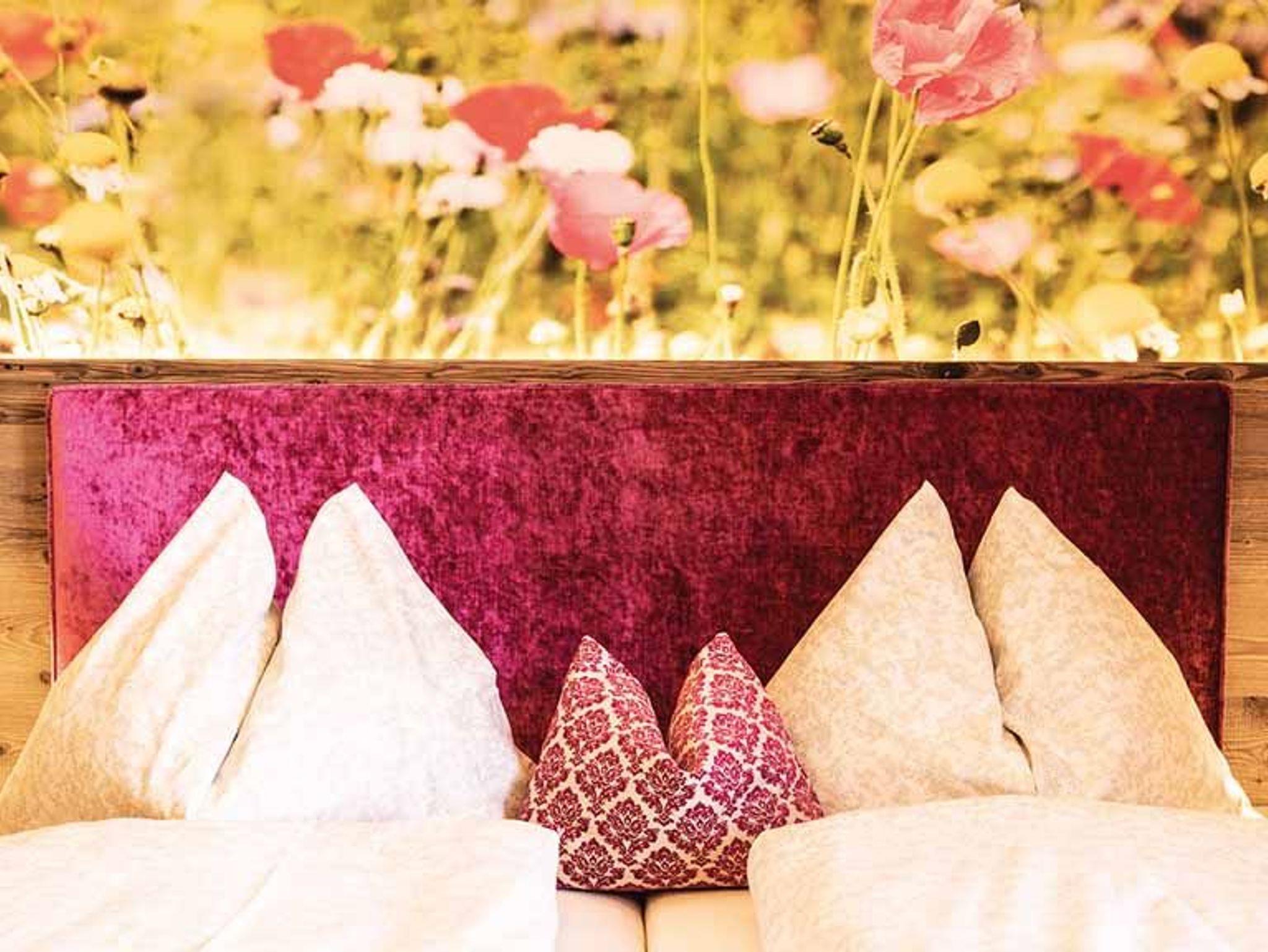 Gemütliche Ferienwohnung für 2 Personen mit großzügigem Blumenwiesenmotiv. Die frischen Farben der Ausstattung und Dekoration harmonieren und laden zum Entspannen ein. Apartment ?Wiese? bietet ein modernes, geräumiges Bad und eine vollwertige Küchenzeile. Am Balkon überblicken Sie das gesamte Südende des Attersees.