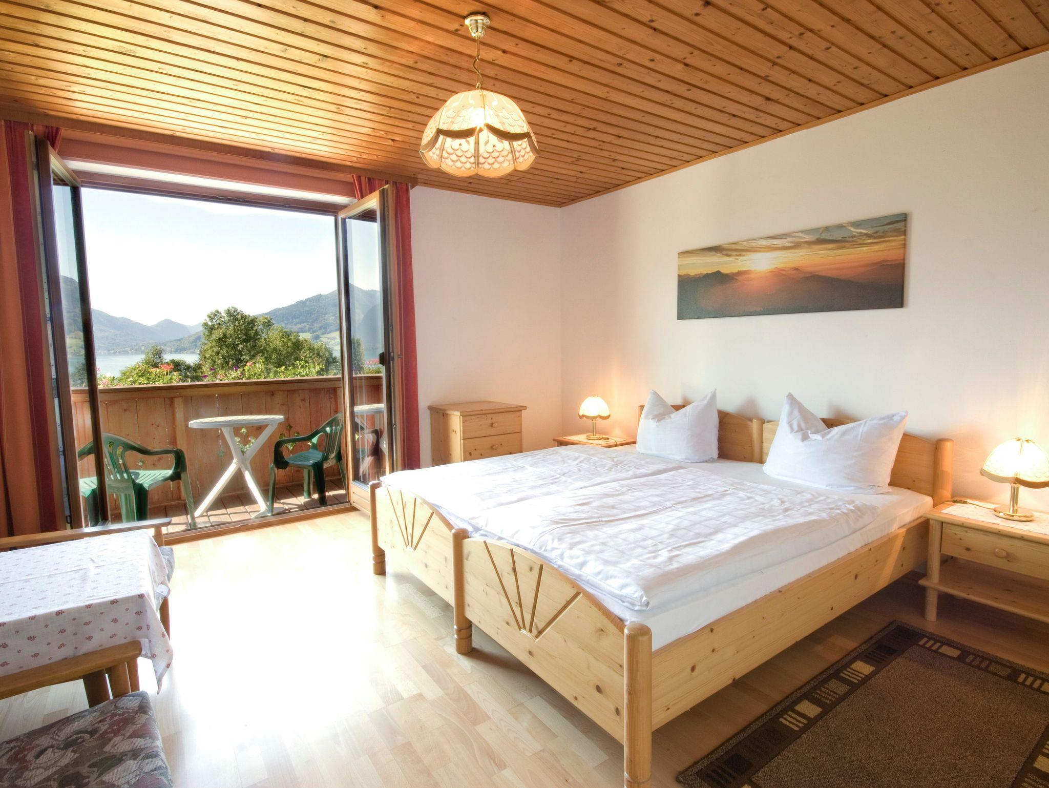 • Balkon mit Blick auf den Attersee und die umliegenden Berge