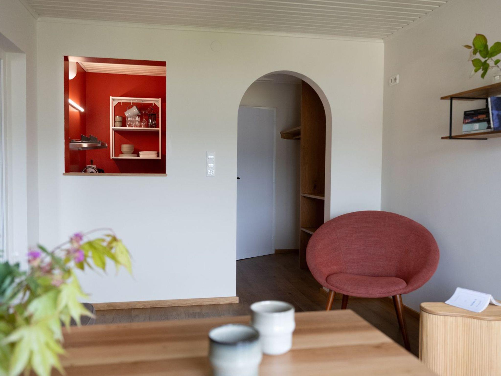 Elf neue, modern ausgestattete Ferienwohnungen, große Wiese für die Gäste direkt vor dem Haus, Frühstücksraum mit Produkten der Bauern aus der Umgebung, ausgewählte Bibliothek.