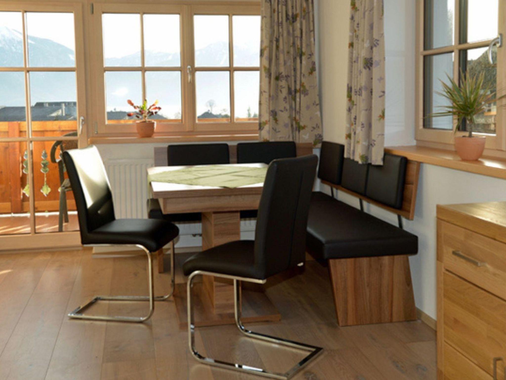 Am Morgen erwartet den Gast ein Frühstücksbuffet mit hofeigenen Produkten wie Bauernbrot, frisches Obst und Gemüse nach Jahreszeit, Zwetschkenmarmelade, luftgetrockneter Schinkenspeck... serviert im sonnigen Gastgarten oder in der gemütlichen Bauernstube der Mostschenke.