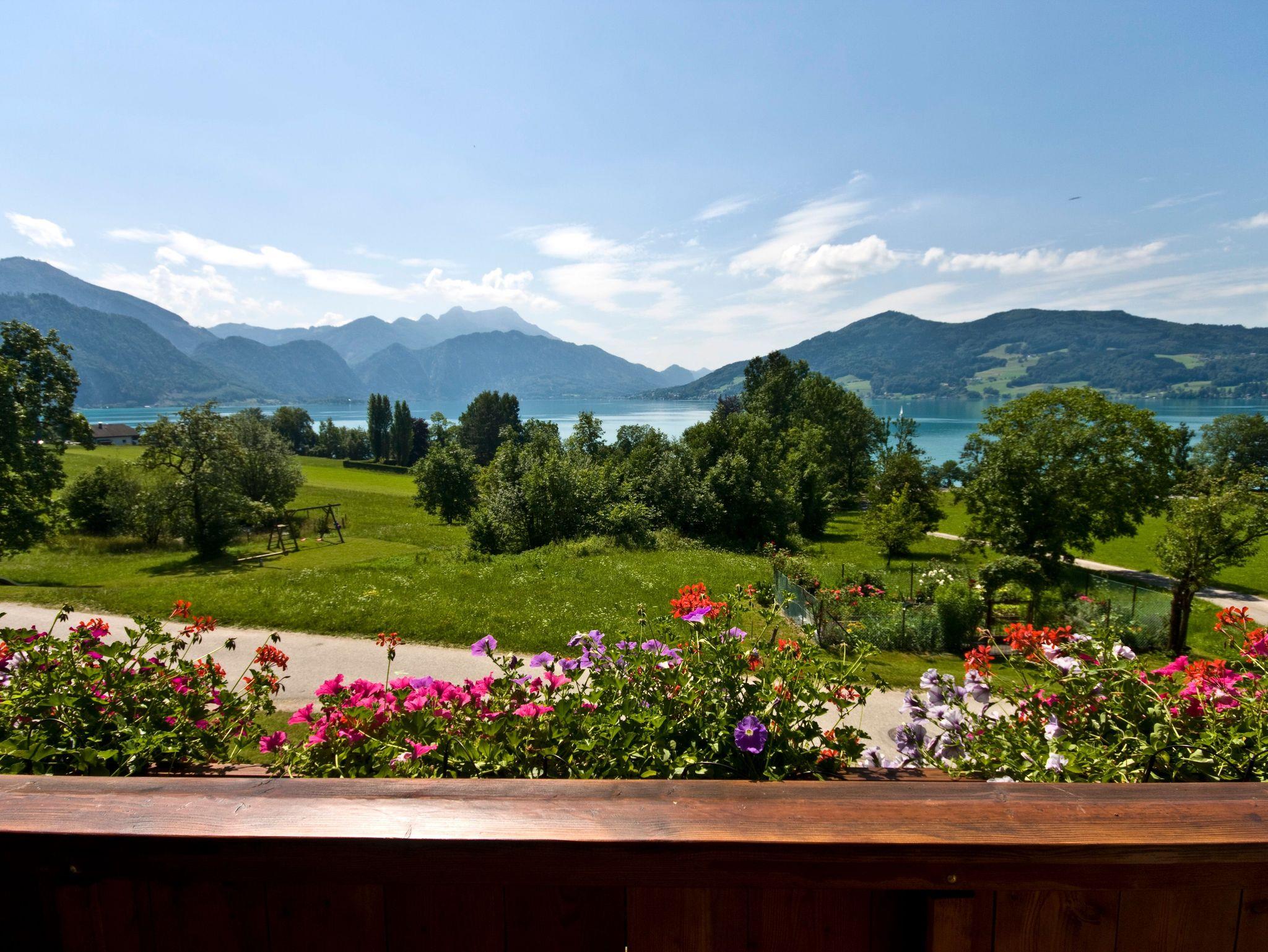 • Balkon mit Blick auf den Attersee und die umliegenden Berge