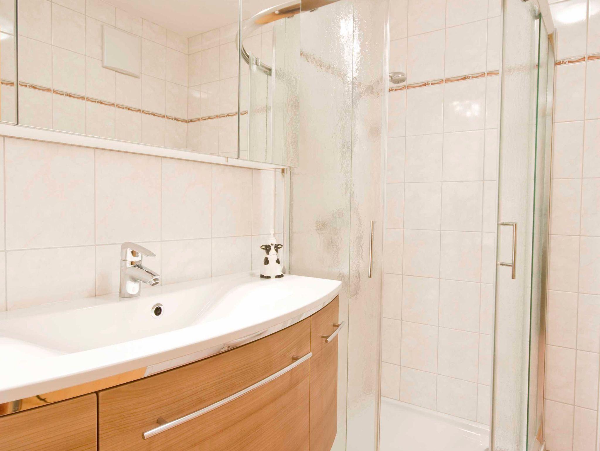 • Badezimmer mit Dusche und WC und Haartrockner