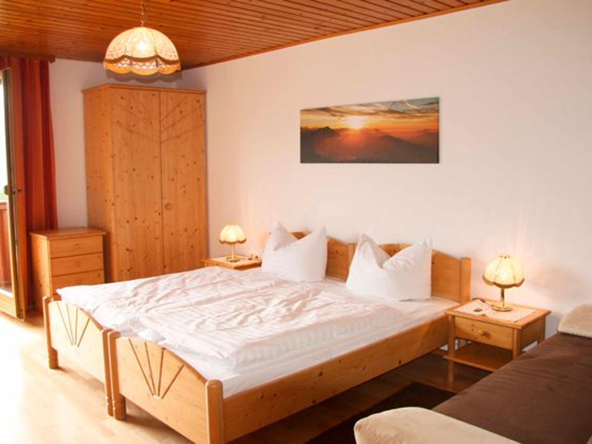 • Schlafzimmer mit Doppelbett und Zugang zum Balkon