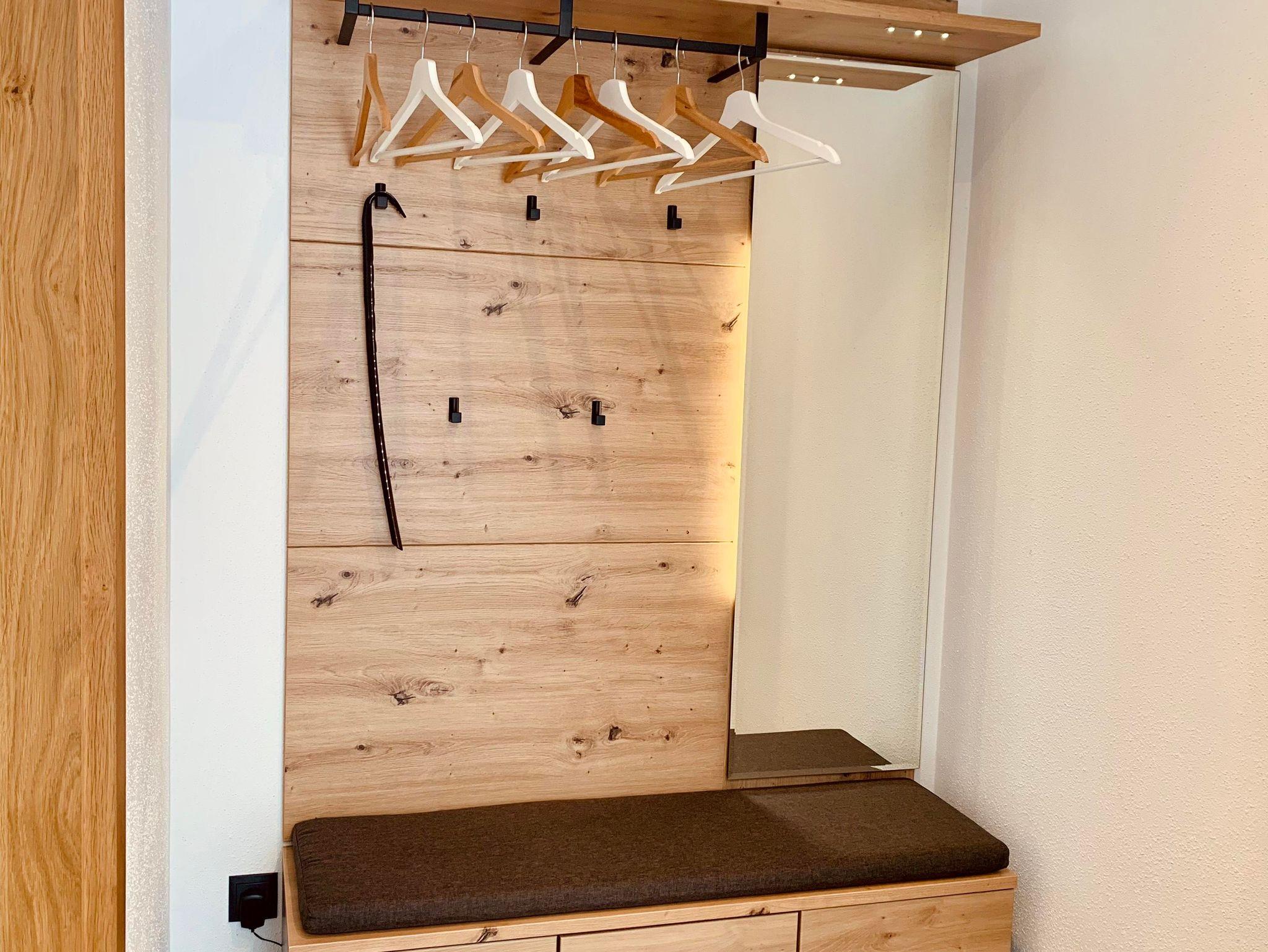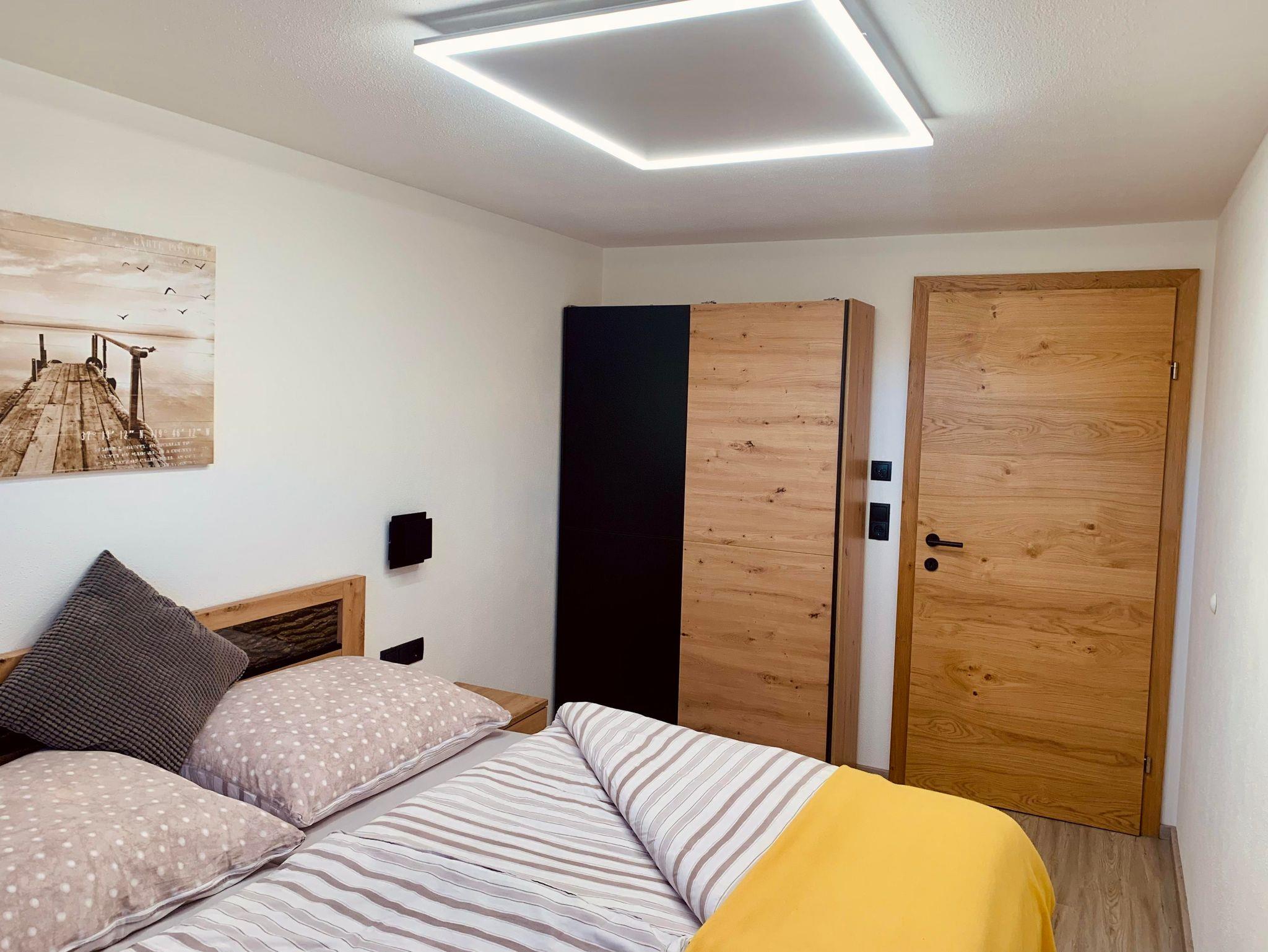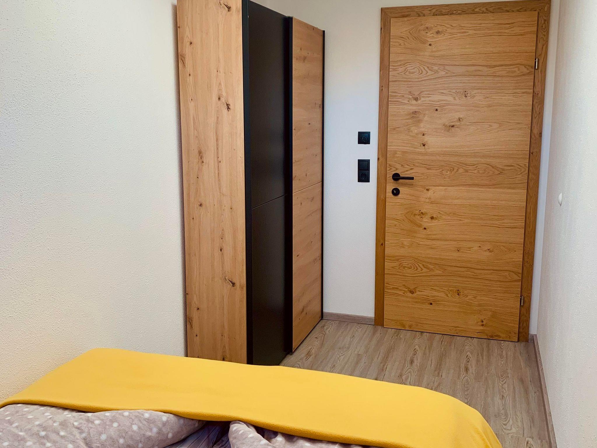 Das moderne und freundliche Apartment bietet auf 70m² Platz für bis zu 6 Personen. Die Sonnenterrasse verfügt über Sitzgelegenheiten, einem Tisch, einem Grill sowie Liegestühle mit Decken für entspannte Tage. Im Eingangsbereich befindet sich ein Vorraum mit Garderobe. Im großen Wohnraum mit Fensterfront und Terrassentür lässt sich die Aussicht wunderbar genießen. Darin findet sich die gemütliche Doppel-Schlafcouch, eine vollausgestattete Küche und der ausziehbare Esstisch mit Eckbank. Durch die Fernsehwand ergibt sich eine perfekte Raumaufteilung. Das Wi-Fi, Spiele und diverse Bücher dürfen natürlich auch nicht fehlen. Durch den Flur gelangt man zu den zwei seperaten Schlafzimmern welche für jeweils 2 Personen ausgestattet sind (Doppelbett und Französisches Bett), sowie zum Badezimmer mit Dusche und WC. Es gibt auch eine Einstellmöglichkeit für Fahrräder und Ski/Snowboards.