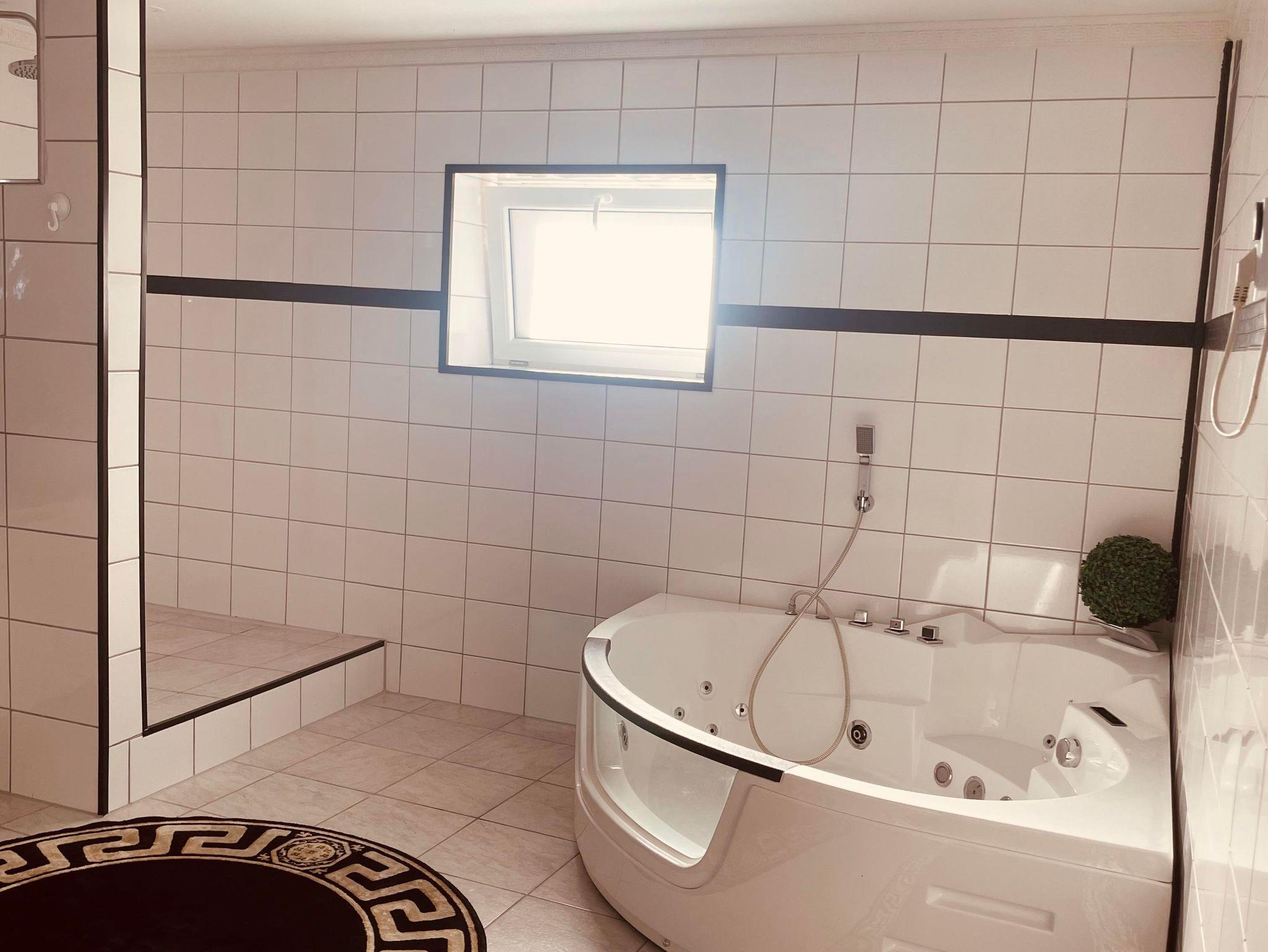 Ideal für bis zu 12 Personen. Aufgeteilt in 3 Schlafzimmer, 2 Bäder ink. Whirlpoolbadewanne, Küche und Wohnzimmer.