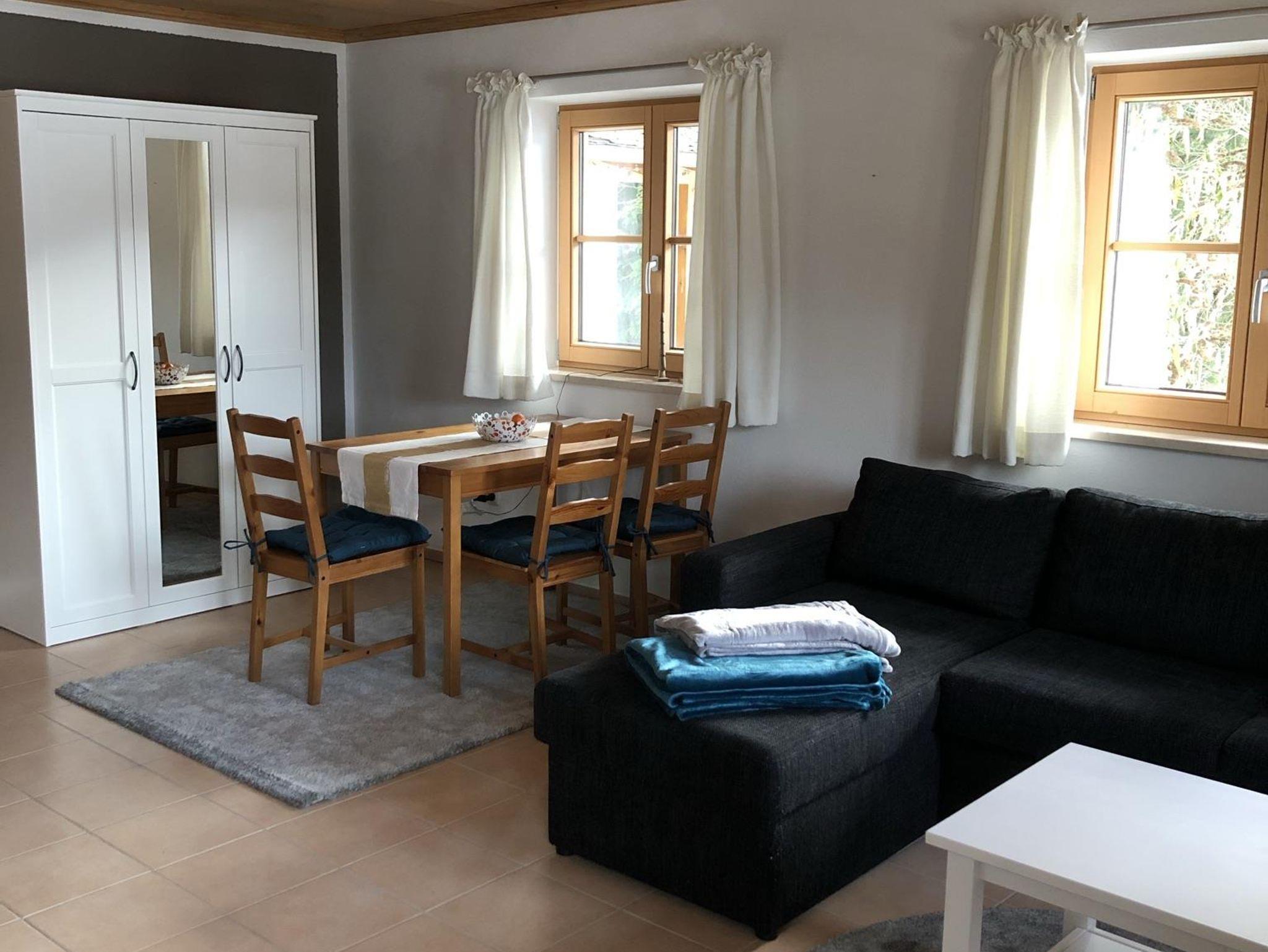 Die Wohnung selbst besteht aus einem Bad (Dusche und WC), einem kleinen Hausgang, einer voll ausgestatteten Küche und einem Wohn-/Schlafraum.